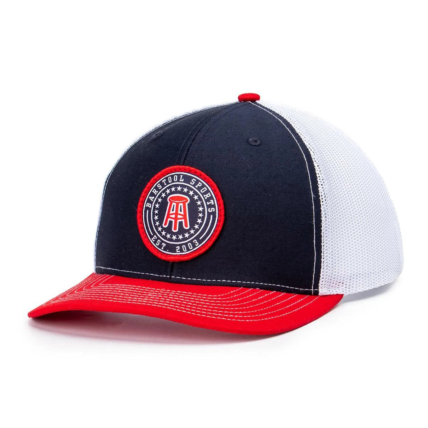 Show your Barstool pride wherever you go with this Navy Mesh Patch Trucker Hat. Featuring a super-stylish mesh patch design, this stylish cap is the perfect accessory for your Barstool-inspired wardrobe. Enjoy comfort and style with the barstool logo featured proudly on the front.