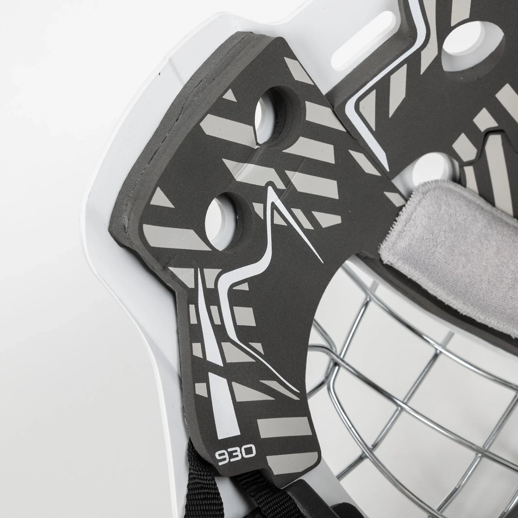 The 930 goalie mask uses a cloth sweat band that wicks sweat away and can easily be washed or replaced between games or periods to keep sweat from rolling onto your face.