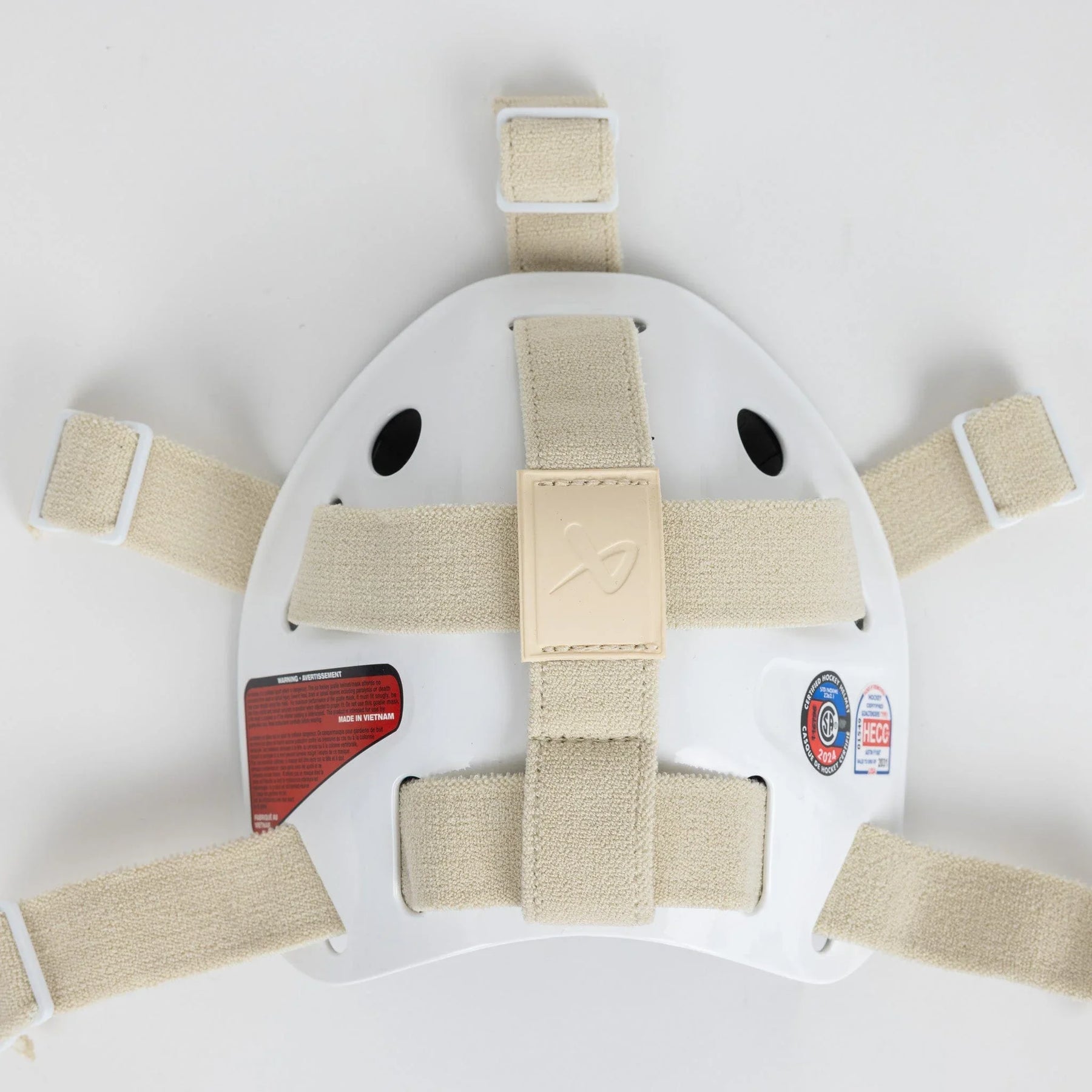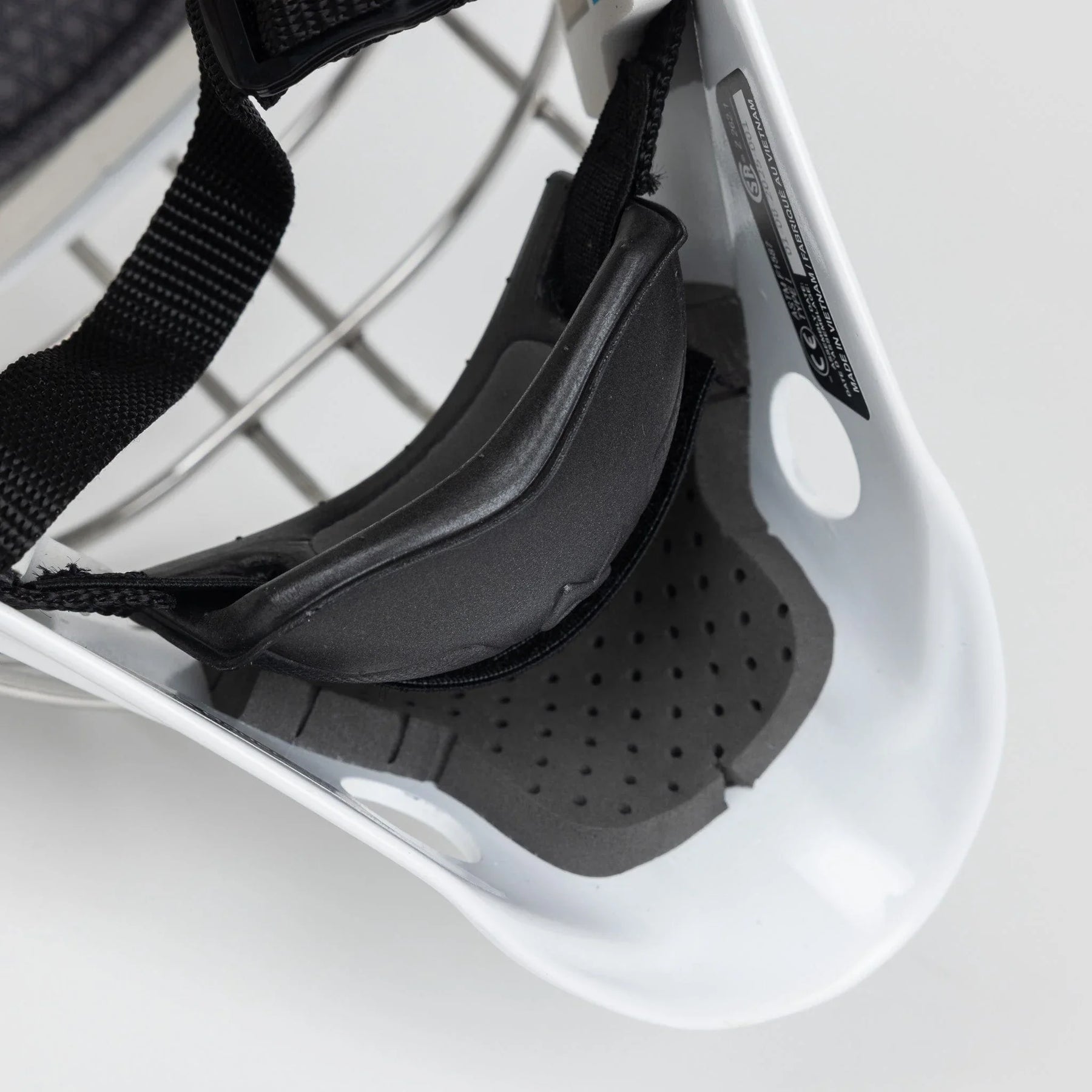 The chin is protected and covered on the 940 goalie mask with a deep fit cup with a stretch spandex harness. This design allows the chin to sit comfortably on the cup, keeping it in place and protected from impacts that may incur.