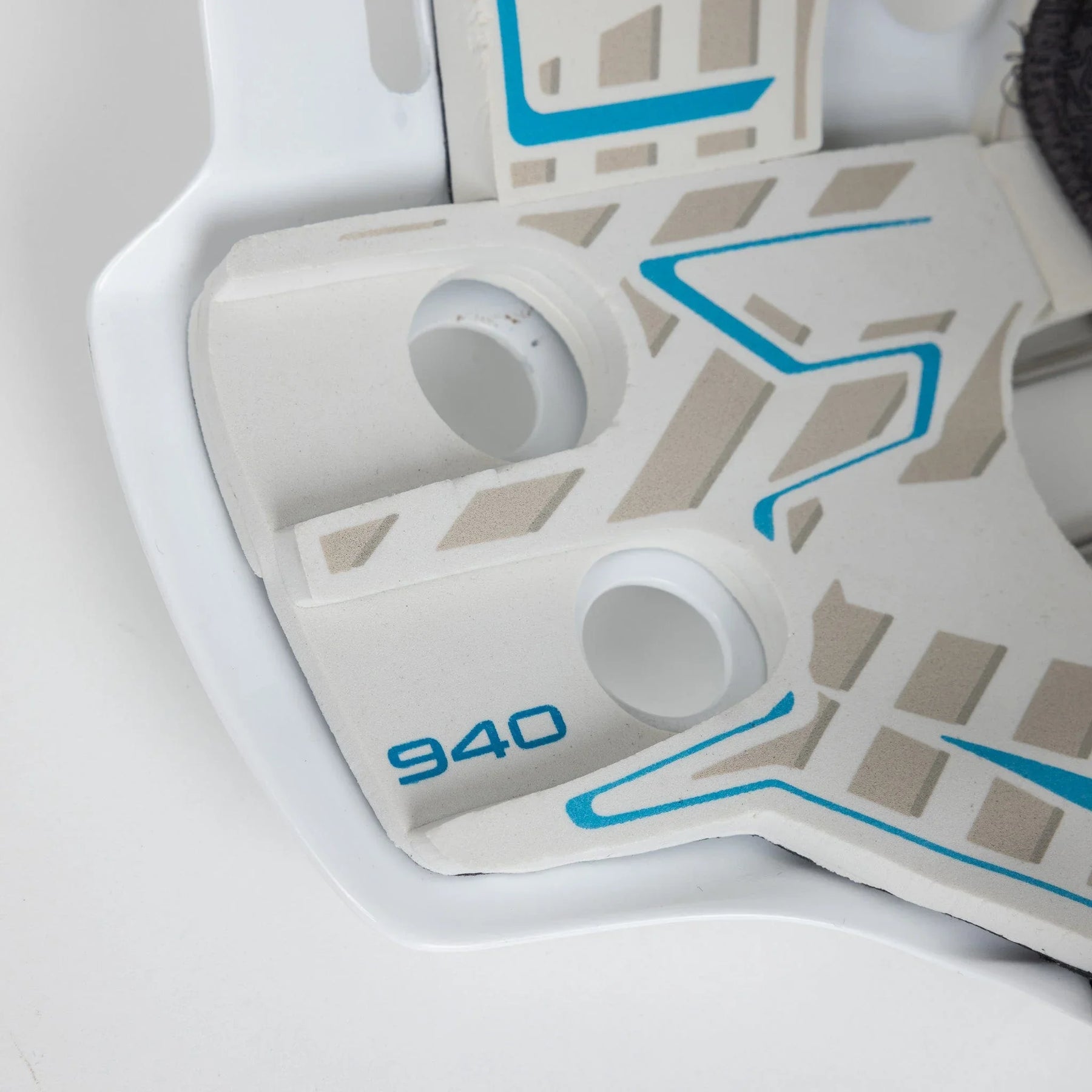 The 940 goalie mask features a dual layer comfort foam and IX foam crown. The dual layer comfort foam is dispersed throughout the mask to provide protection and comfort in those key areas, and the IX foam crown provides an additional level of support to keep goalie protected.