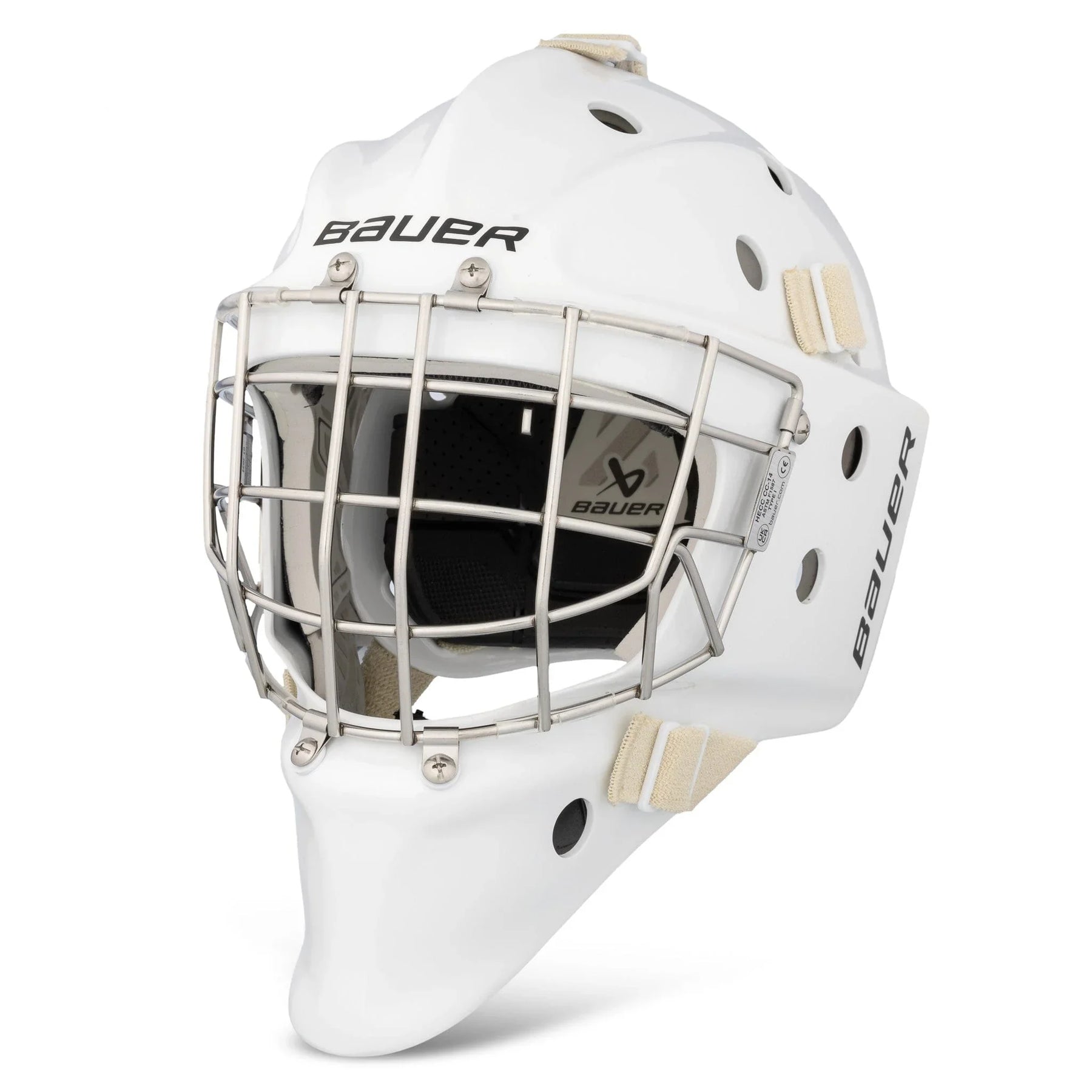 The Bauer 960 SR Goalie Mask is available in White and Black colourways. It features a new sizing system designed to fit more head shapes than the previous generation XPM. The Bauer 960 is available in Small, Medium and Large sizes.