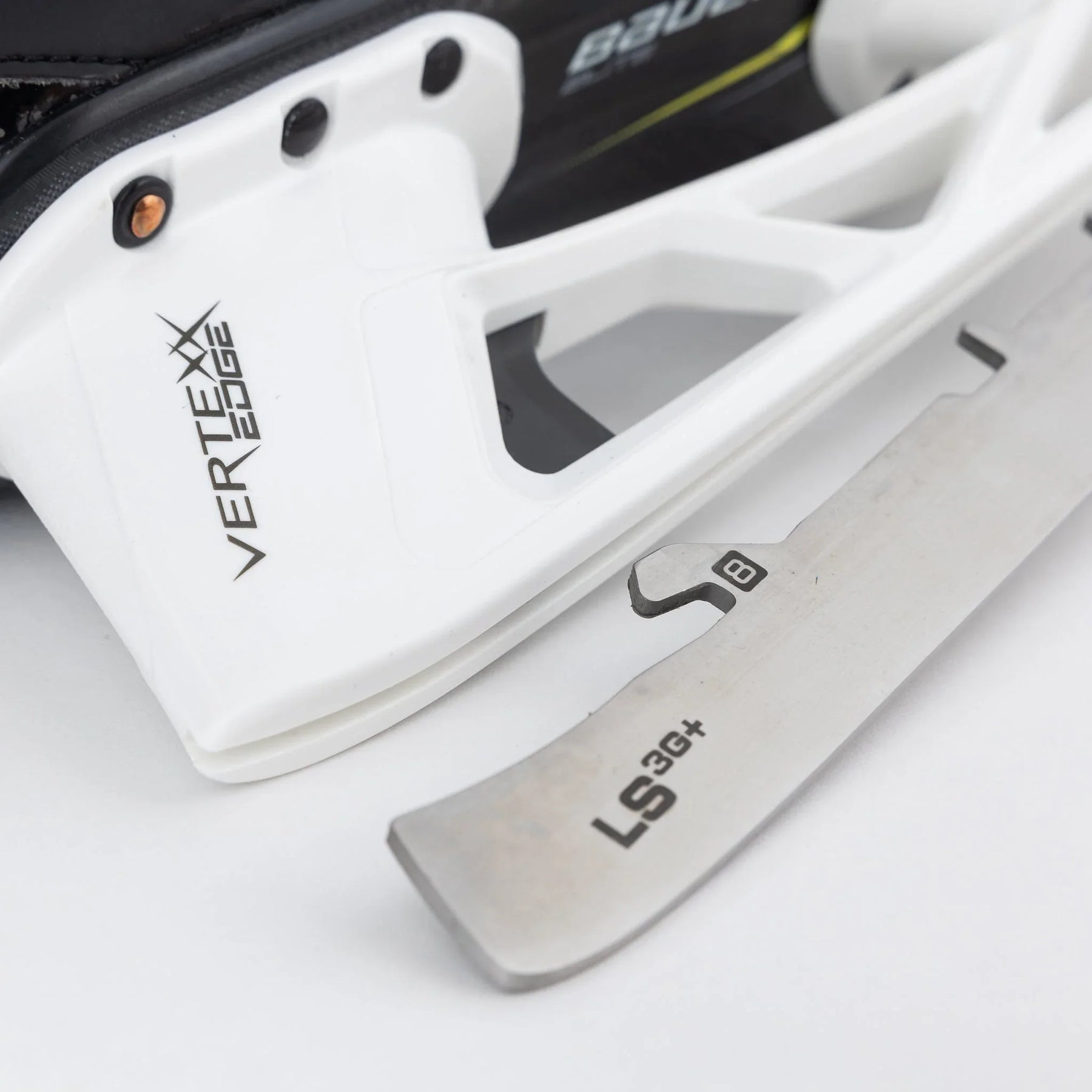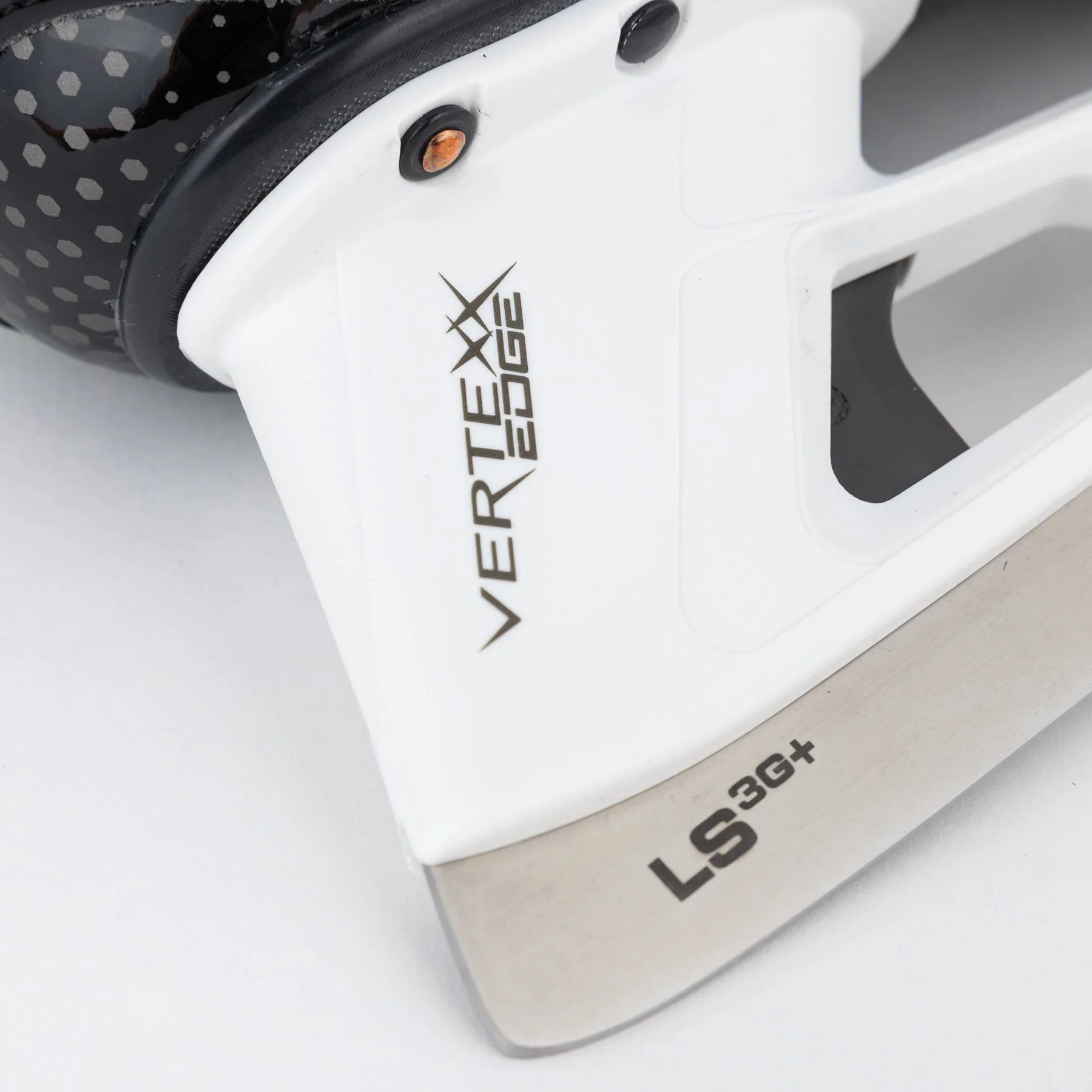 The Elite skates stick with the Vertexx edge holder and LS3G+ steel combo as seen on all of their performance level goal skates in recent years.