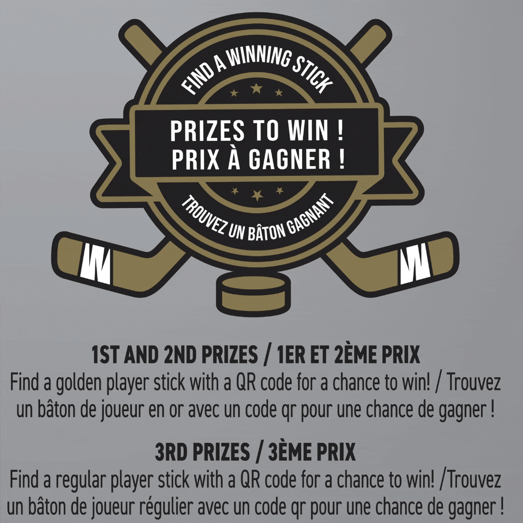 - Find a standard Mystery Mini stick within an eligible package with a winning prize code sticker on the blade for an opportunity to receive an autographed Mystery Minis player stick