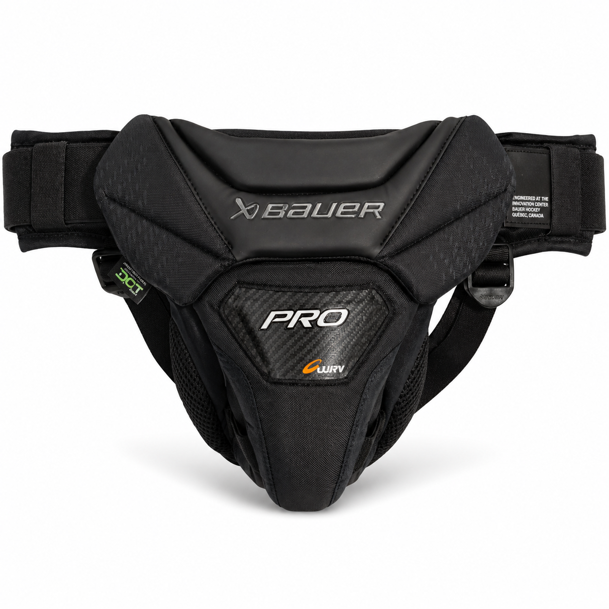 Serving players since 1988.New for 2025, Bauer has released the all-new Bauer Pro Goalie Jock. Built with a CURV composite cup, double belt strap for a personalized fit, and added DCT foams for serious impact protection, this jock is engineered to give goalies the secure, comfortable, pro-grade protection they need behind the mask.