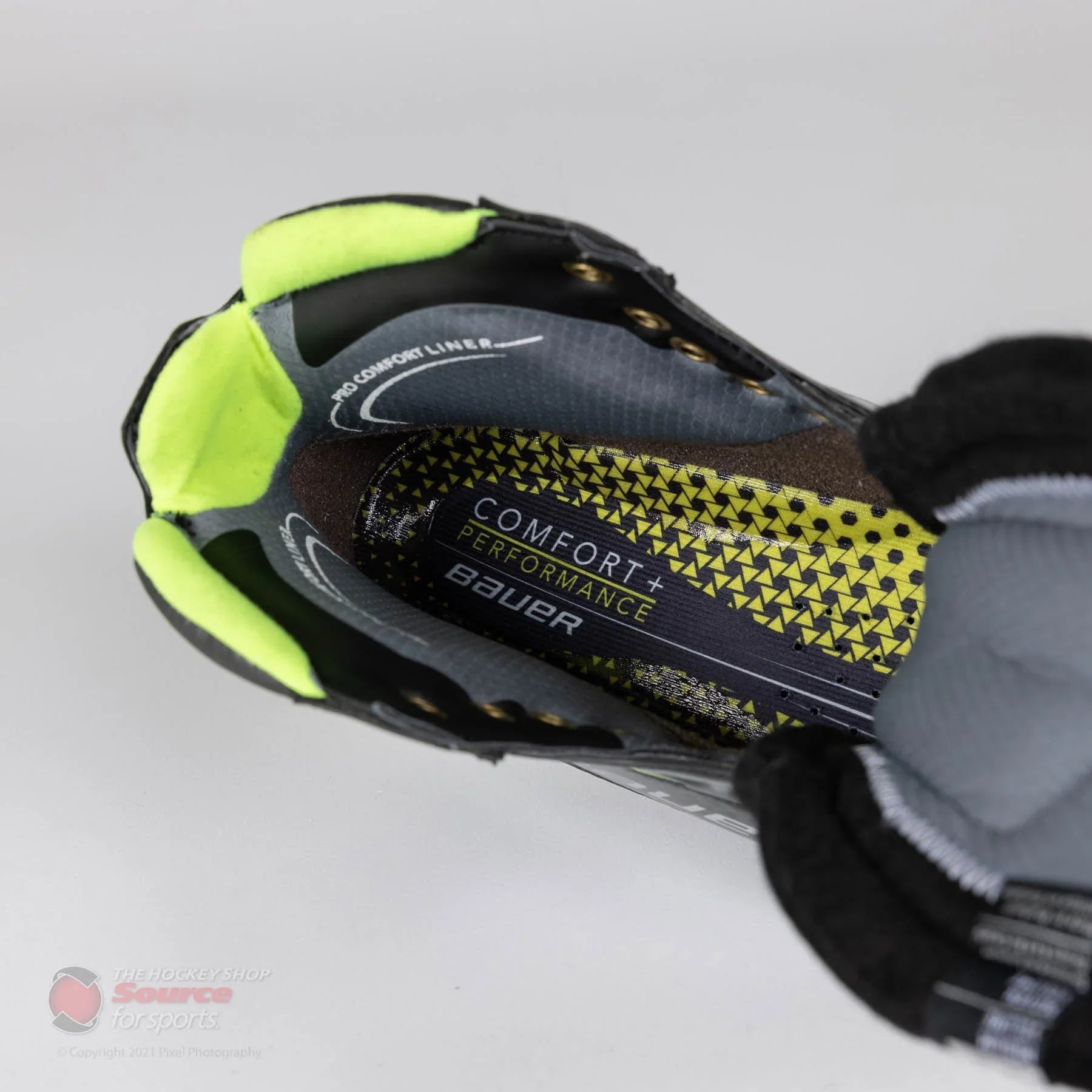 The Bauer Pro Goalie Skates feature a clean understated black and grey design with hints of a vibrant green accent colour. The accent colour is also able to be changed if ordering custom so if green isn't to your taste, Bauer’s got you covered there.