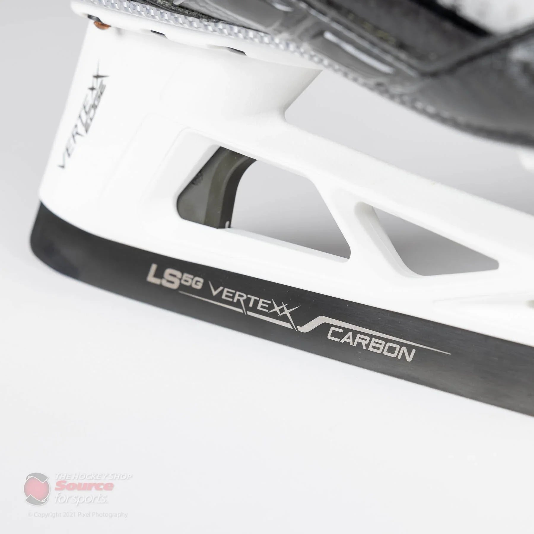 The Pro skates stick with the Vertexx edge holder and LS5G steel combo as seen on all of their elite level goal skates in recent years. The LS5G steel on the Pro skates does feature a new agility profile which does as the name implies by putting goalies slightly more on the ball of their foot.