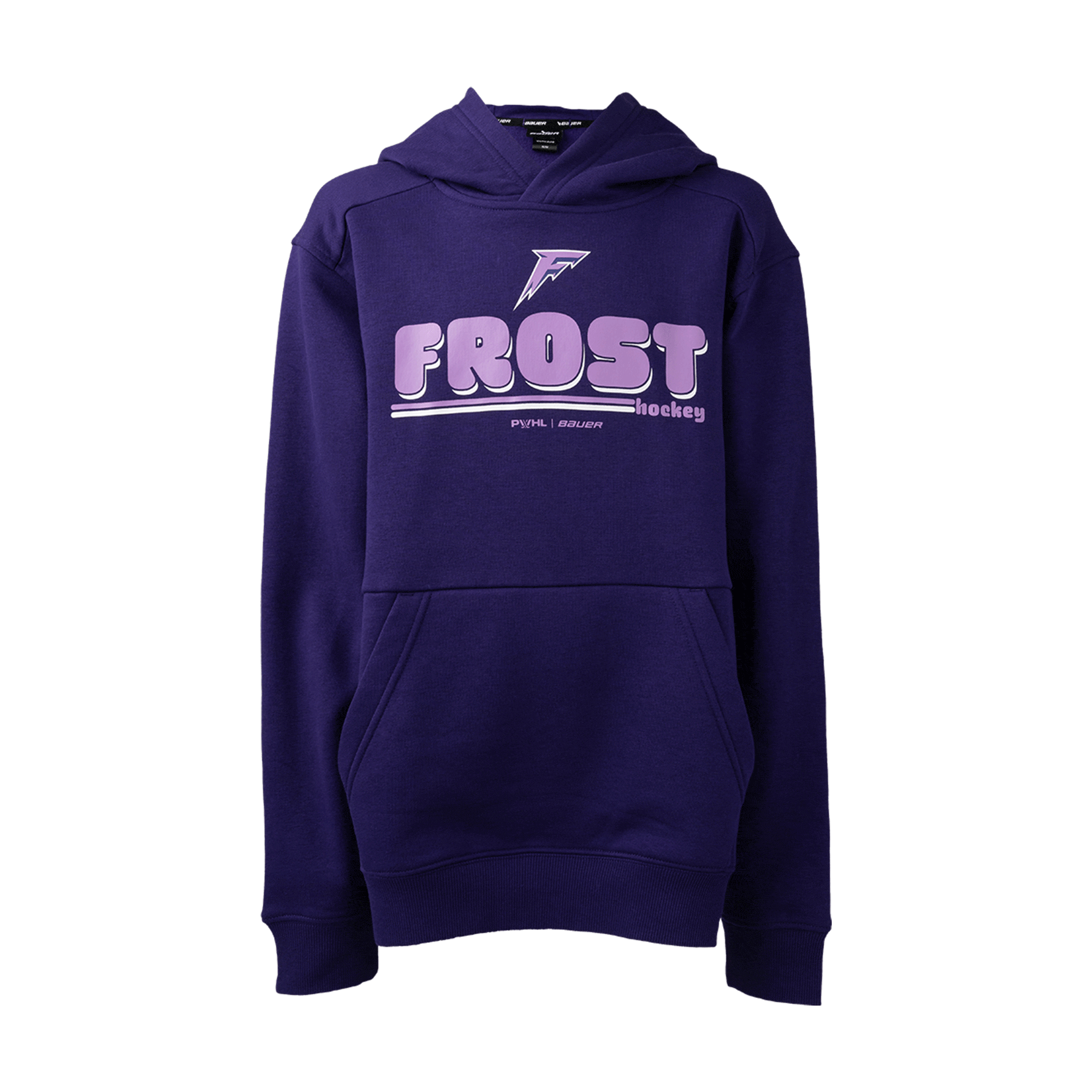 Show everyone who your favorite team is with the Minnesota Frost Bauer PWHL Ultimate Junior Hoody. This hoody puts your fandom on full display while being comfortable enough to wear from the locker room to the classroom.