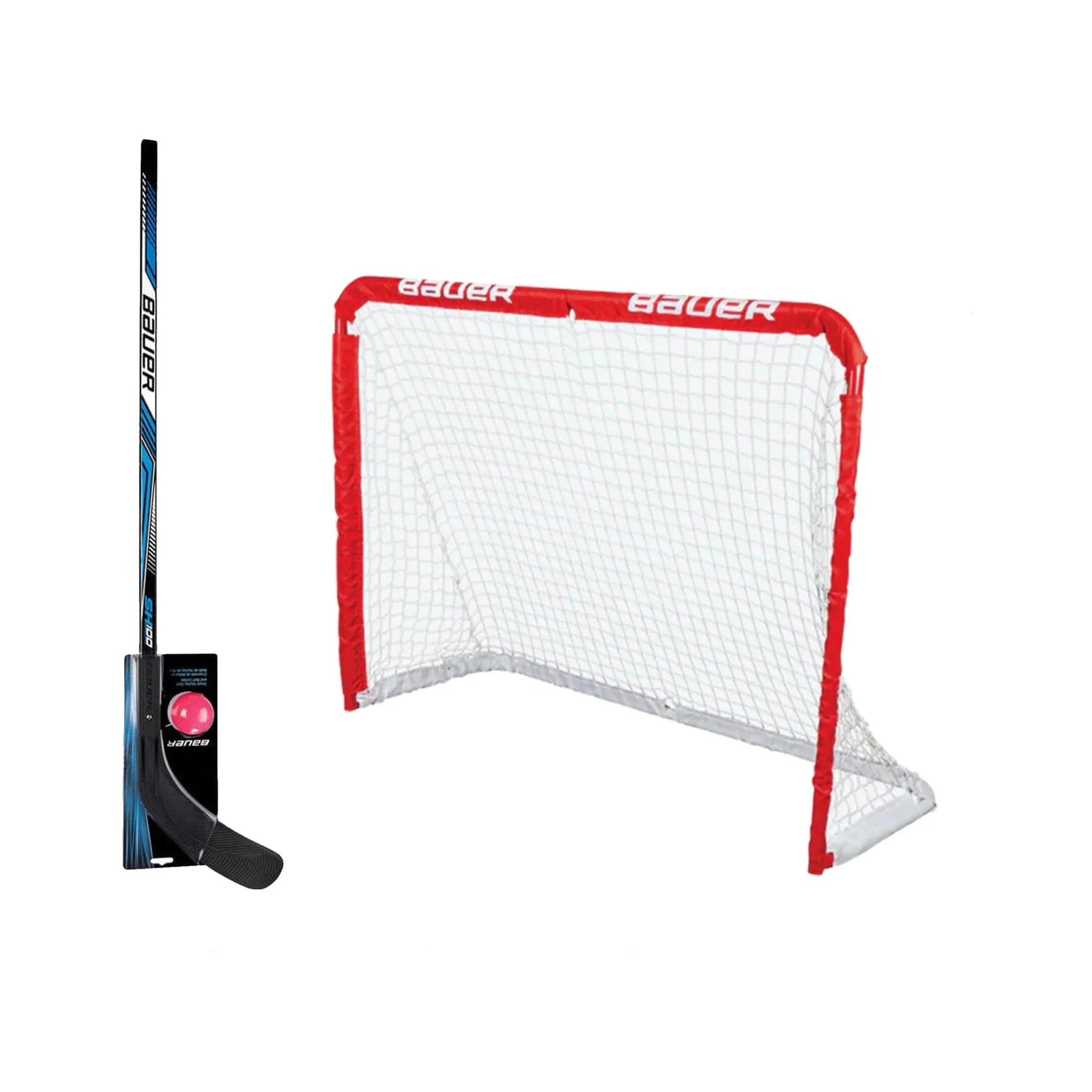 Serving players since 1988.The Bauer Street Hockey Net Set has everything you need to get playing right out of the box! The set comes with netting, a shooter tutor, the SH100 street hockey stick with removable blade, plastic frame tubing, and a no bounce hockey ball, making this the perfect starter kit to pick up for the aspiring street hockey player.