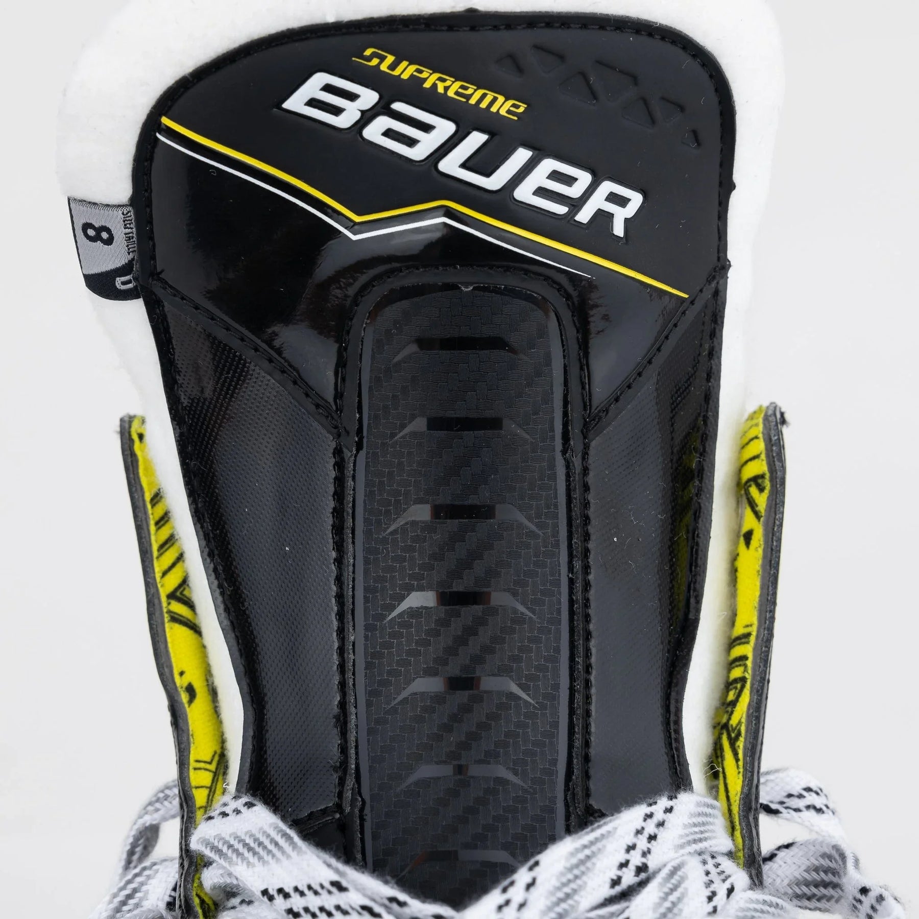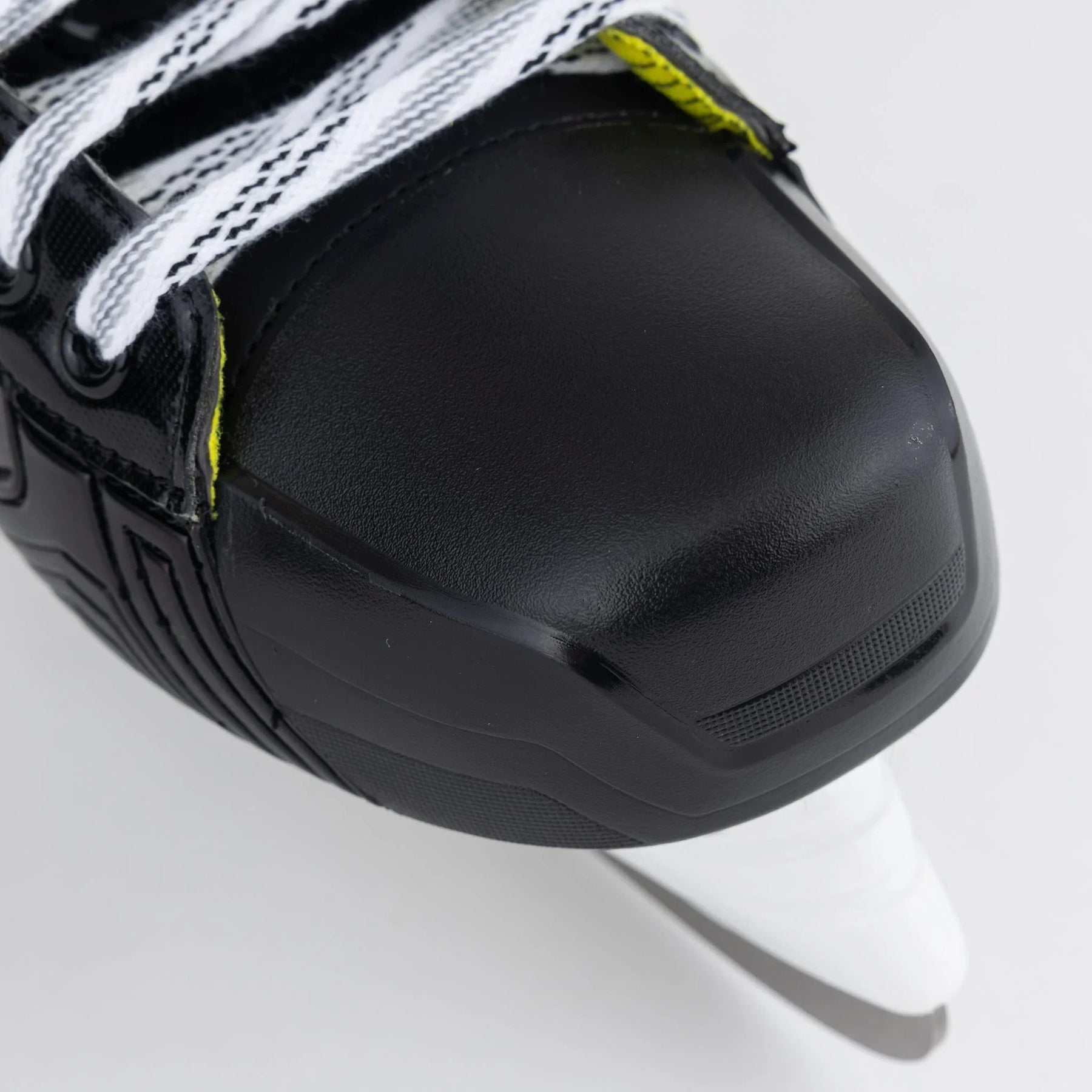 The Digi Comp boot keeps the skates’ performance competitive without making it too stiff and difficult to skate in; this construction also optimizes the skate for speed by reducing its weight by 5% from the previous Supreme S37 skate. To keep a more traditional look and feel toward the ankle, the M30 skate uses standard symmetrical flex facing along the eyelets. Although the M30 skate is designed to be a bit more flexible for developing skaters, Supreme family skates are classified as stiffer than Vapor family skates.
