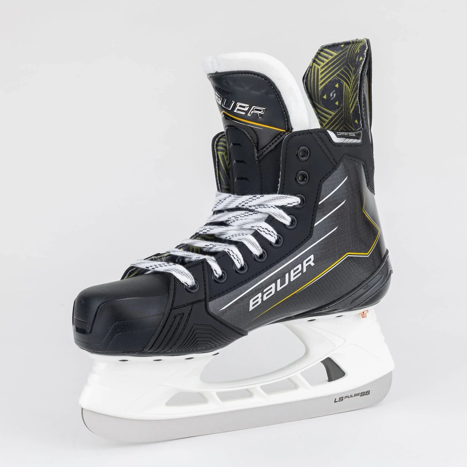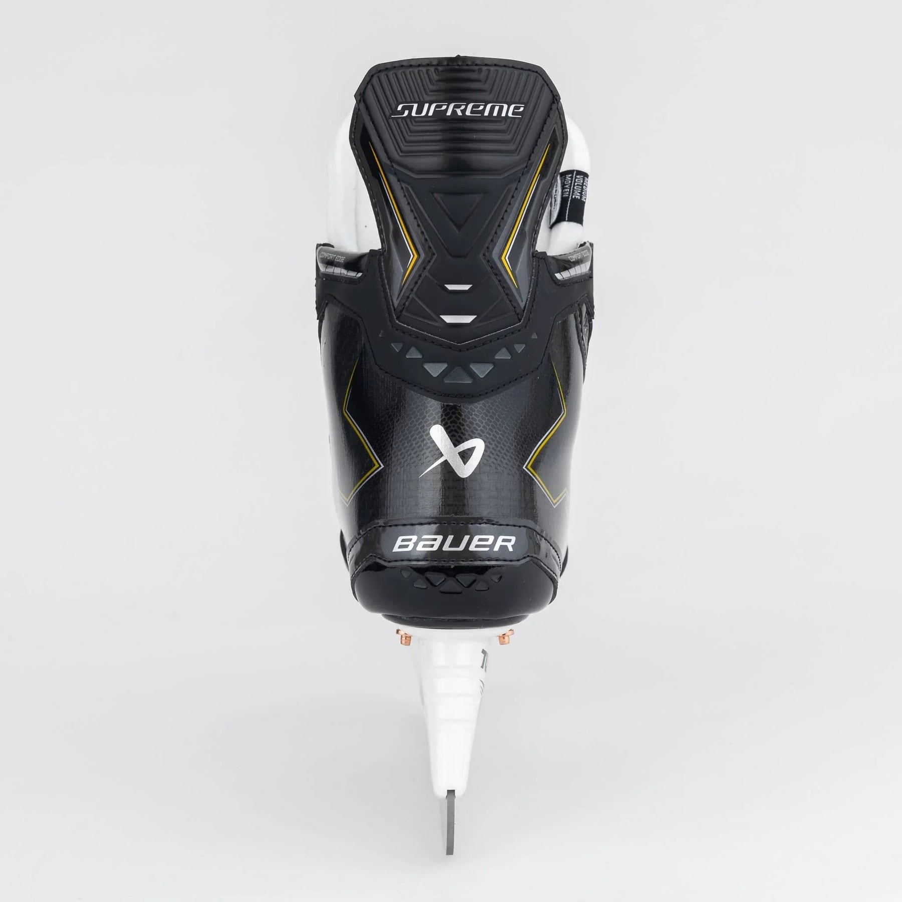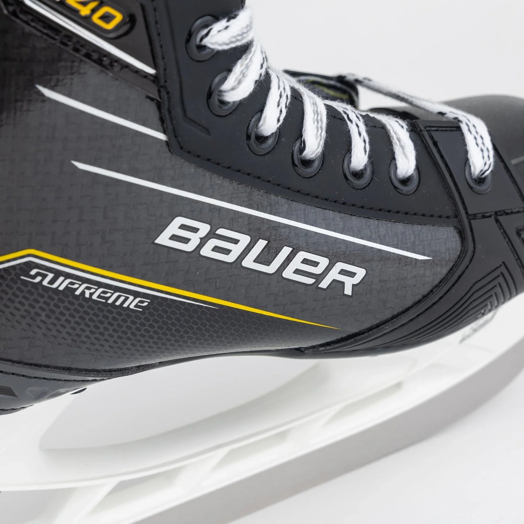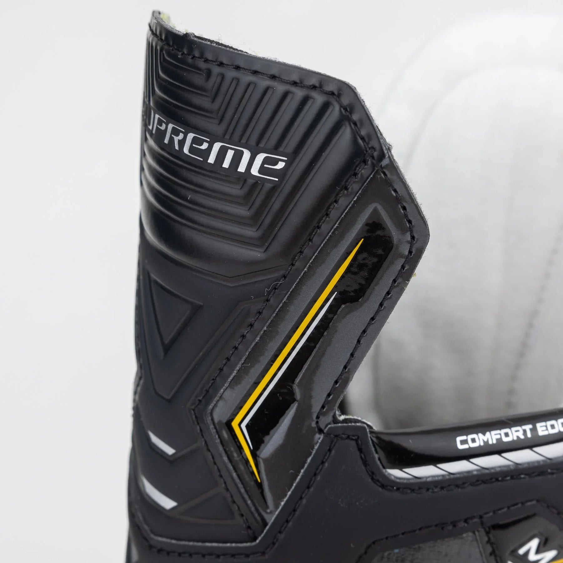 The Supreme line puts a large emphasis on powerful skate stride, which is where the integration of the 3D-Lasted Flex Composite quarter package comes in. The Flex Comp construction keeps that stiffness you need to support your full stride while also keeping the skate lightweight and thermoformable. It’s not so stiff that it makes the skate difficult to break in, however. Bauer has decreased the concentration of reinforcement fibres in the boot, making the skates easier to flex and skate in for developing players.
