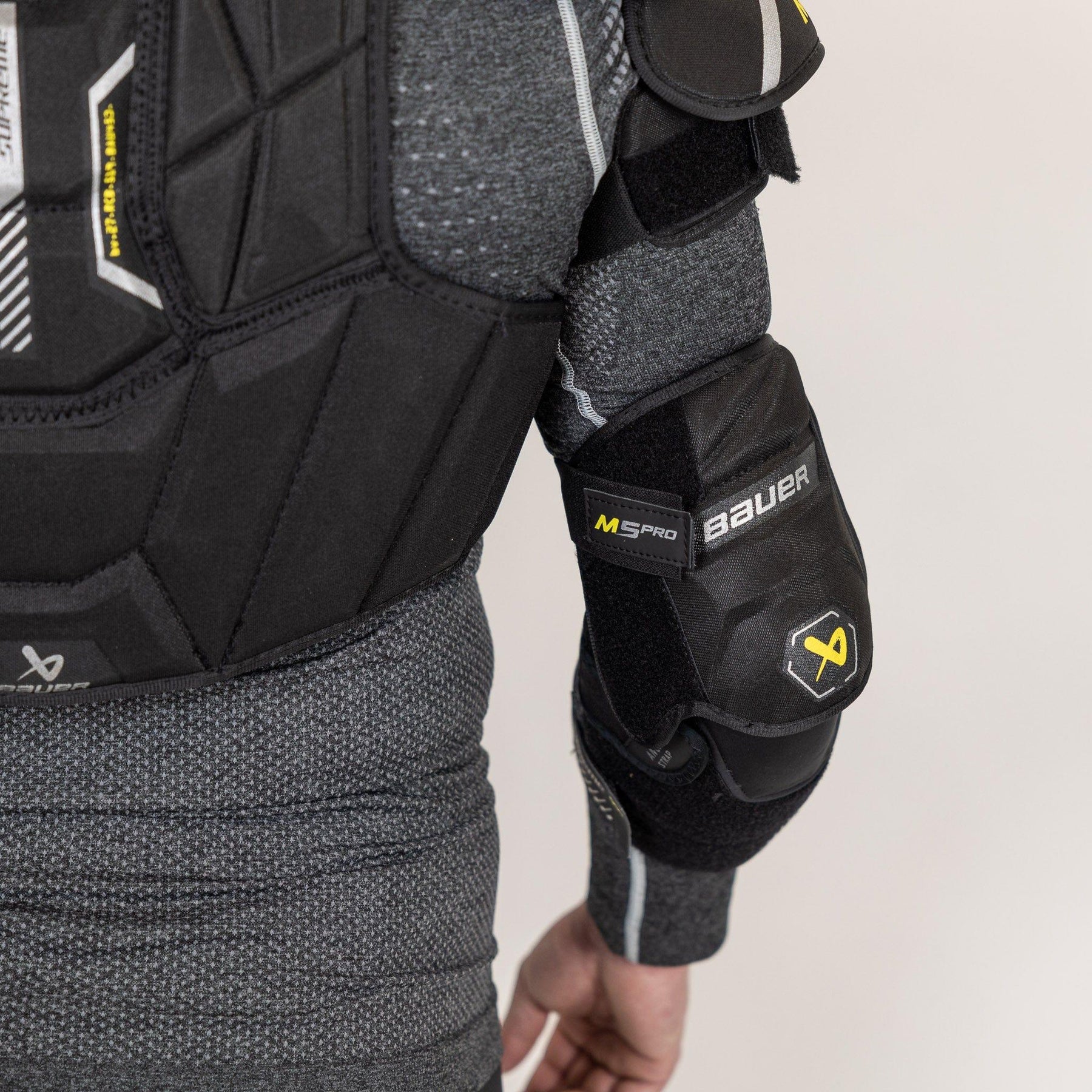 Experience the next level of protection and performance with the new Supreme Mach protective line from Bauer for the 2023 season. The gear is designed to offer unparalleled protection against impact in all directions while still allowing for lots of maneuverability. The M5 Pro features a new EDL elbow cap, CURV composite, and a Thermomax+ liner.