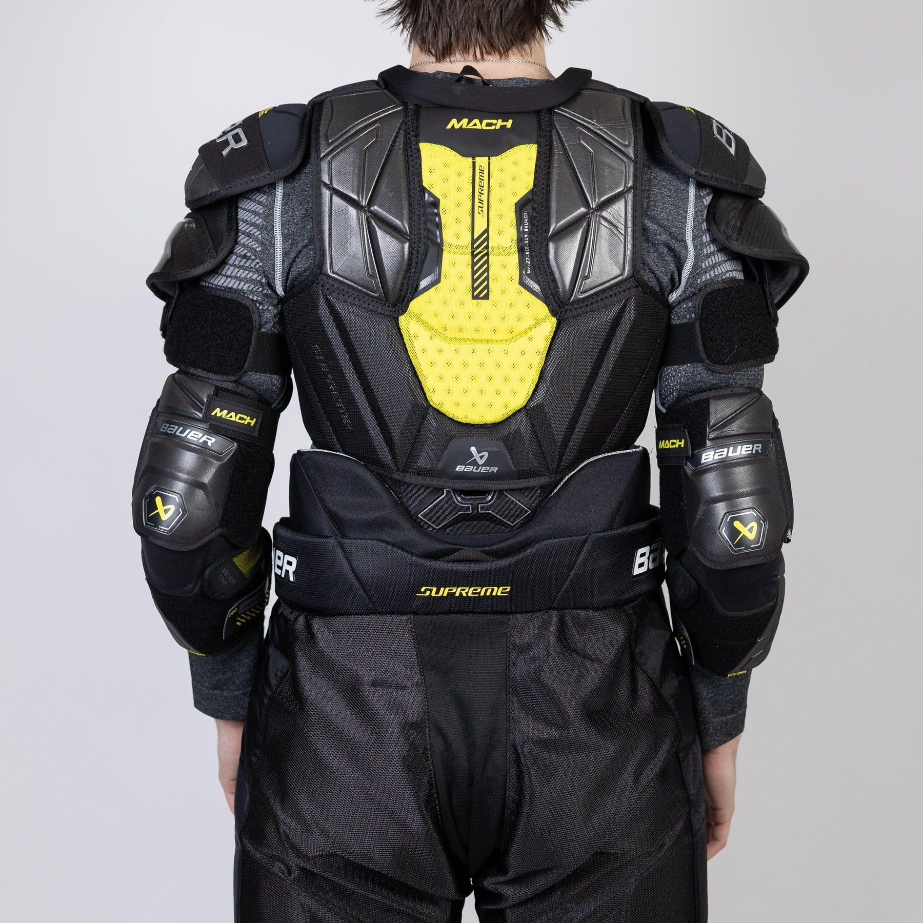 Experience the next level of protection and performance with the new Supreme Mach protective line from Bauer for the 2023 season. The gear is designed to offer unparalleled protection against impact in all directions while still allowing for lots of maneuverability. Features on the Mach elbow pads include ErgoDynamic Lab elbow caps, AMP hinged biceps, DCT foam, and CURV composite.