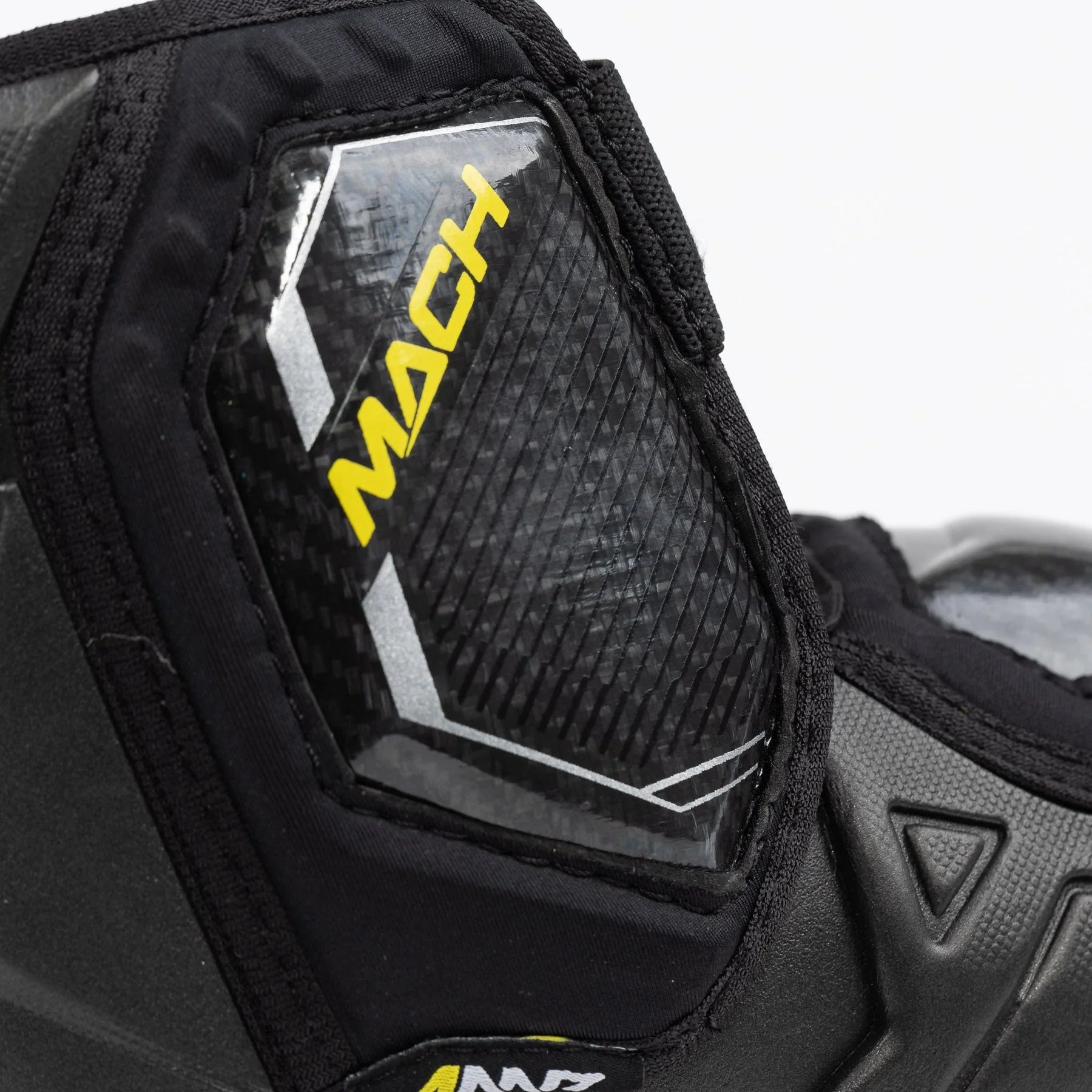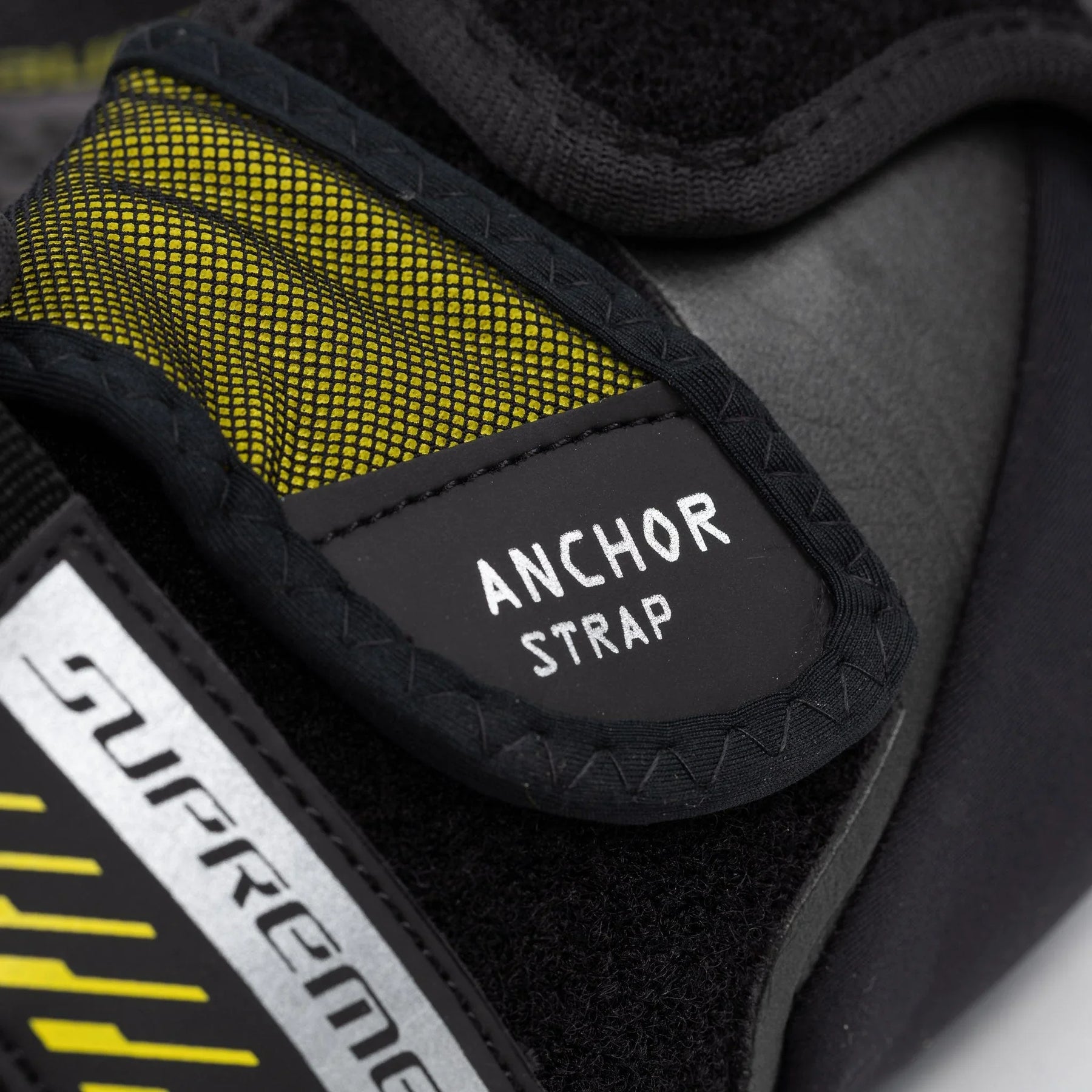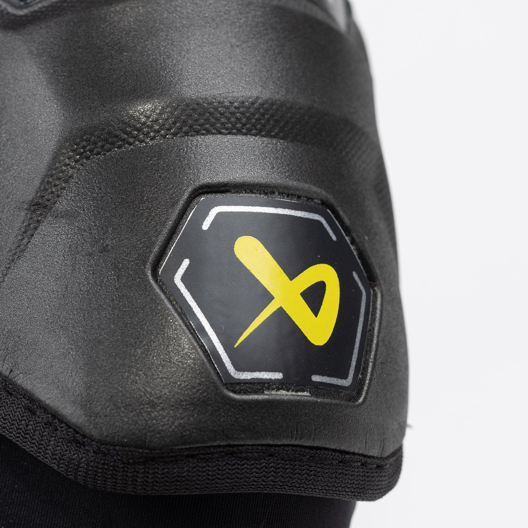The Mach elbow pads feature Defence Cloud Tech (DCT) foam, strategically placed in the inner elbow donut area, which provides lightweight and exceptional cushioning. DCT has been successful in many of Bauer’s latest gear, so it’s no surprise that we’re seeing it here again. The elbow cap also incorporates a new ErgoDynamic Lab low-profile design, ensuring a deeper and more secure fit. This design promotes a snug and contoured feel, allowing players to move freely while maintaining reliable protection.