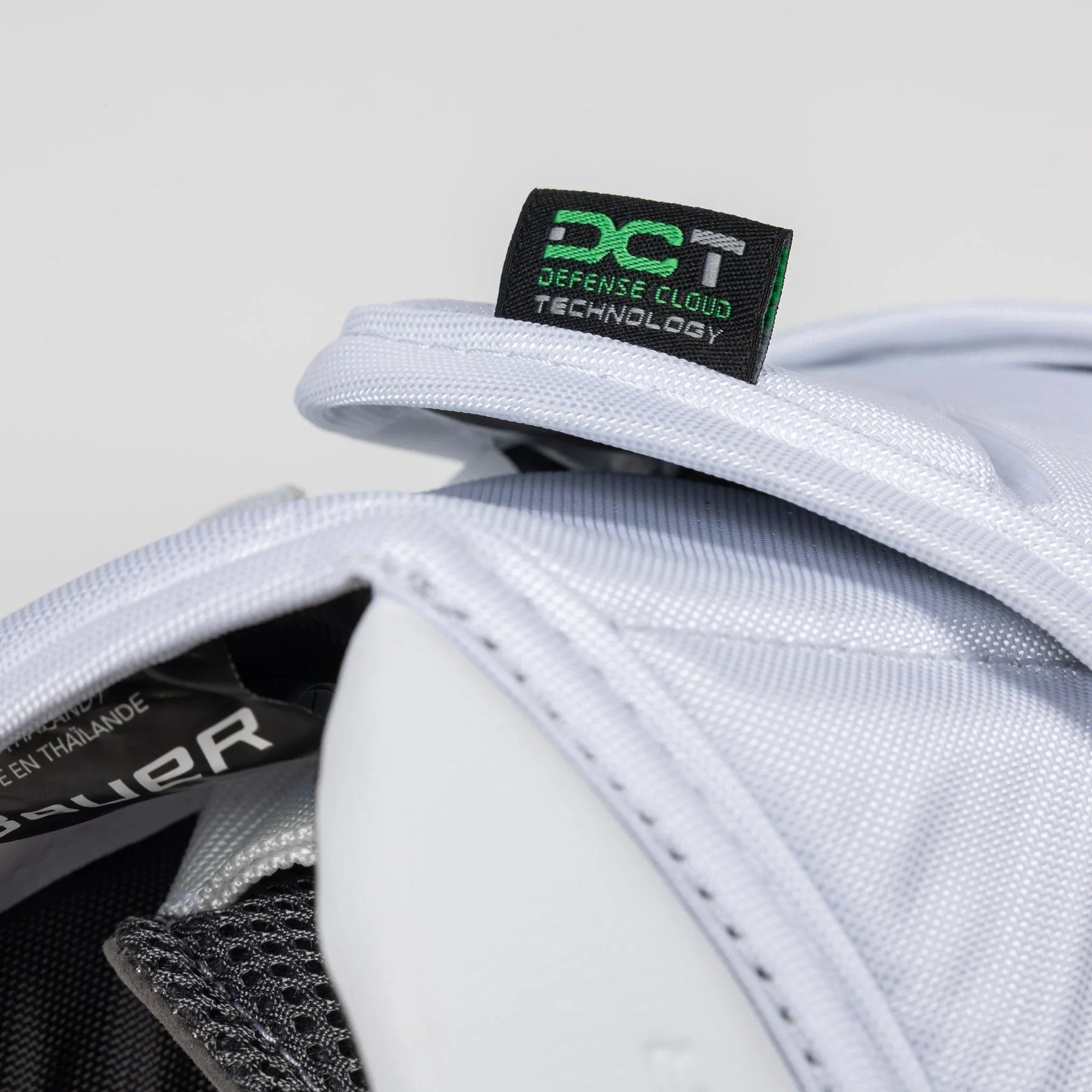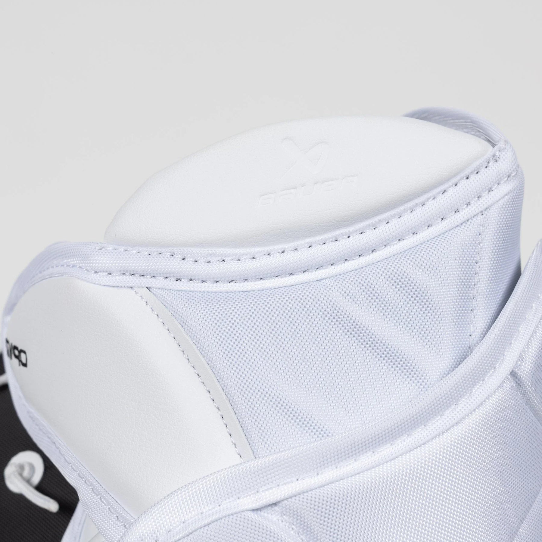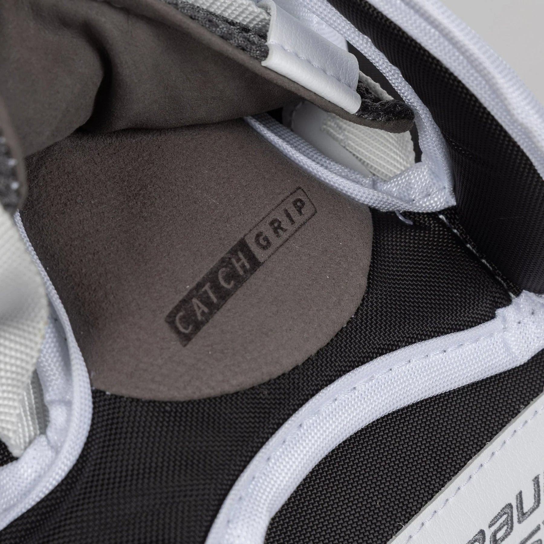 As part of the 2025 Vapor Goal collection, Bauer has unveiled the SV-90 catcher. The SV-90 catcher is equipped with key features similar to the Flylite catcher, but at a lower price point. It is built with a CURV reinforced cuff, a single T pocket design to aid in trapping the puck, and a nash palm for added grip and protection from impacts.