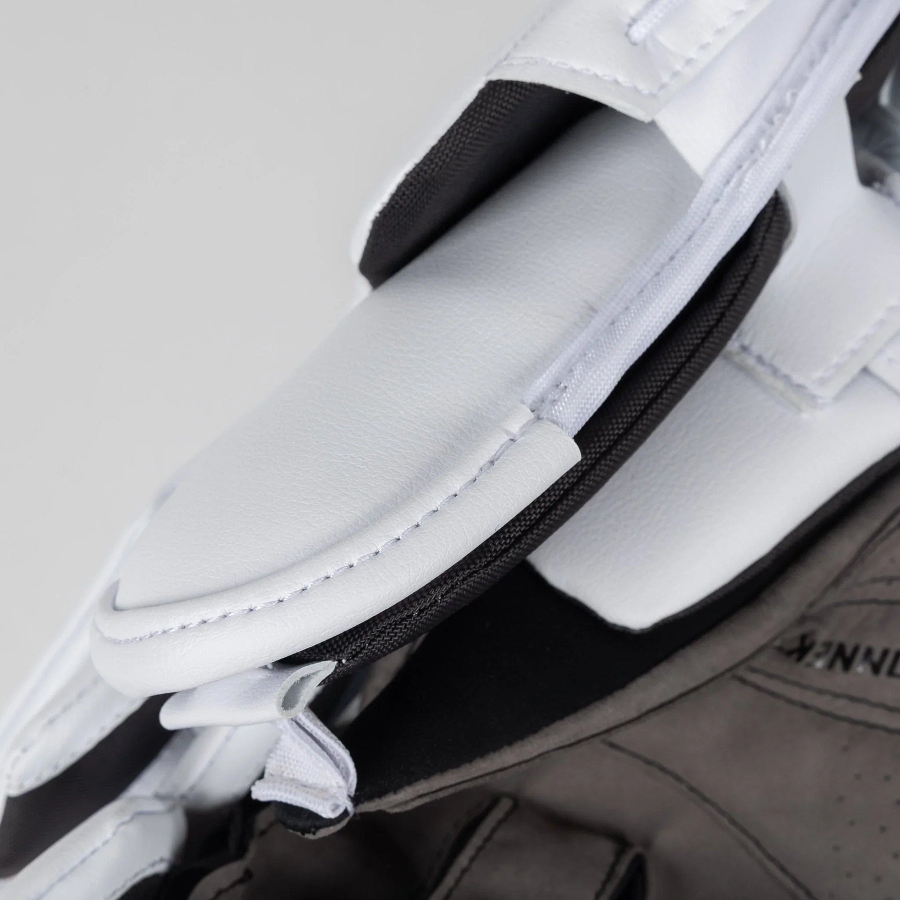 The side of the hand is protected with a Vapor geometry design with reinforced stiff polycarbonate. The addition of stiff polycarbonate keeps goalies protected from impacts, while providing coverage to the key areas. The Vapor geometry gives the blocker a sleek and clean look, so the blocker does not feel bulky while wearing on the ice.