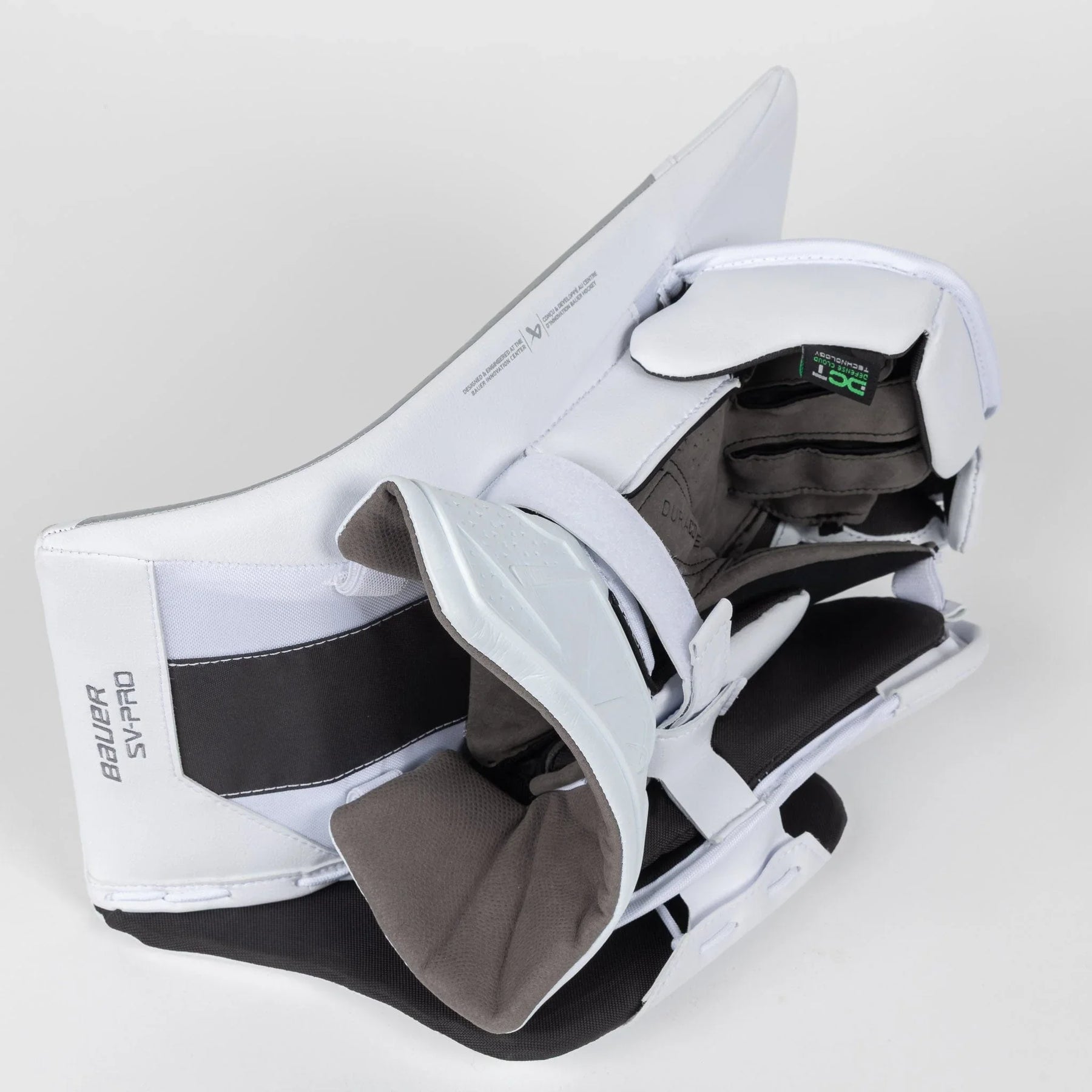 The Vapor SV-Pro blocker wraps the fingers with easy-flex, hinge finger blocks, composed of Bauer's lightweight, high-impact DCT foam. DCT is designed to provide a combination of comfort and protection by utilizing a series of lightweight foam pods that are strategically placed throughout the blocker. These foam pods are engineered to provide a high level of impact protection while also allowing for greater mobility and comfort while also providing excellent impact protection. They absorb and disperse impact energy, making it easier to make saves with confidence.