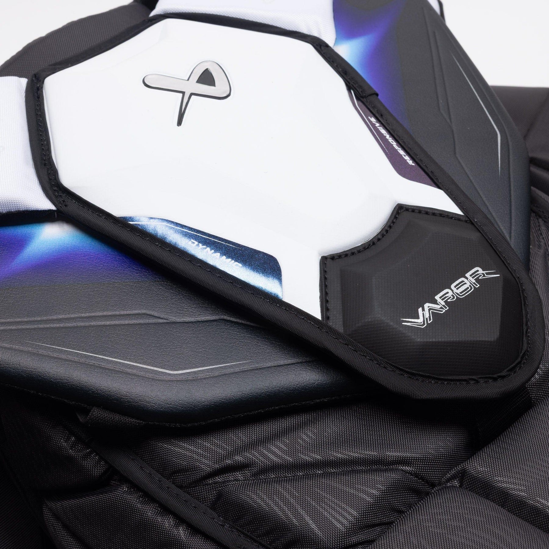 Inside the arms, there is also a dynamic 3-point flex system which allows for optimal arm rotation so goalies aren’t feeling restricted while wearing the chest protector. The arm system is also reinforced with CURV which provides goalies with a durable material to provide an extra layer of protection.