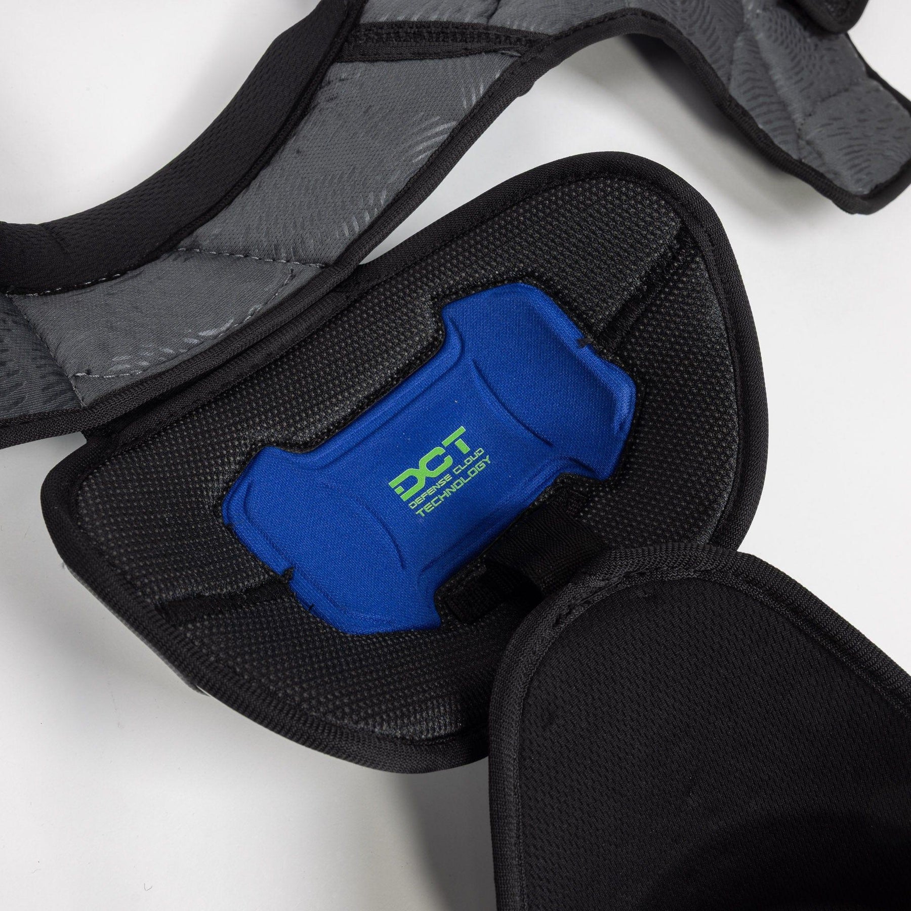 The FlyLite shoulder pads feature low profile caps with a DC tech foam insert. This provides players with comfort and protection when taking impacts, while also being comfortable. The Hyperlite foam cover can be seen on the outside of the caps and it provides an additional layer of protection, while also providing durability to the shoulder caps overall.