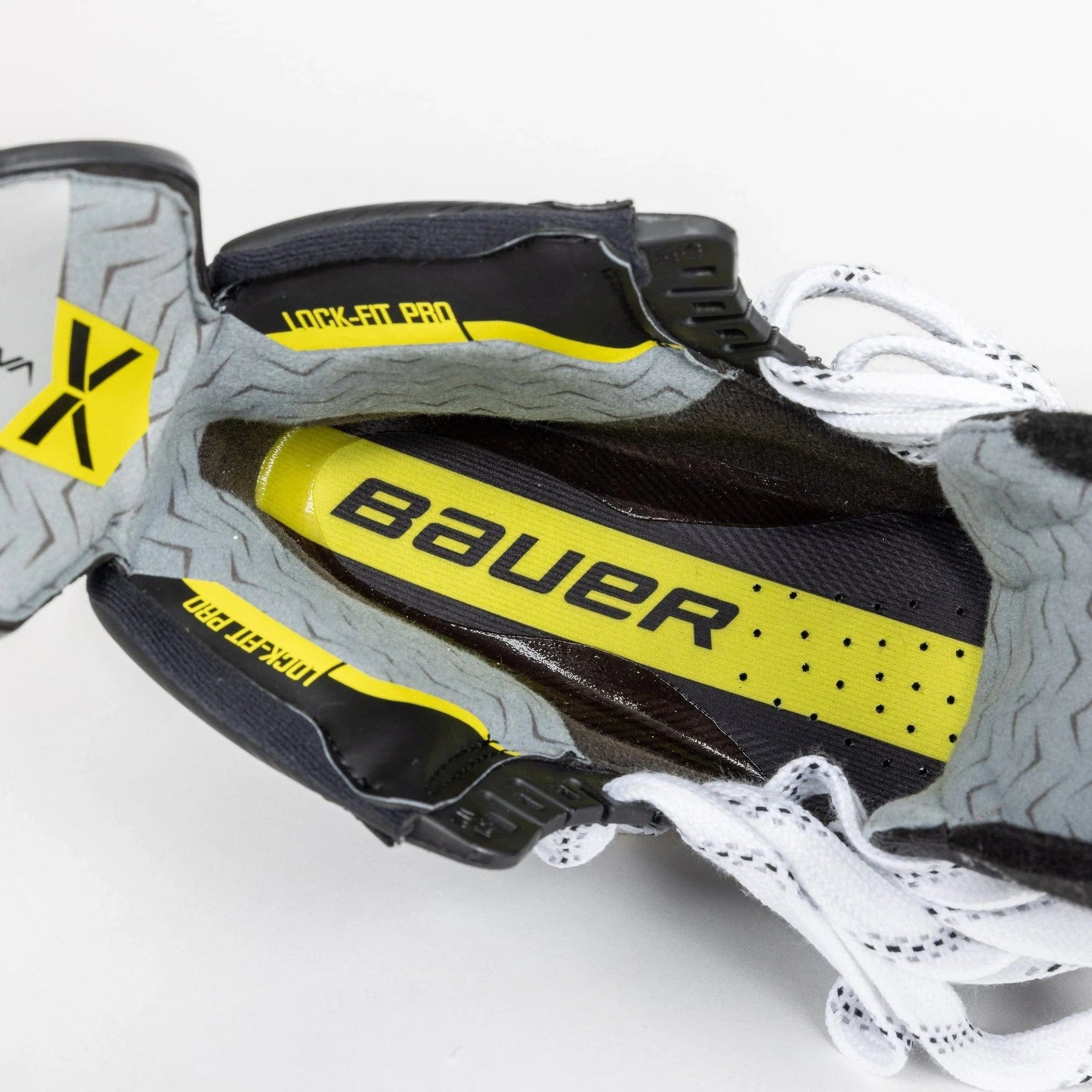 The stock insole of the HyperLite 2 skate is still Bauer’s Lock-Fit Pro, which combines comfort with good control in the sole. Lock-Fit is designed with additional grip along the sides, so your feet can stay locked in place while you skate. This design also ensures you don’t lose power on the stride.