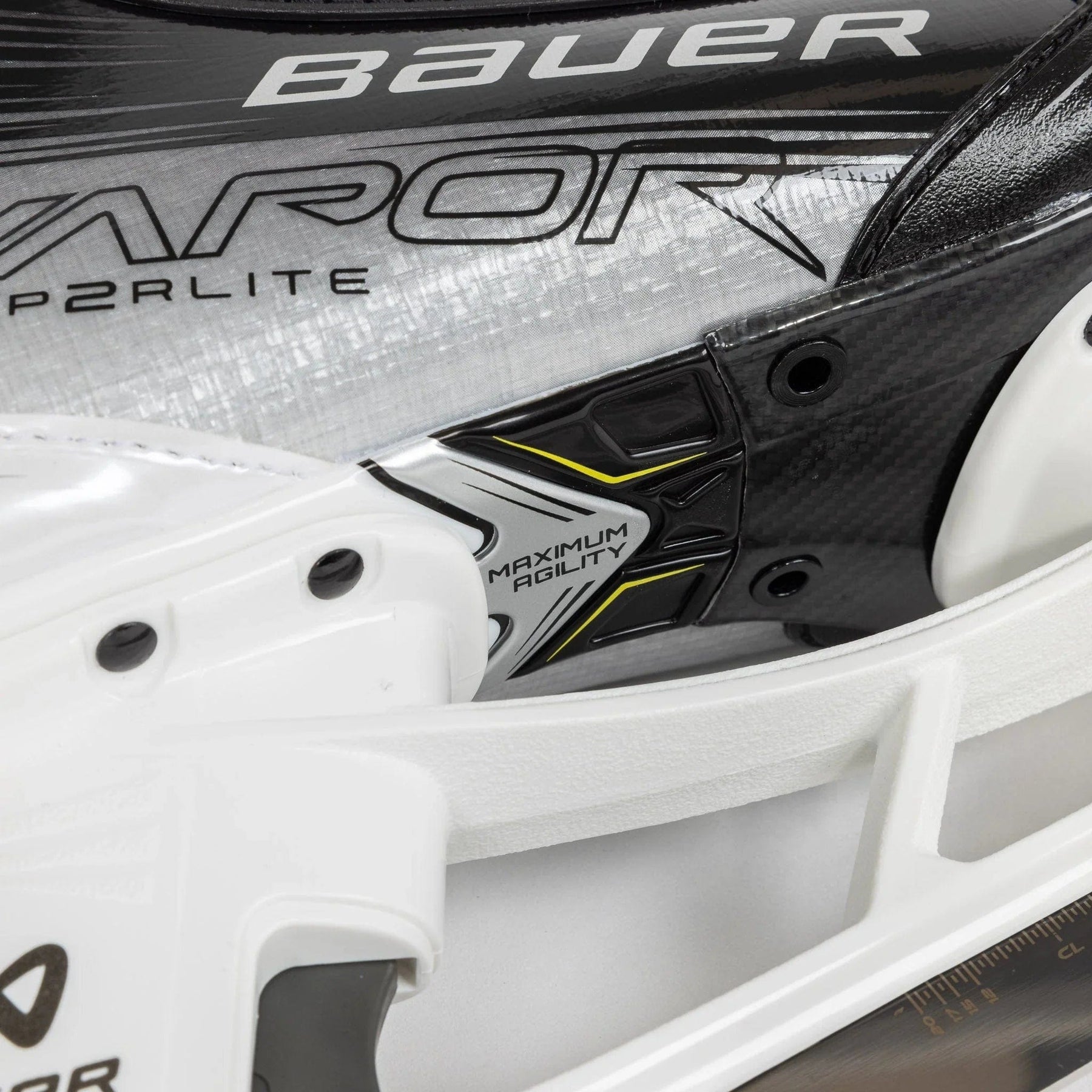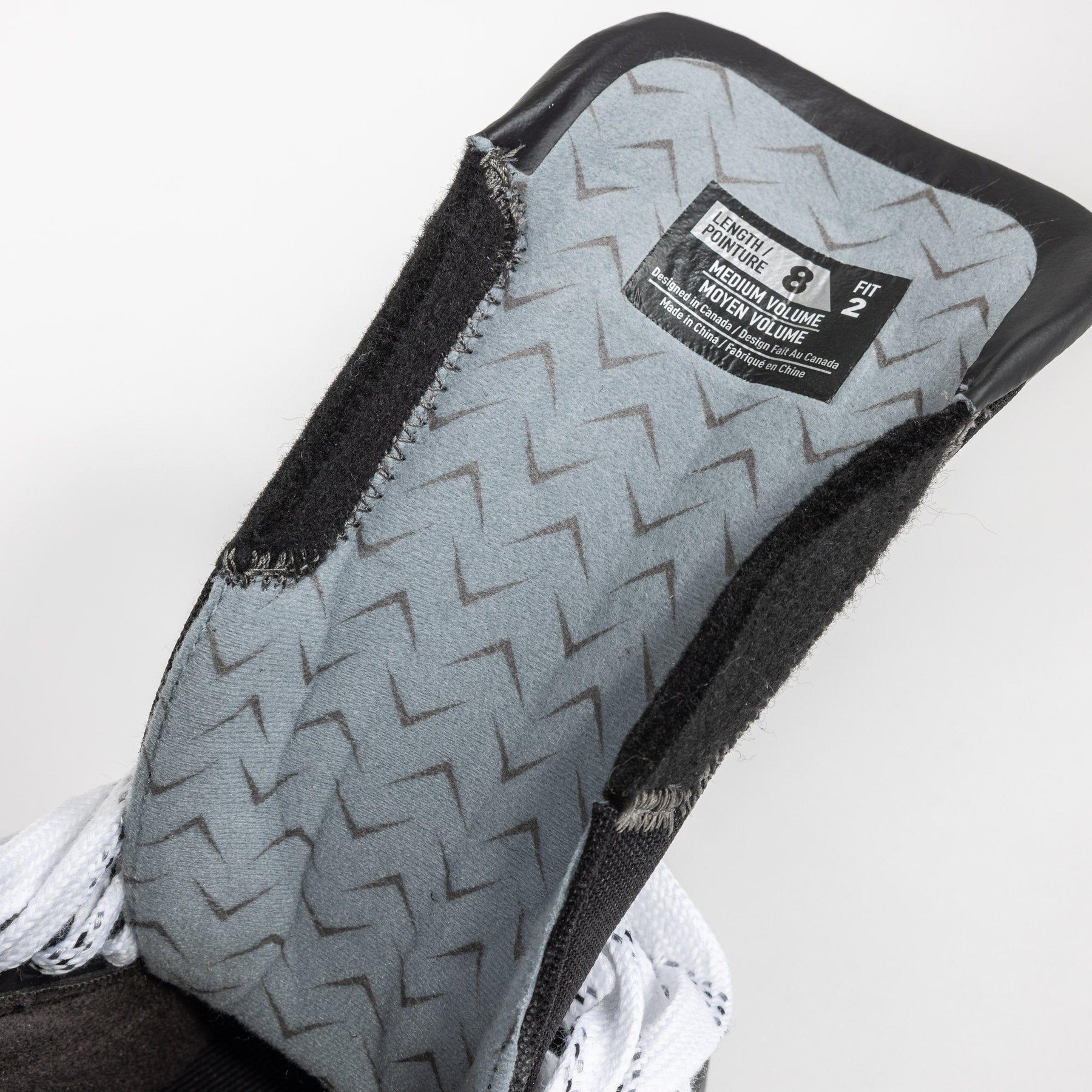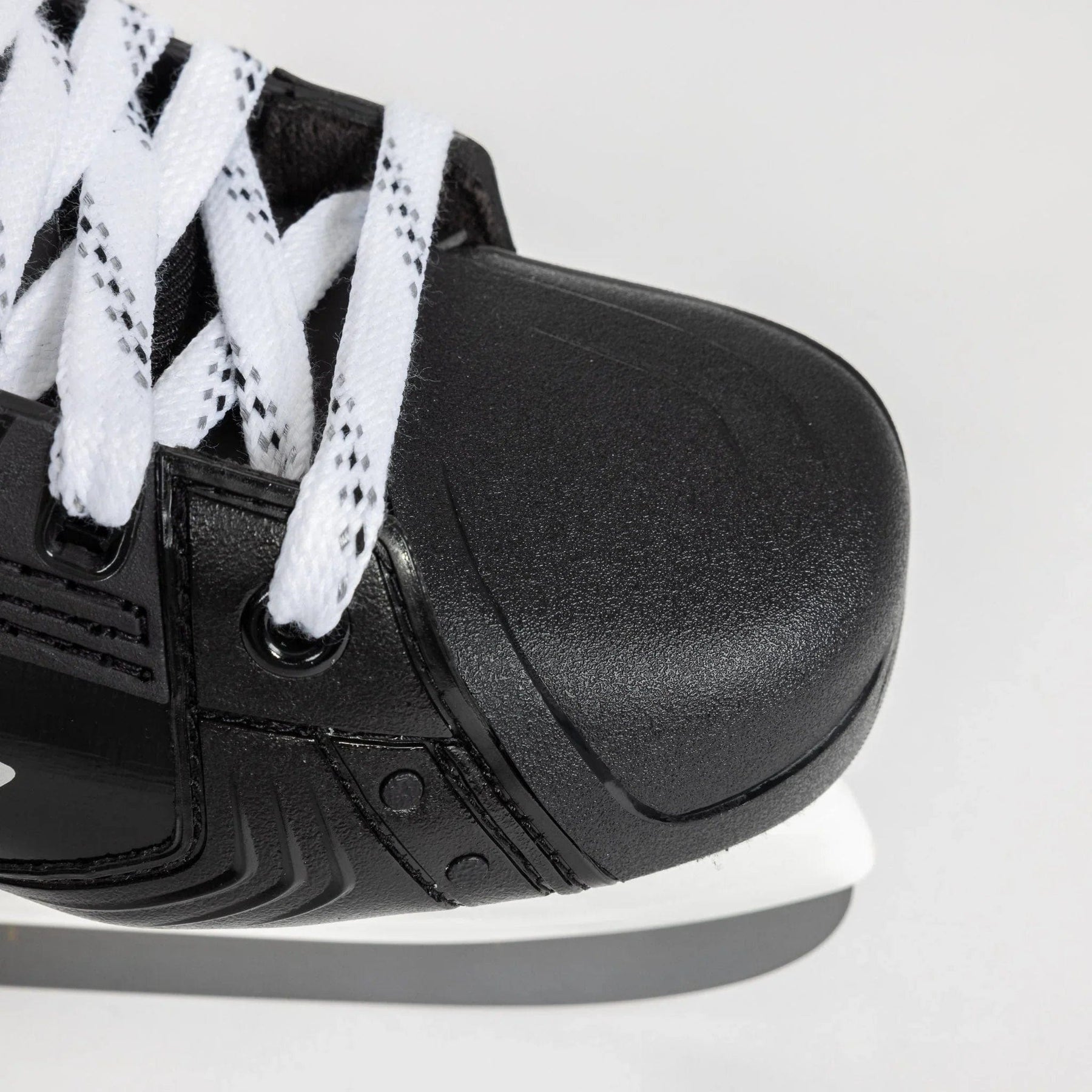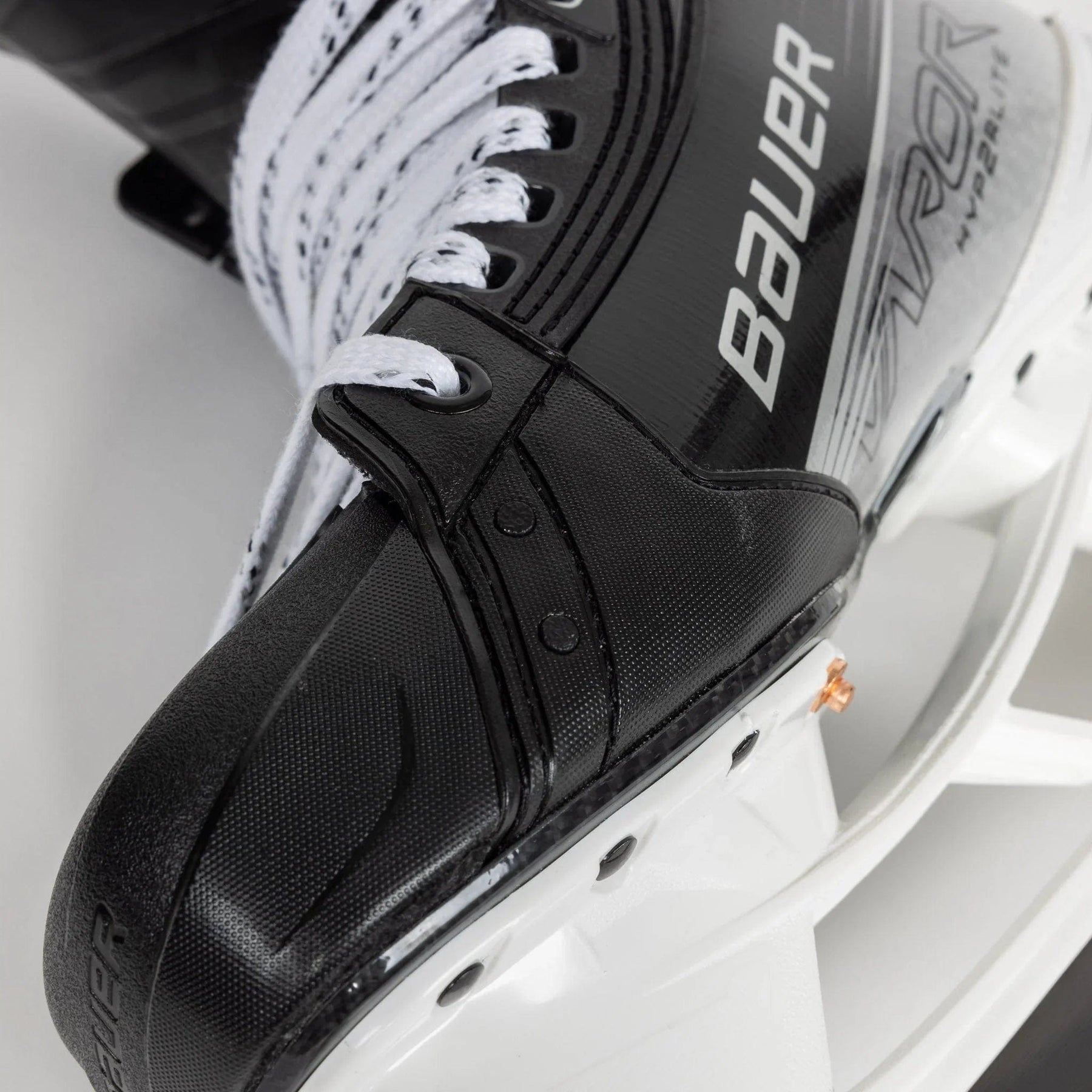 For a better overall fit and to negate any unused space within the boot, Bauer turned to using an asymmetrical toe cap, a concept that has been observed in previous high-end Bauer skates.