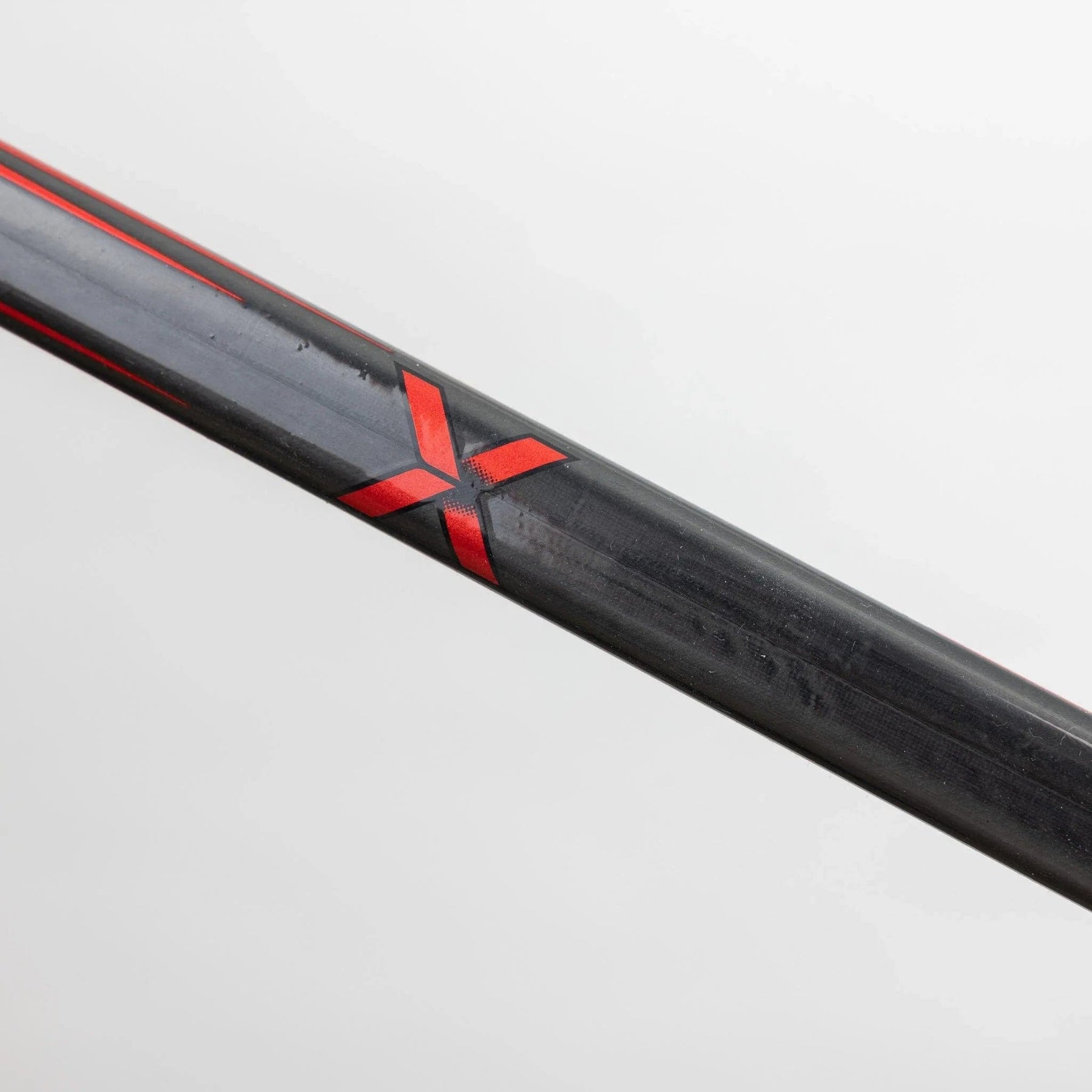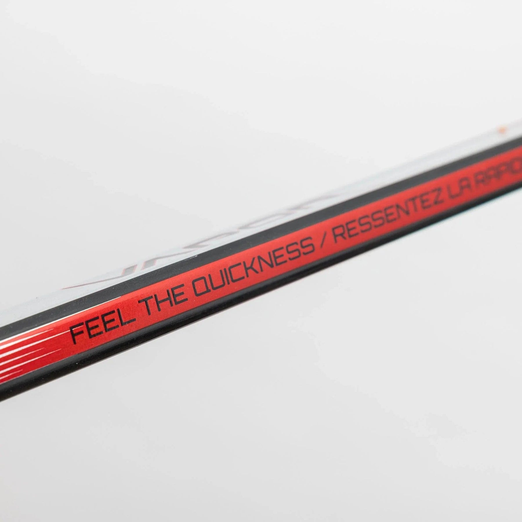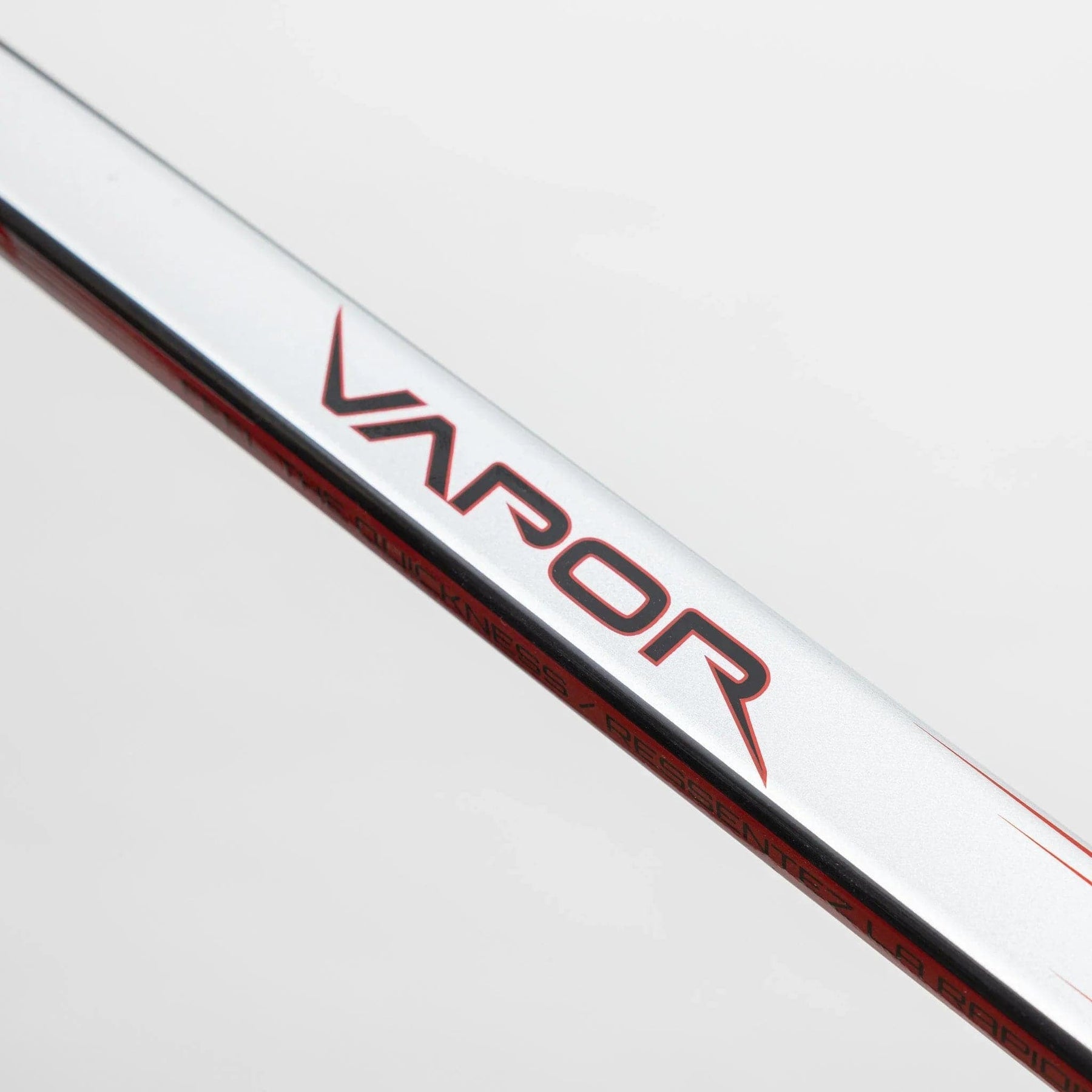 The stick has a very modern vapor look, with a red, white, and black colouration. The top of the shaft is reserved for the grey, red and white, while black and carbon material take the bottom. Vapor logo is printed subtly in both areas and in similar colours, and Bauer’s classic lettering is placed near the blade in white.