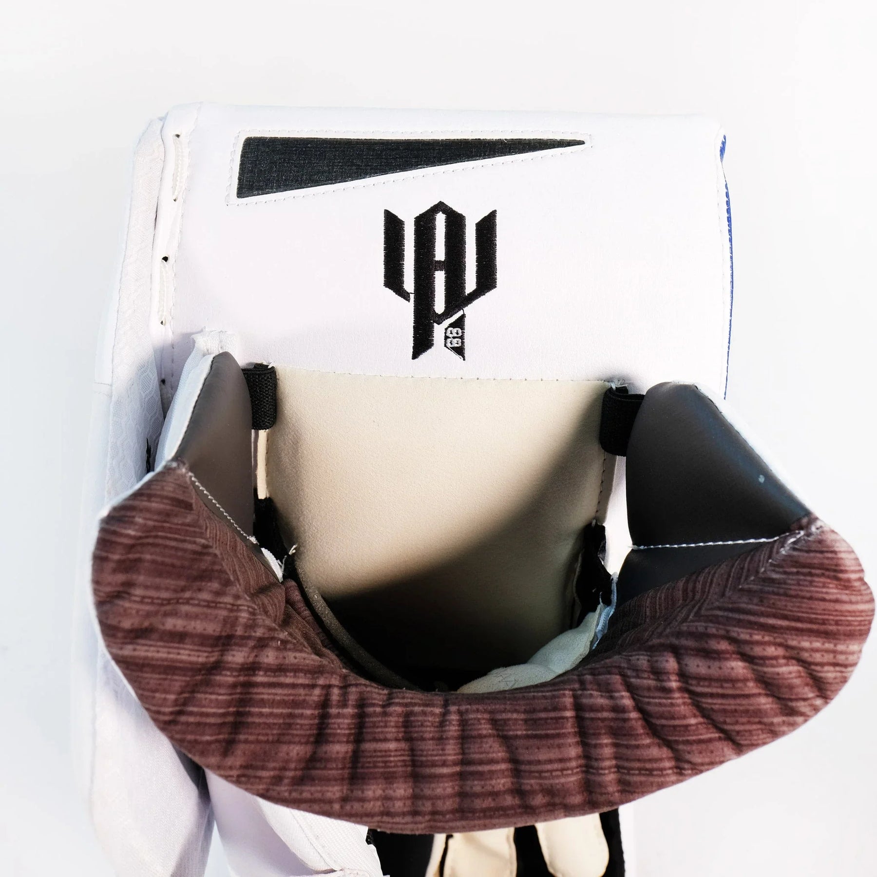 Vasilevskiy selected quite a good number of custom features on the catcher for this set. Like the blocker, it wears Hyperlite graphics with an Ultrasonic construction. The backhand opening is reversed, meaning the velcro opening has been placed on the left and not the right, as it normally is. The backhand and cuff have some additional padding for increased protection; however, it's good to note that the glove has no Poron XRD foam anywhere in its construction, unlike the standard Ultrasonic. The catcher uses a game ready palm, as well as waxed skate laces in the pocket, and has a 75° break angle, or a 600 break.
