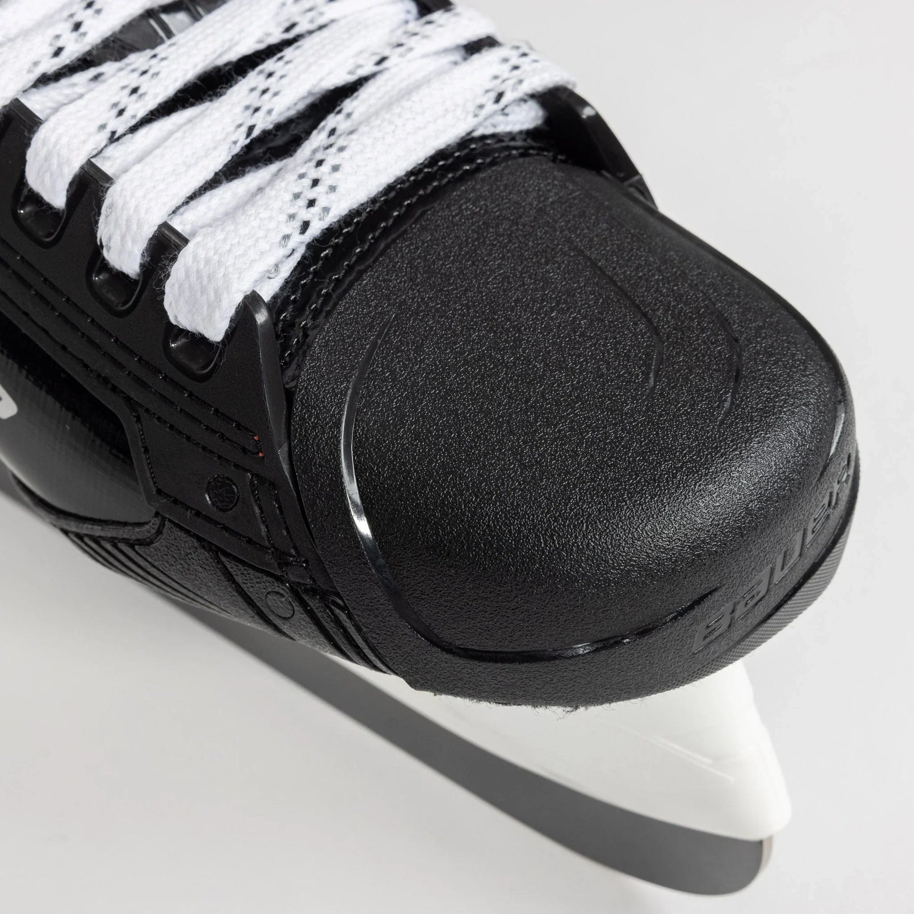 For a better overall fit and to negate any unused space within the boot, Bauer turned to using an asymmetrical toe cap, a concept that has been observed in previous high-end Bauer skates.