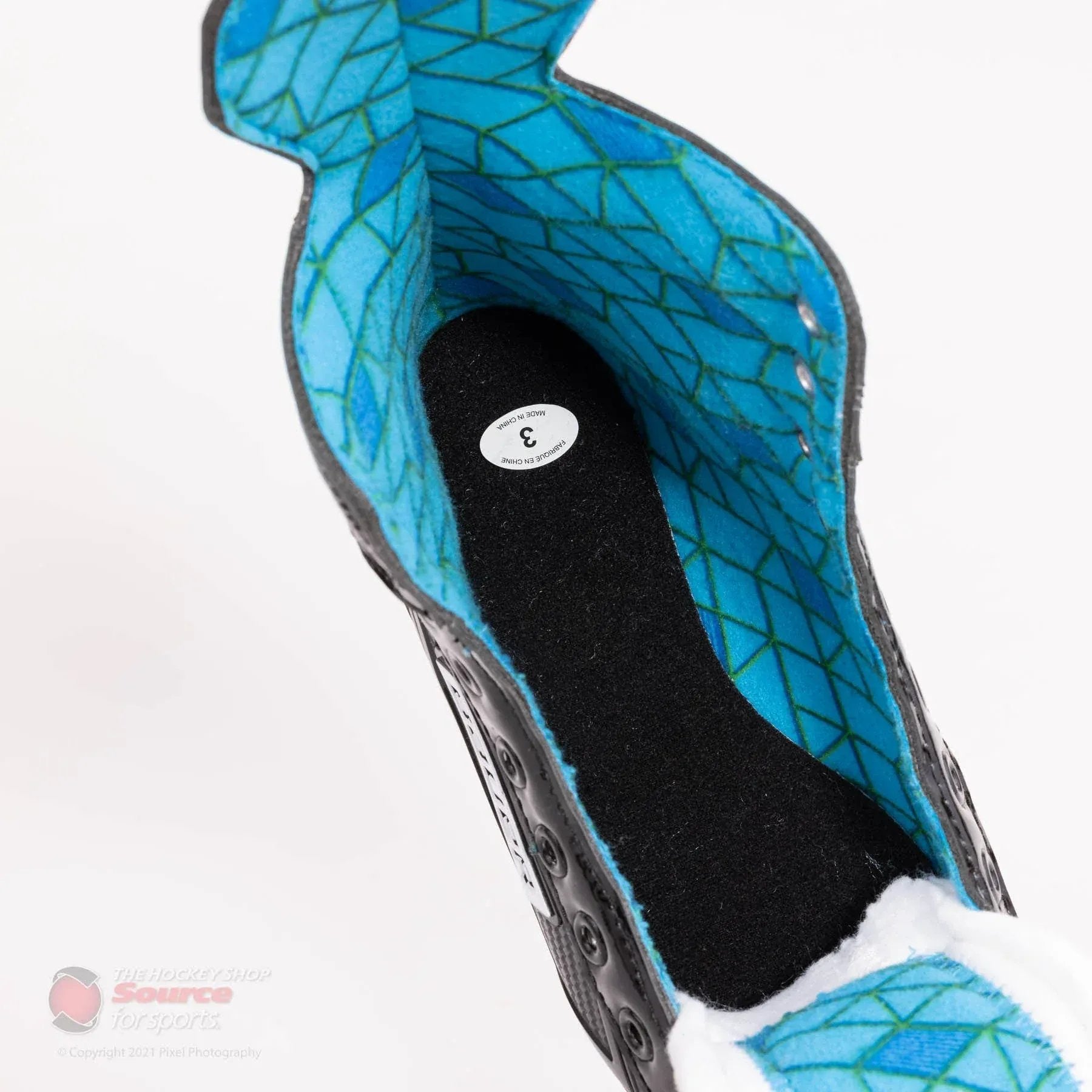 The graphic on the X-LP skate brings a new look. The boot brings an al black look with hints of blue accenting some of the key areas. This is a very nice looking boot!