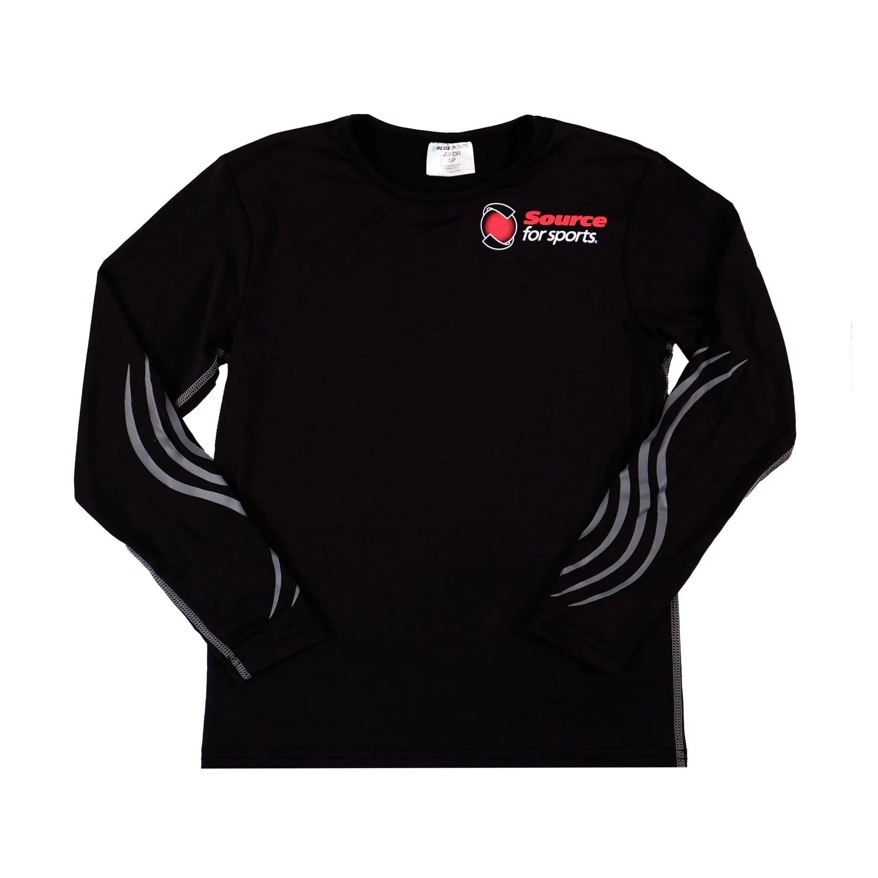 Make sure you stay dry and comfortable with the Blue Sports Compression Long Sleeve Youth Shirt. This Source for Sports exclusive features an anatomical fit and breathability. The sleeves are outfitted with grippy graphics to ensure your gear stays where it's supposed to.