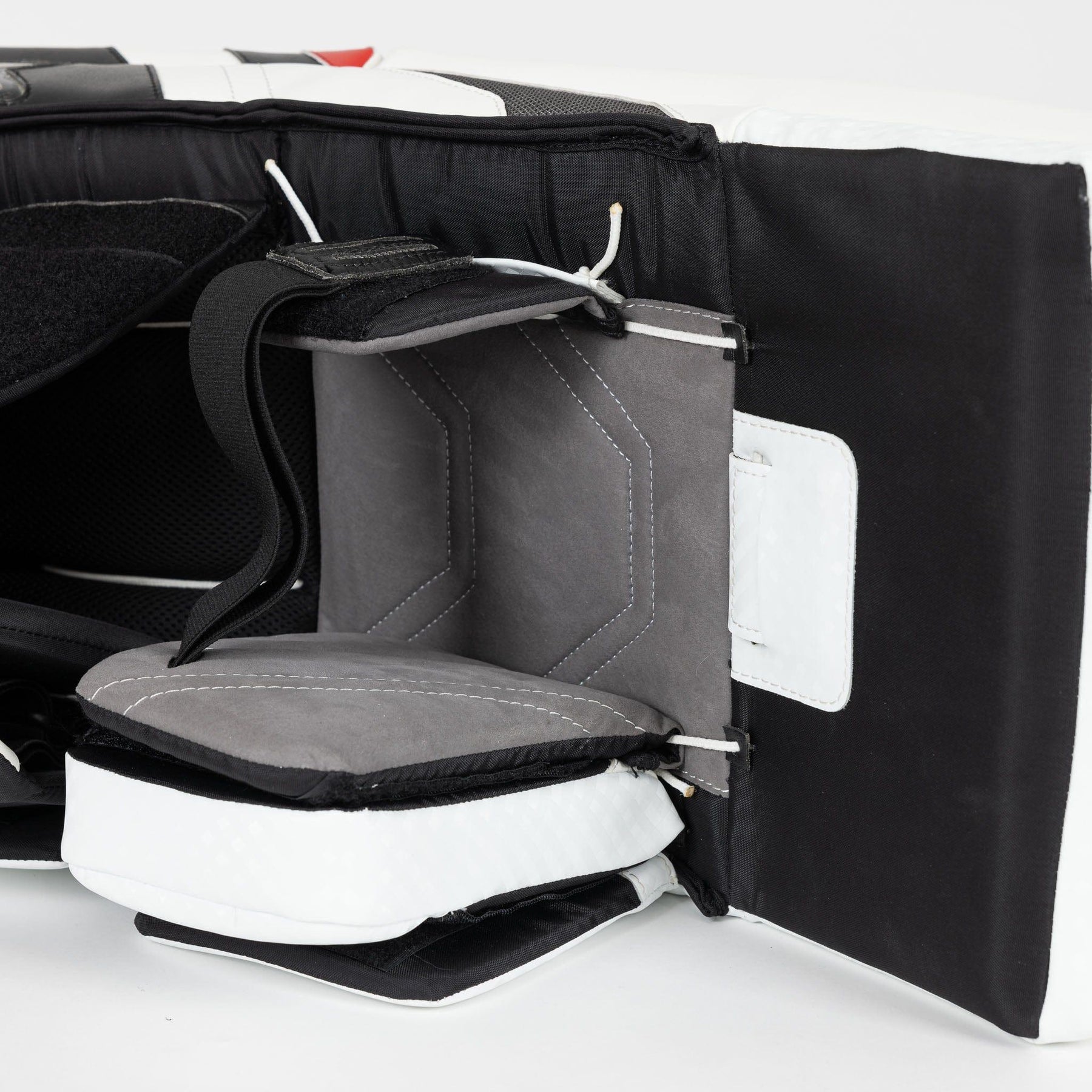 The G-NETik X5 goalie leg pads take inspiration from the high-end G-NETik V in a more affordable stock pad. It includes many technologies from the V, among others, including a Primo Sliding Edge, G-NETik V-style strapping, a Suede knee cradle, and Smart Cord strapping. The X5 looks to upgrade your game, no matter the level you play at.