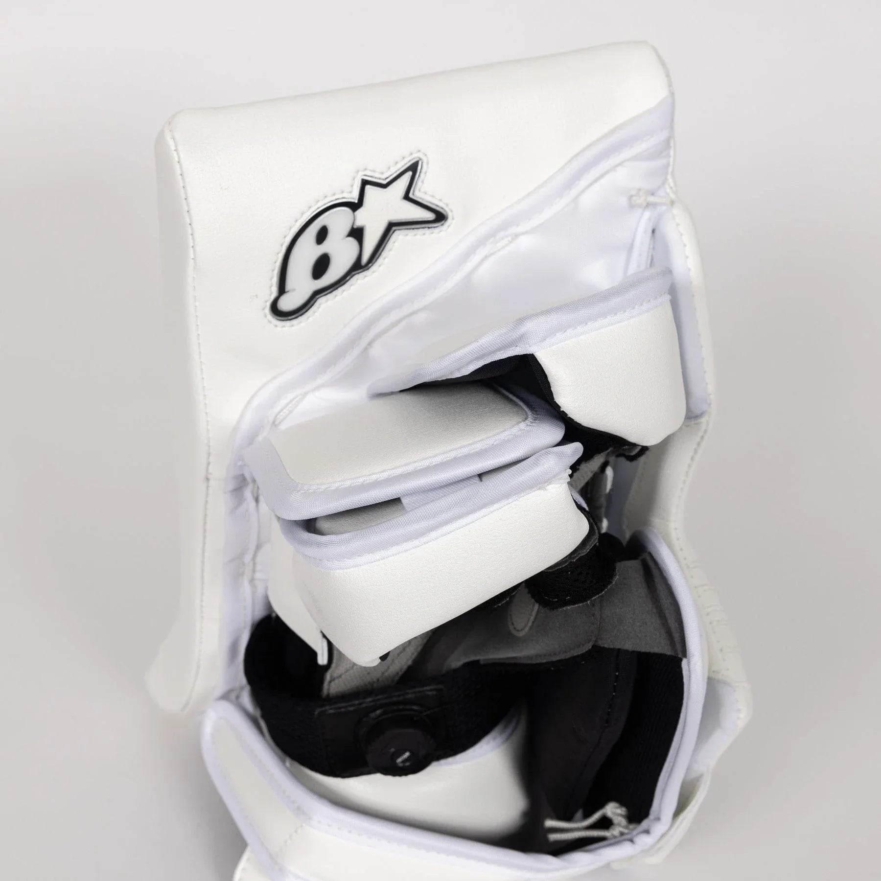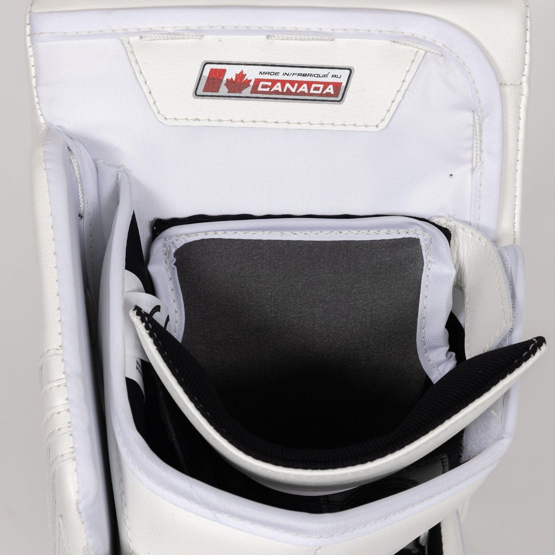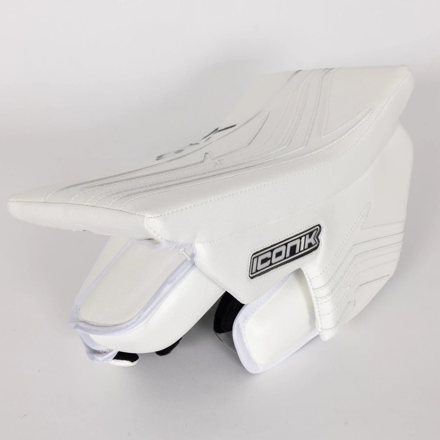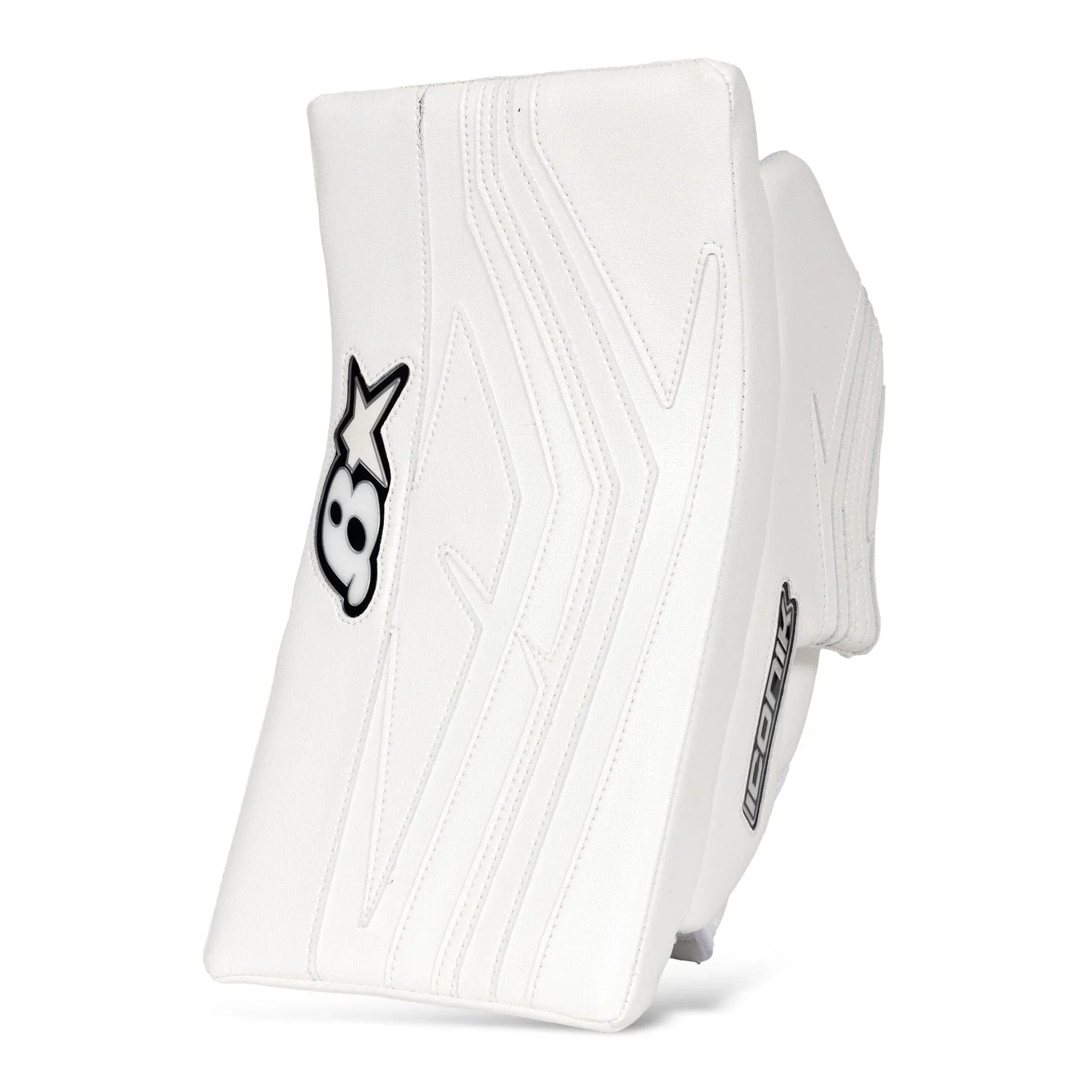The Brian's Iconik Senior Goalie Blocker with the INT Palm comes in White and Black/White. Both blockers come with the option for a full-right, depending on catch hand.