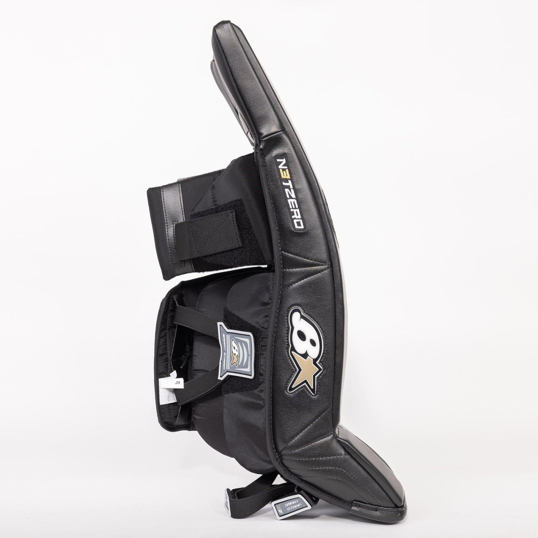 Best price guaranteed.The Brian's NetZero 3 Junior Goalie Leg Pads are crafted for the butterfly goalie. This pad has the full flat face design with a reduced outside roll for the appearance of a larger blocking surface. We also see the 80 degree toe taper to help with a more relaxed stance, reducing the chance of the inside from contacting the ice and causing any unnecessary stability.