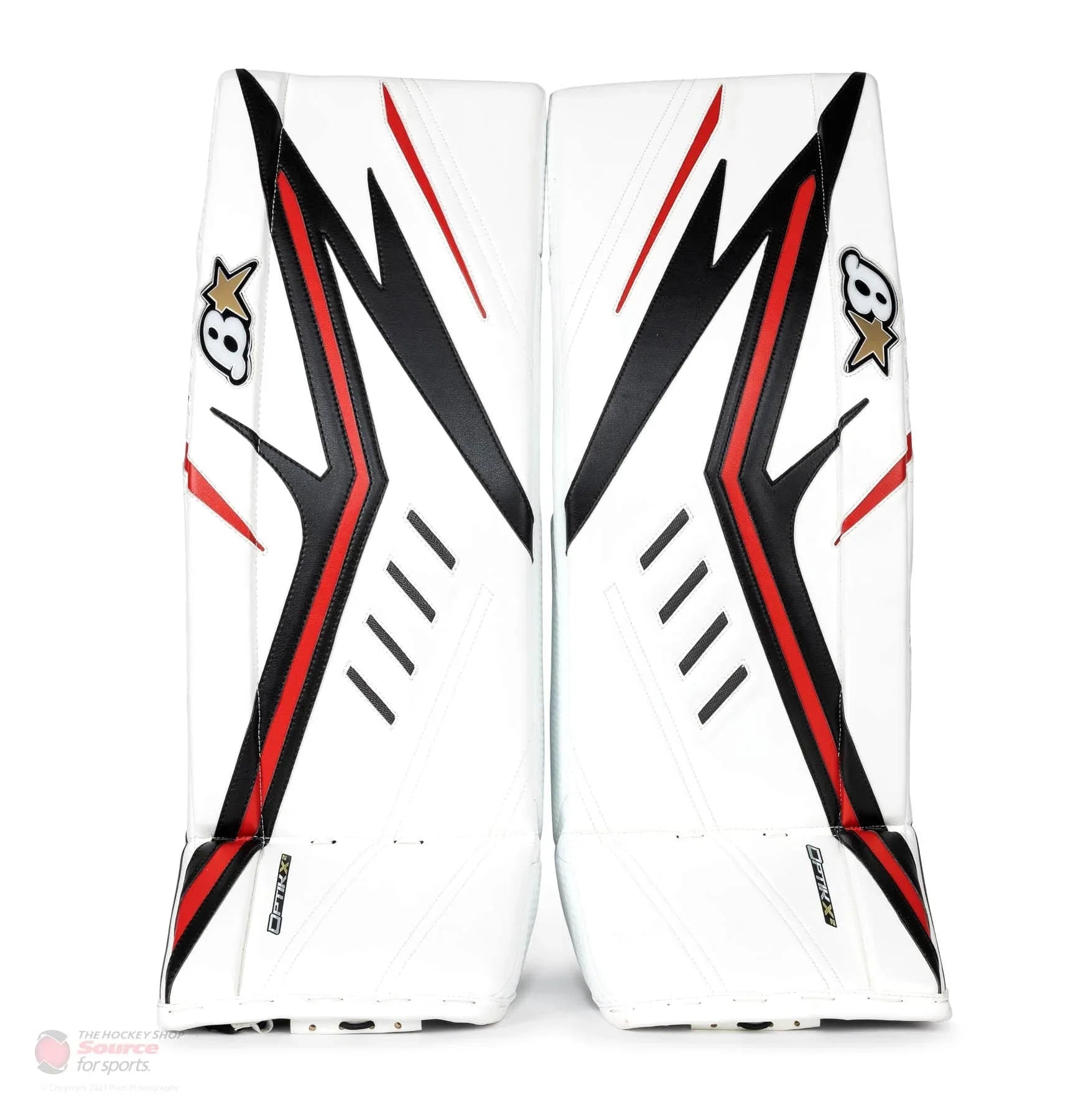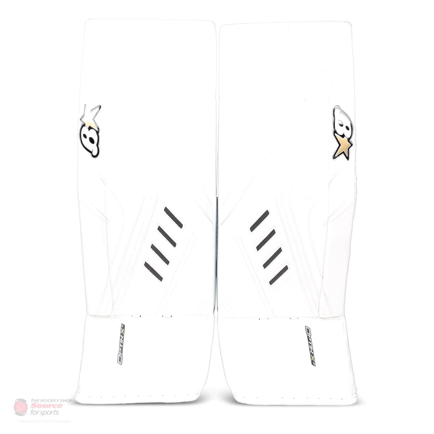 Best price guaranteed.New for 2021, the Brian's OPTiK X2 JR Goalie Leg Pads bring many high-quality pro benefits to a value price point. Featuring a flat-faced flexible core design, OPTiK 2 style calf wrap system, and a primo sliding edge, the OPTiK X2 is a great option for goalies.