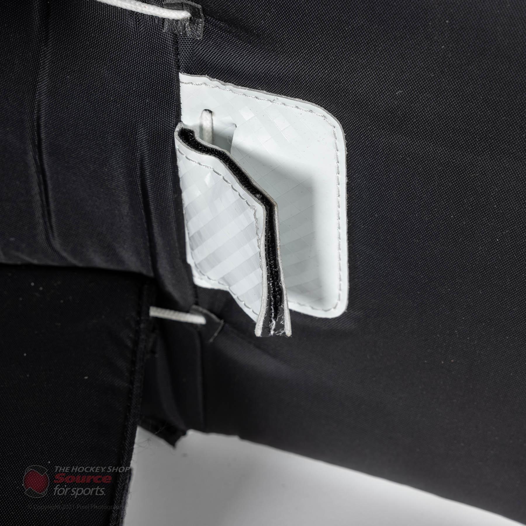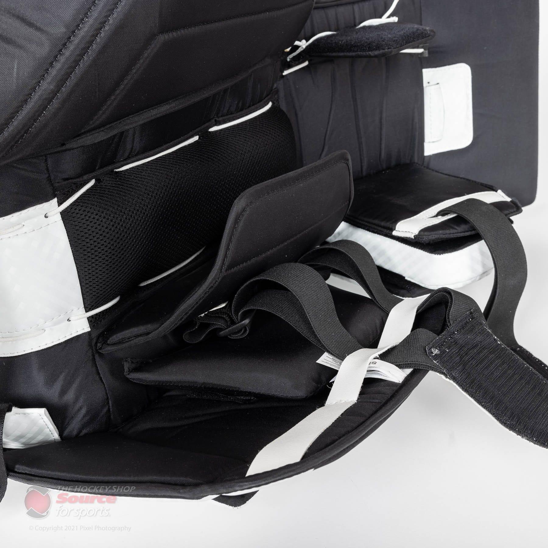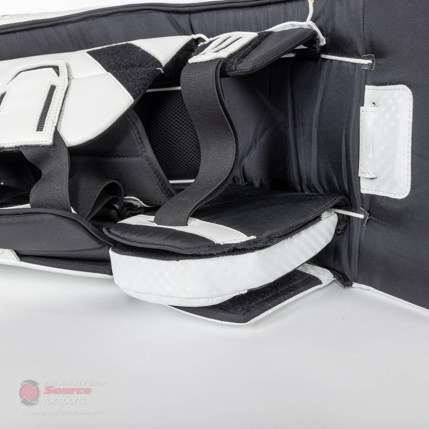 Once you have your new leg pads, you’ll need to make sure they fit you properly. To do so, you’ll need to put the pads on with your skates. There a couple things to do to check size, once you have the pads on: