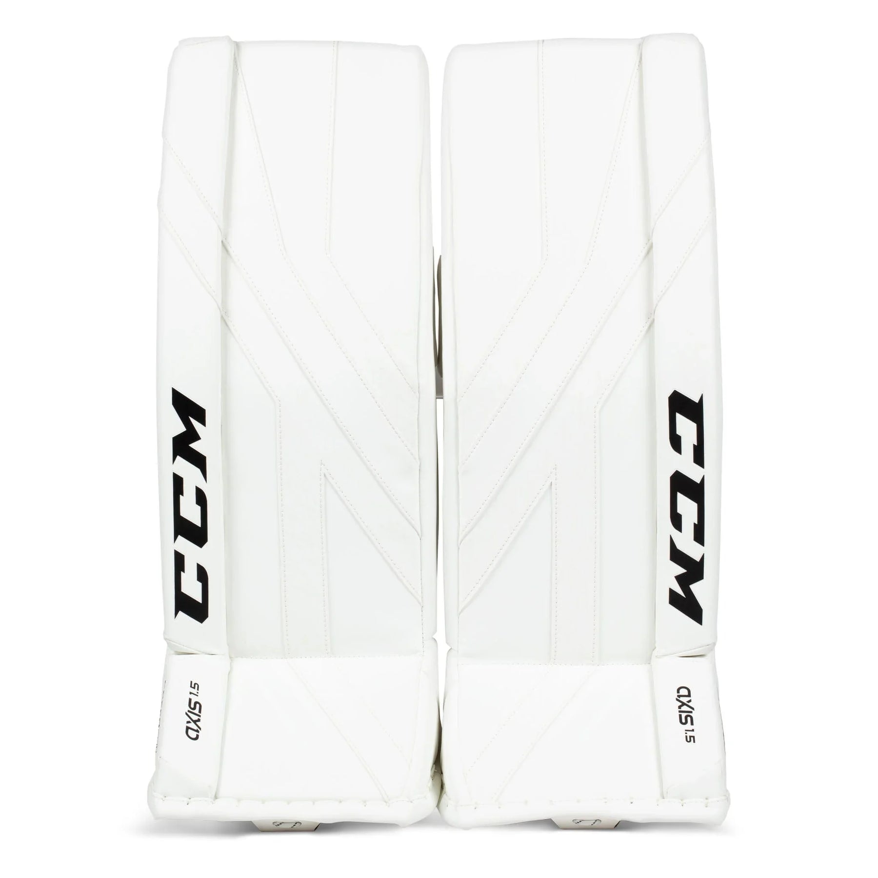 CCM Axis A1.5 Junior Goalie Leg Pads White / White / Black / Black / 26+1 - The Hockey Shop