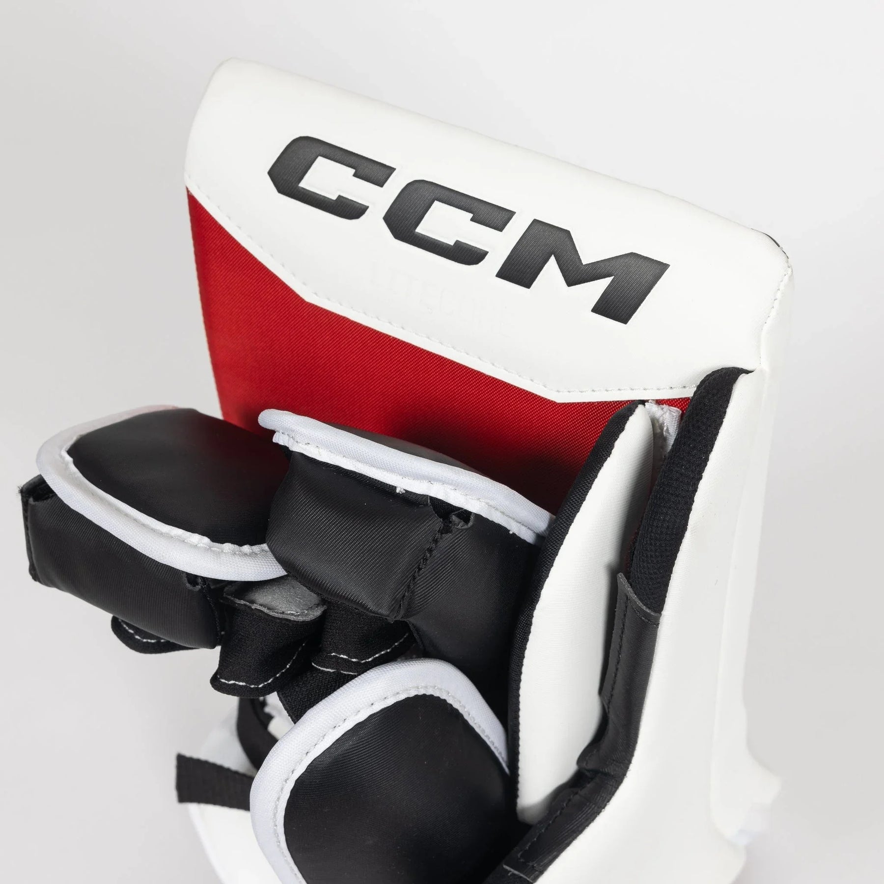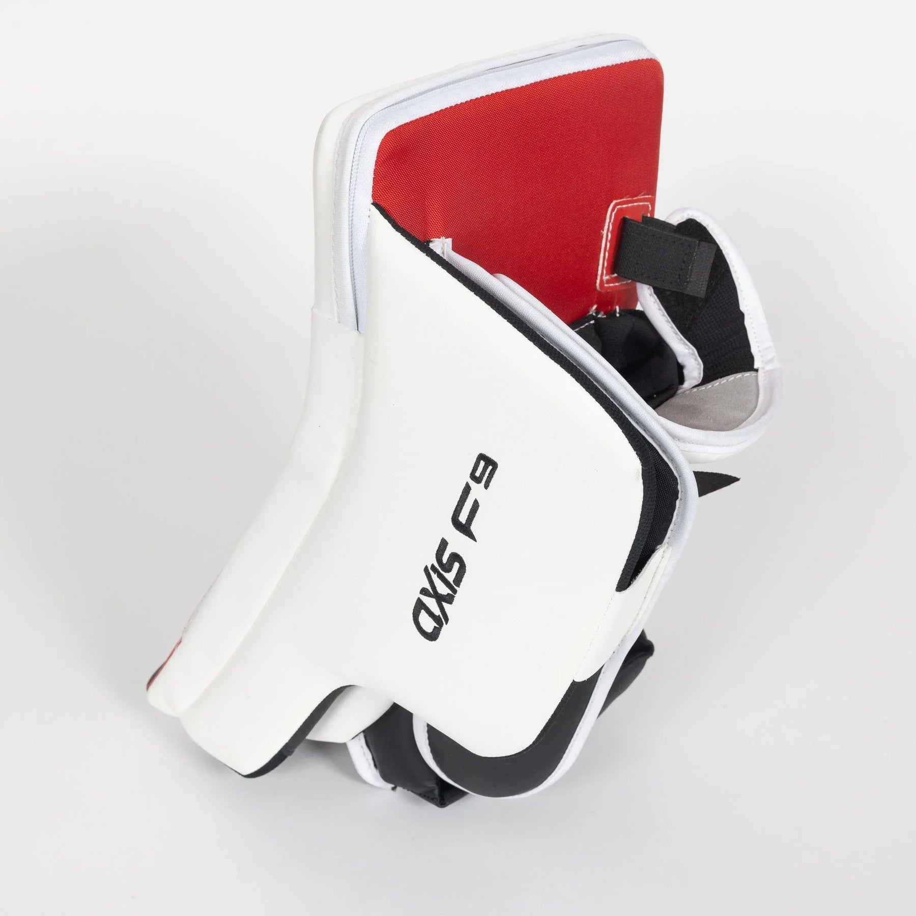 Introducing the new CCM Axis F9 Senior Goalie Blocker. Designed with a stiff sidewall providing coverage and protection, a flexmotion cuff that allows for a greater range of motion, and an ergonomic design that is great against impact force, keeping you protected.