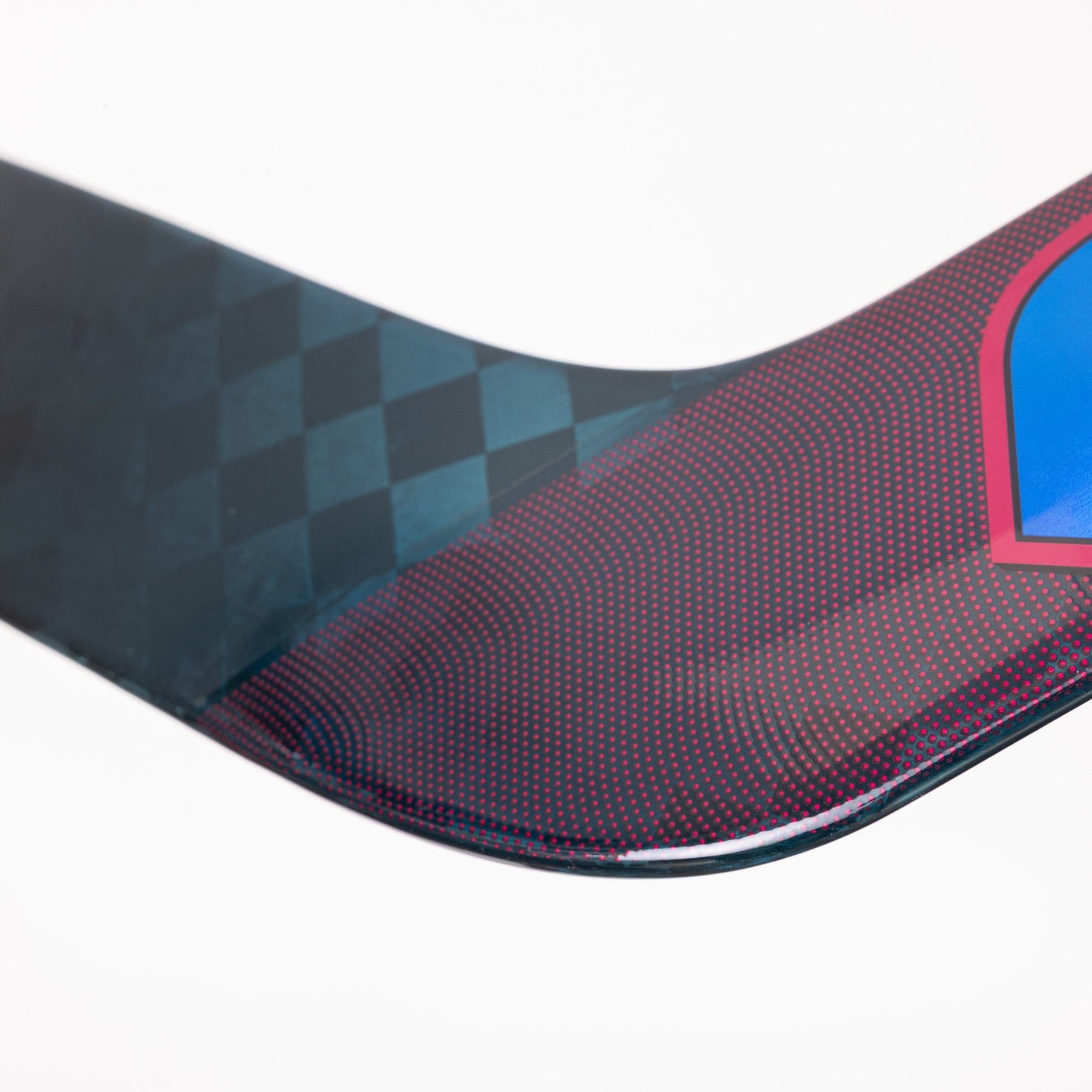 The shaft length of a goalie stick is usually best left at its stock length, as it serves to counteract the weight of the blade and ideally place the center of gravity at the top of the paddle. The one exception to this rule is for advanced puck handlers, cutting the shaft will allow more power transfer when shooting as a result of being able to keep the blade flush to the ice while near the goaltender’s feet.