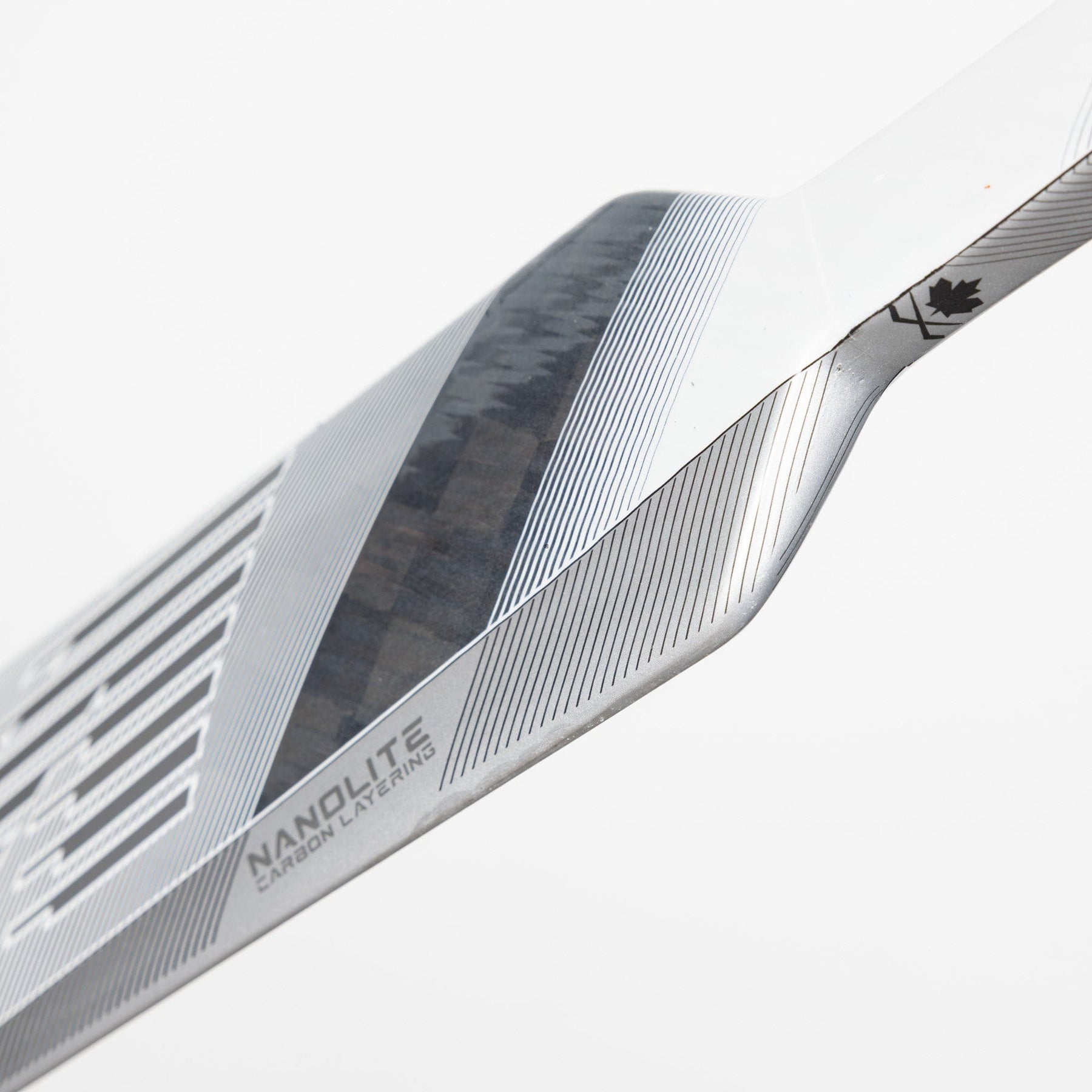 Unlike other pieces of gear, Goalie Sticks are sized mostly to the goaltender’s preference and playing style rather than their height. The most important measurement, when purchasing a new goal stick, is the paddle height (the wide portion of the stick), which is usually taken from the heel of the stick to the shaft/paddle interface. The reason for the paddle height’s significance is because it sets up the goaltender’s depth in the ready stance and (if properly sized) positions the blocker in an optimal position.