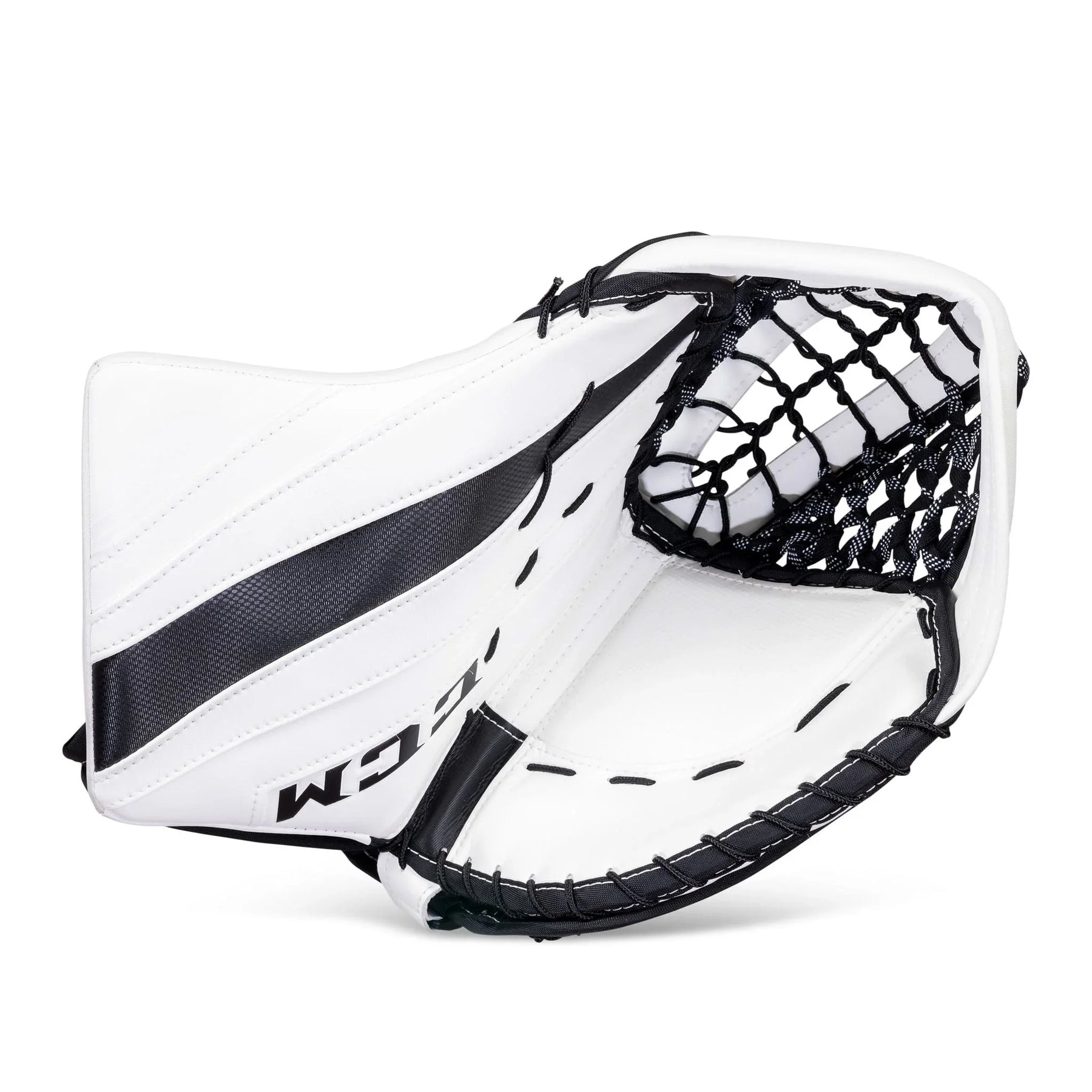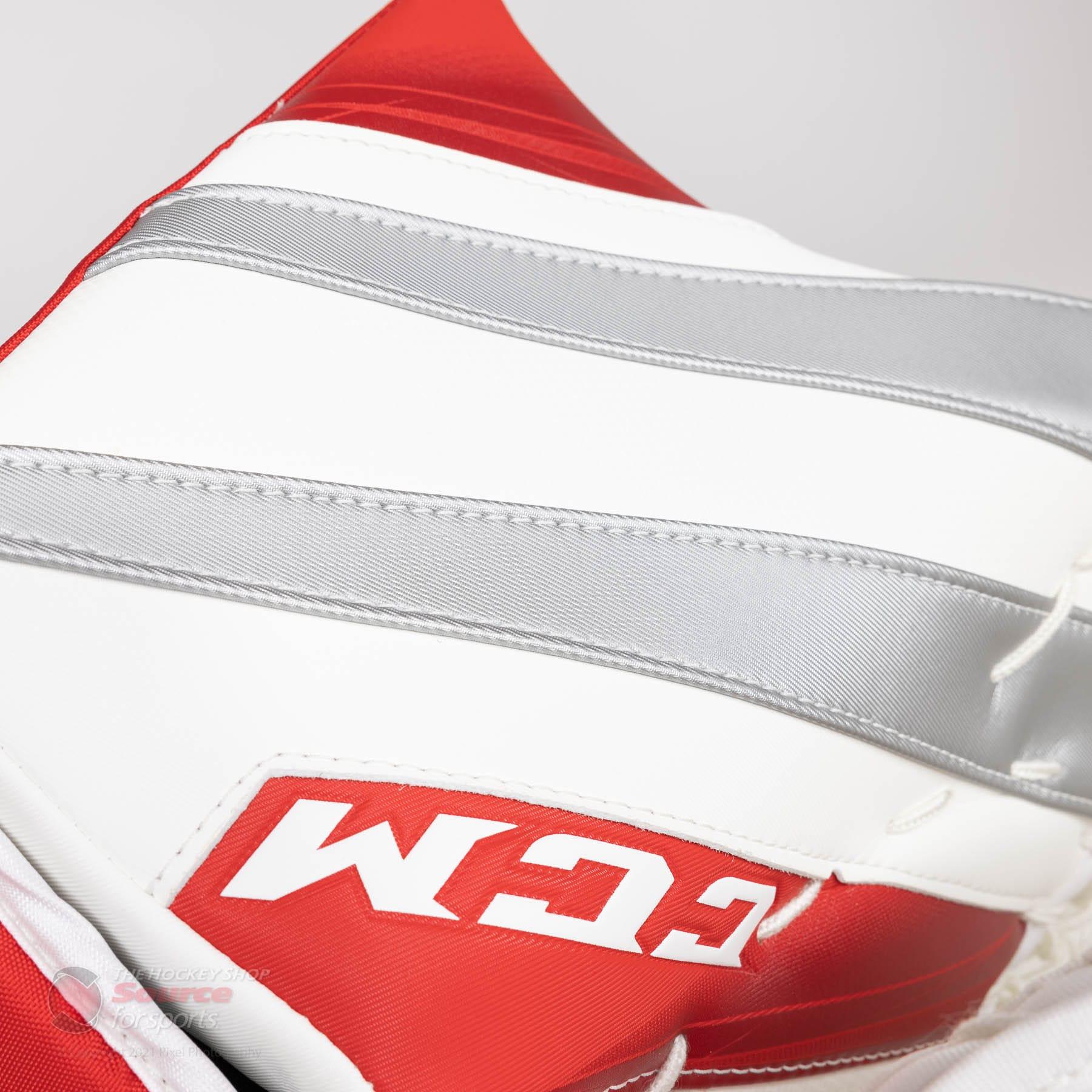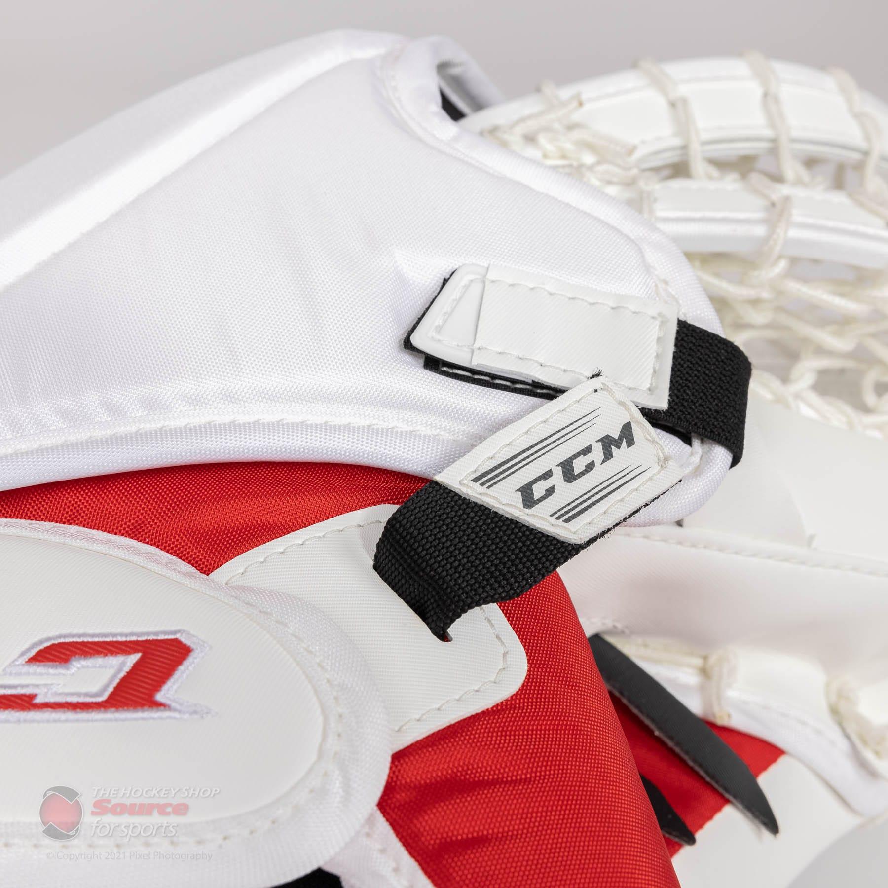 The CCM Extreme Flex 5 Goalie Catcher is available in a range of stock colors, as well as in endless variations through CCM’s customizer. Customizing the CCM EFlex 5 Catcher allows for a variety of colour and spec changes. CCM custom gives you the option to change the break angle to the 580 or 590, both found in the Axis Catcher line. This gives goalies full autonomy of their glove preference, while still being able to have their entire setup with the E-Flex 5 Graphic. For a full list of custom options and availability, please contact one of our customer service specialists for more details.