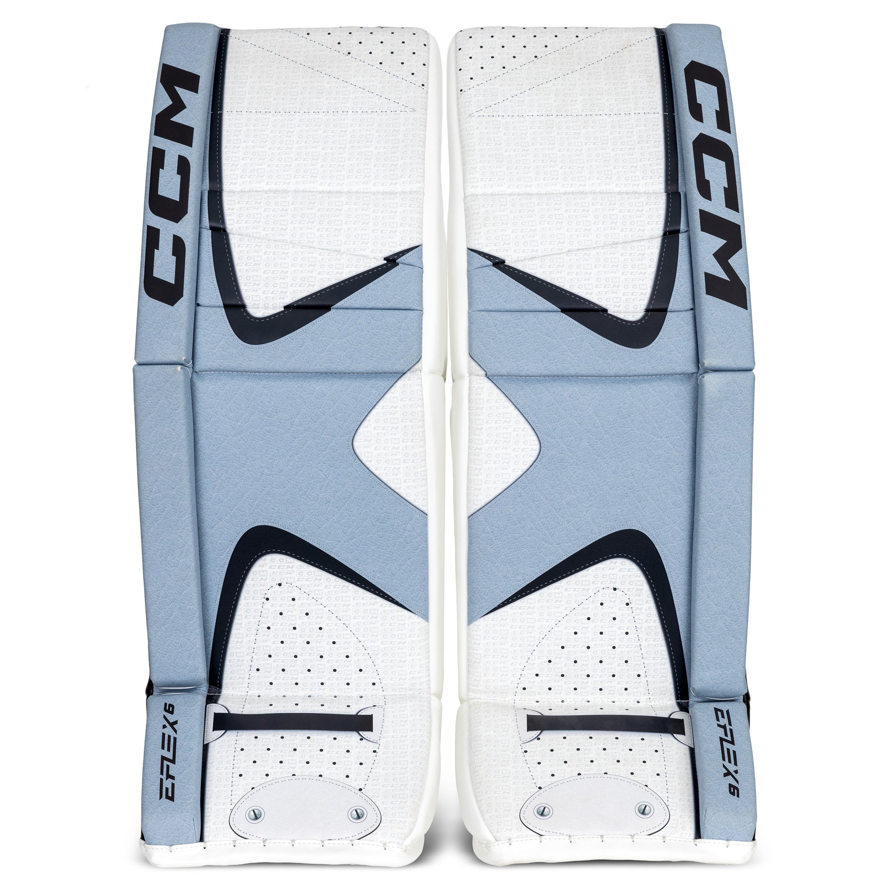 Experience the ultimate combination of lightweight performance and precise control with the CCM EFlex 6 goalie leg pads. Building upon the success of its predecessors, these pads are designed to elevate your game to new heights, featuring a SpeedSkin exterior, Dualitecore technology, a 90-degree boot angle, Dynamic Response System Pro, and more.
