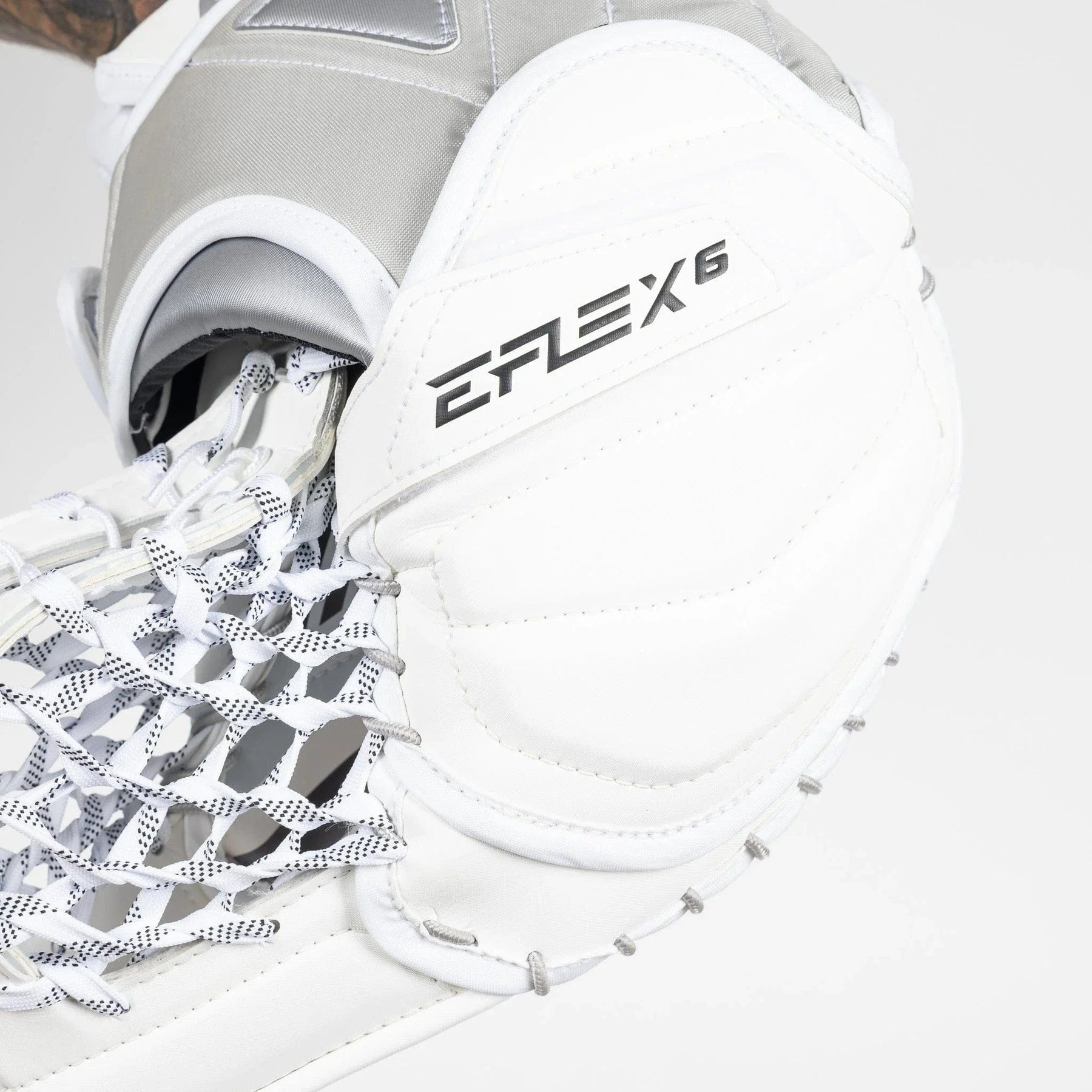 The pro stock catcher features a 581 glove break, a redesigned closure introduced by CCM on the EFlex 6 gear. The glove comes equipped with a double-T, skate lace pocket to effortlessly catch and retain pucks. Internally, the glove features a SureGrip palm and Nash wrist liner.