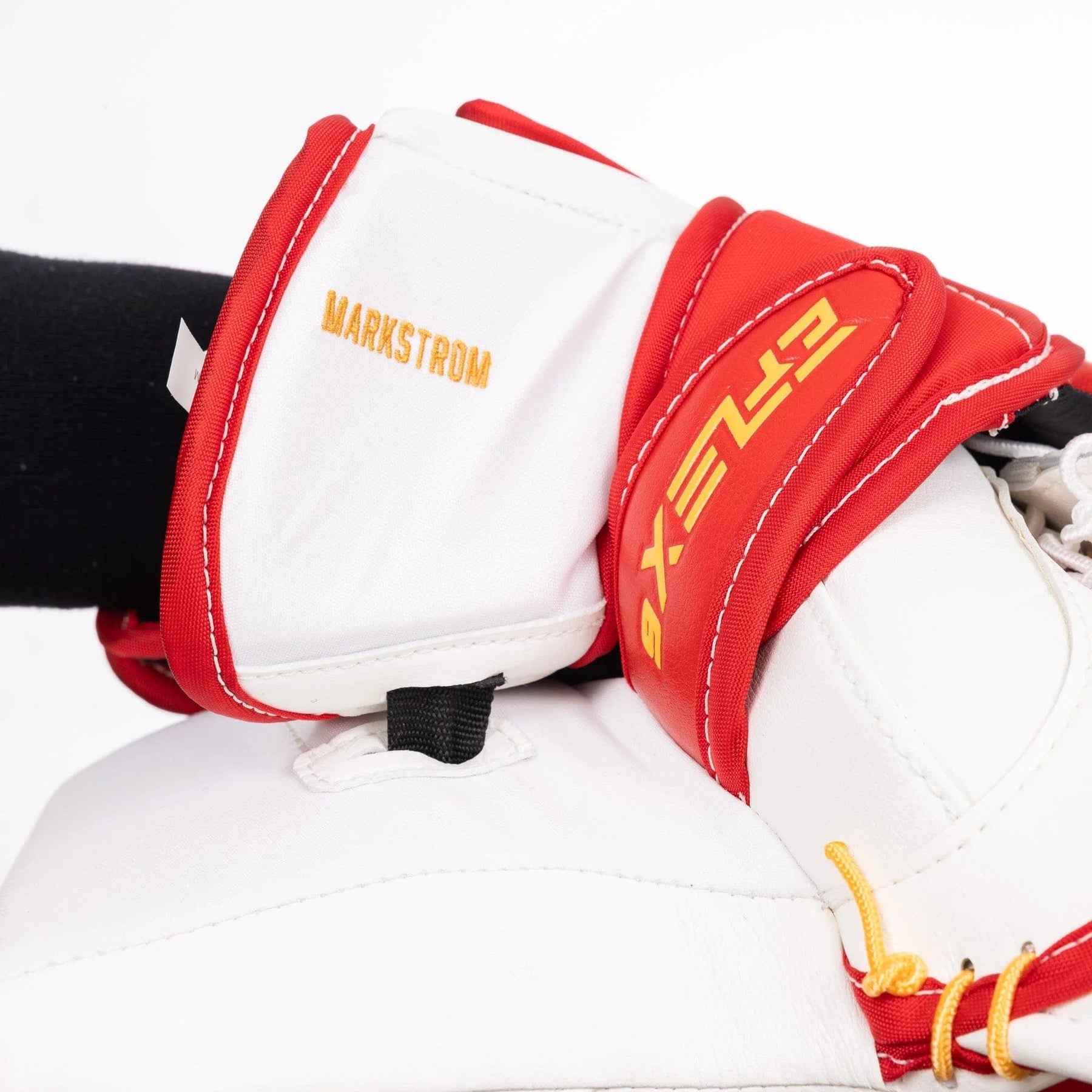 Serving players since 1988.This custom Extreme Flex 6 catcher is a NHL Pro Return from Jacob Markstrom while he was playing for the Calgary Flames. The catcher offers a white and red design to work with both home and away Flame's jerseys.