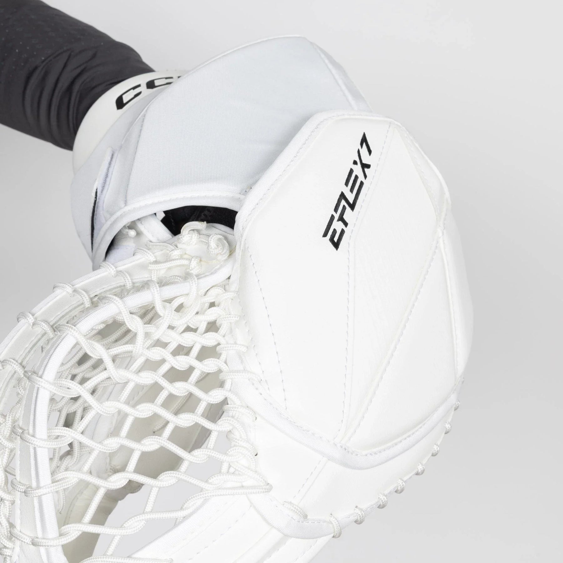 The CCM Extreme Flex 7 Senior Goalie Catcher comes in a regular catch hand with White, Black, White/Black, and White/Red/Blue colors. Additionally, the catcher has a full-right catcher available in White for those who catch with their right hand.