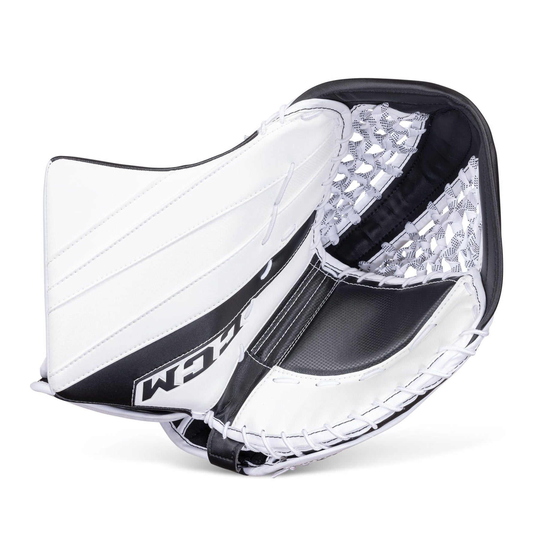 The CCM E5.5 catcher features FlexMotion backhand, and a one-piece cuff. CCM’s one-piece cuff with a redesigned core allows for maximum coverage and an enhanced closure.