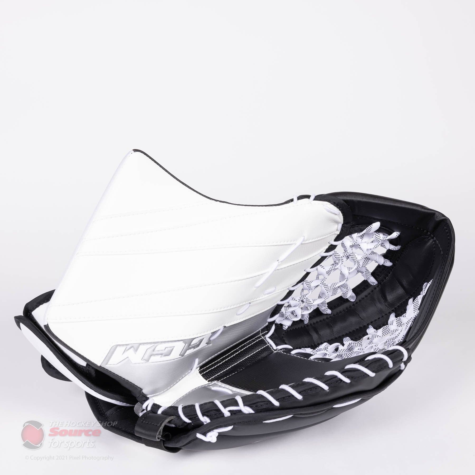 The Source for Sports Exclusive version of the CCM Extreme Flex E5.5 SR Goalie Catcher deliver all the same features as the catalog E5.5 with upgraded specs. These upgraded specs include; a 1” deeper Single-Tee skate lace pocket, CCM's SureGrip palm with impact-absorbing D30 Smart Foam palm protection, and exclusive colorways that are unique to the Source for Sports family. These spec upgrades respectively provide improved grip and closure, and increased impact absorption through the use of D30 Smart Foam. Pair these upgrades with the FlexMotion backhand and cuff, SpeedSkin material, and a 600 Degree break angle, the E5.5 Source Exclusive offering gives you more "bang-for-your-buck" over the catalog model.