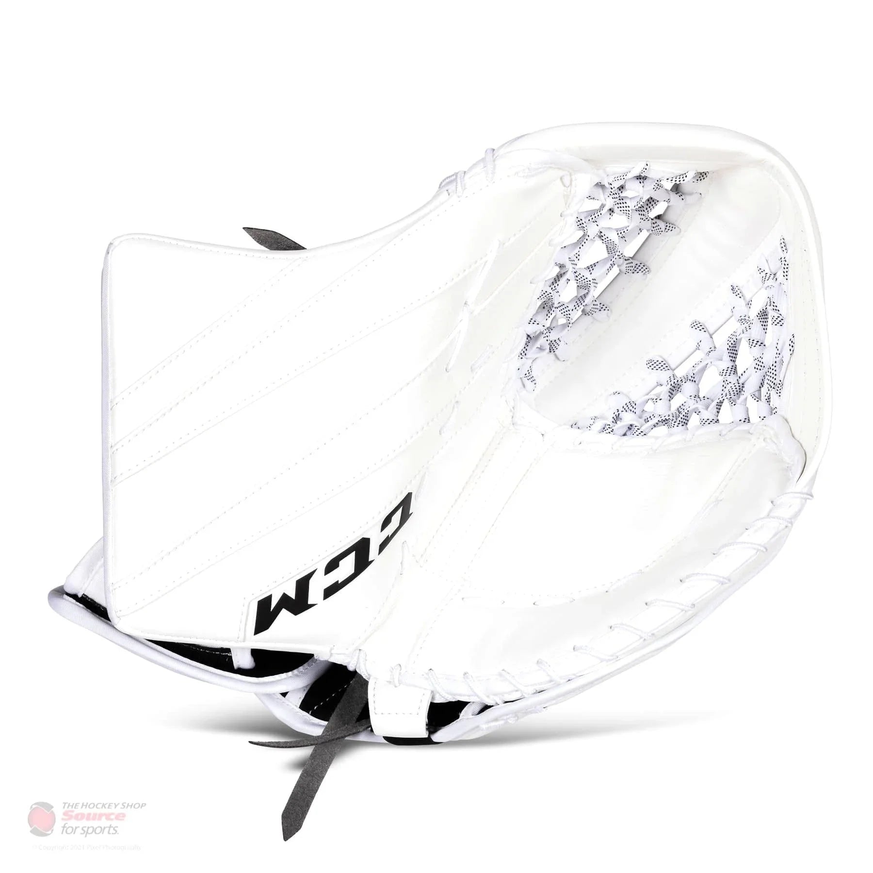 The Source for Sports Exclusive version of the CCM Extreme Flex E5.9 Senior Goalie Catcher offer a slight variation in color styling from the catalog E5.9 models. Colors offered in the CCM E5.9 Source Exclusive Catcher are; Boston, Chicago, Toronto, All Black, All White, White / Black, and White / Black / Silver. The E5.9 SDC Catcher is available in Regular and Full Right hands.
