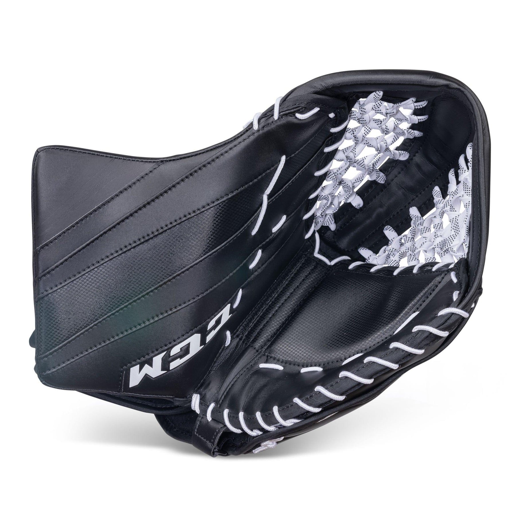 The CCM E5.9 catcher features FlexMotion backhand, and a one-piece cuff. CCM’s one-piece cuff with a redesigned core allows for maximum coverage and an enhanced closure.