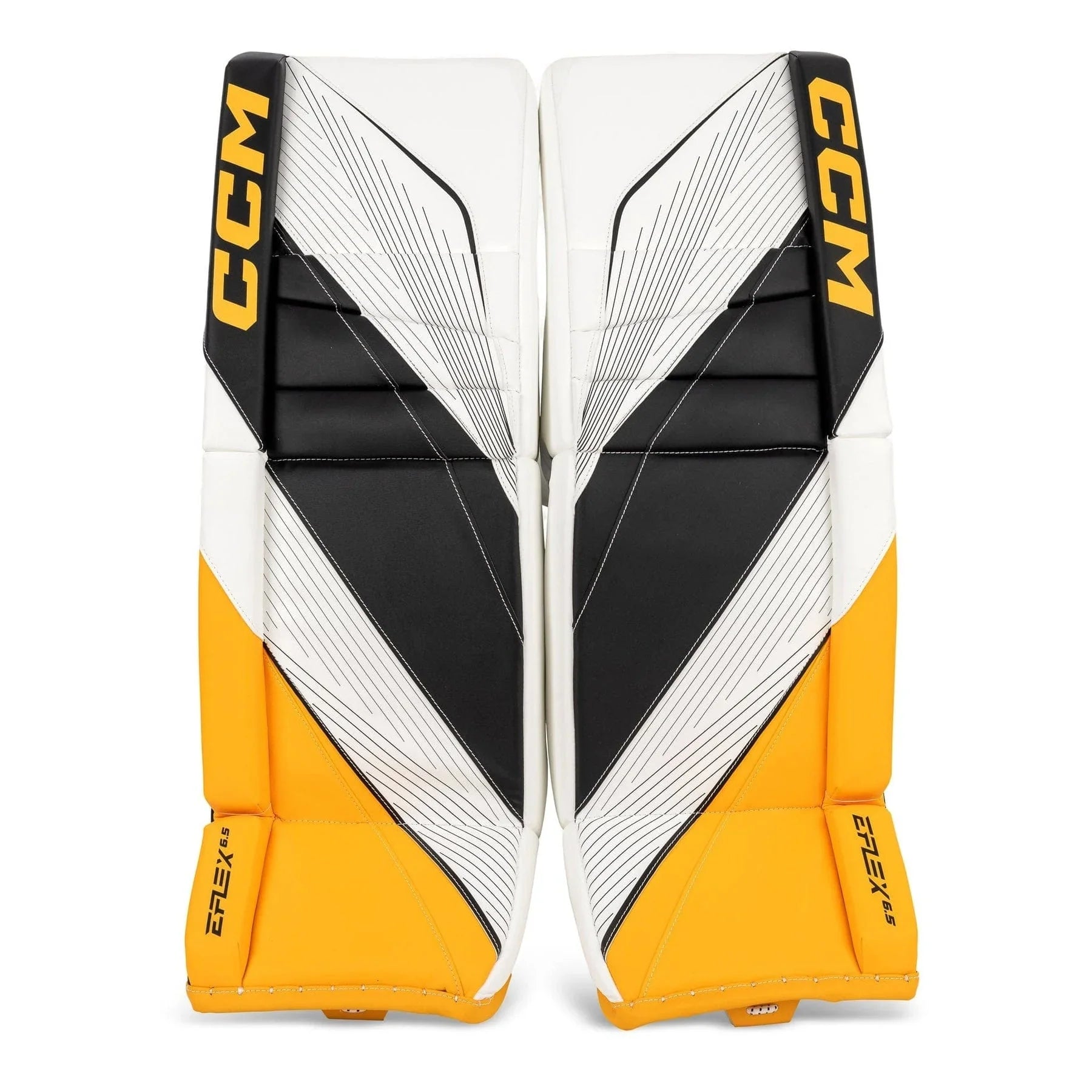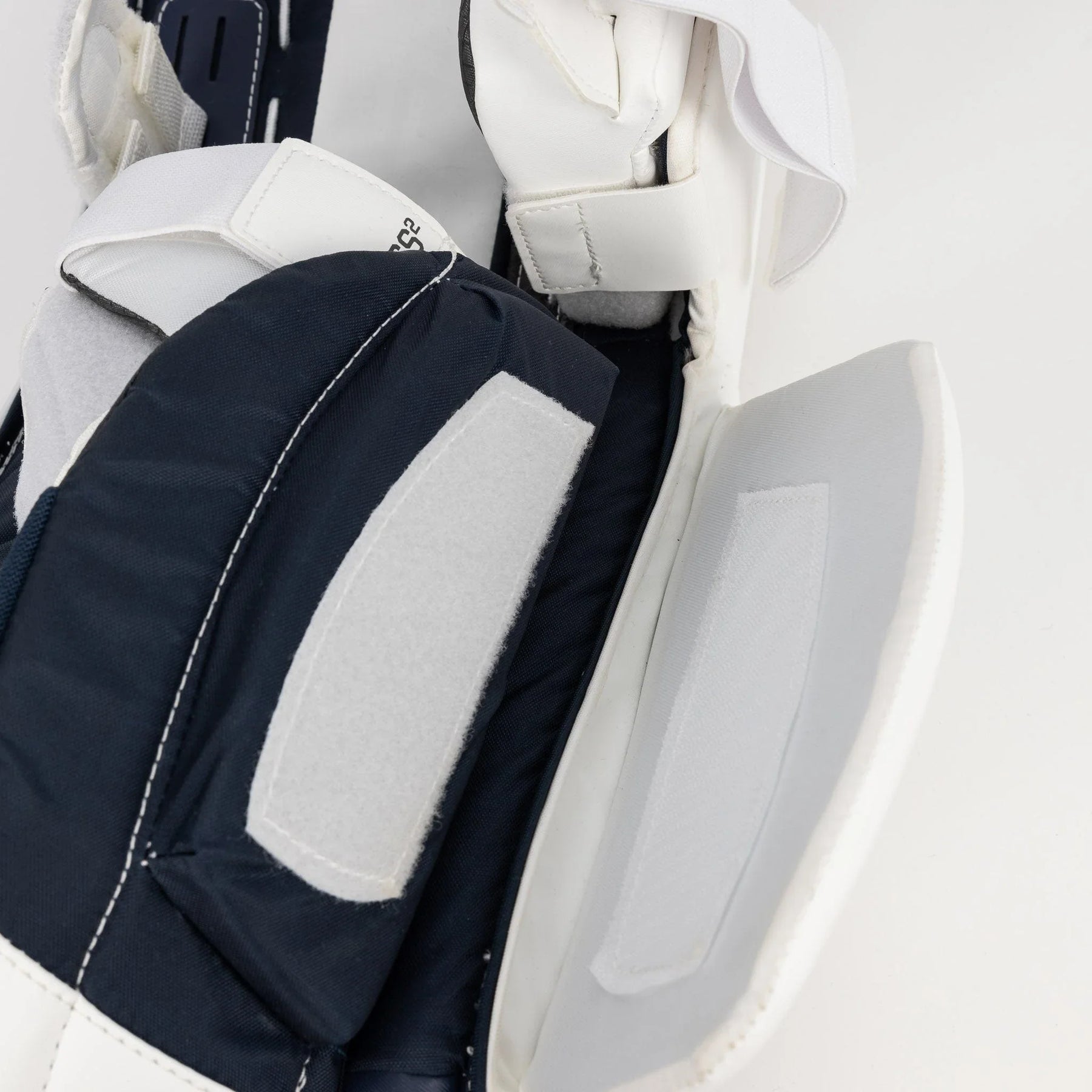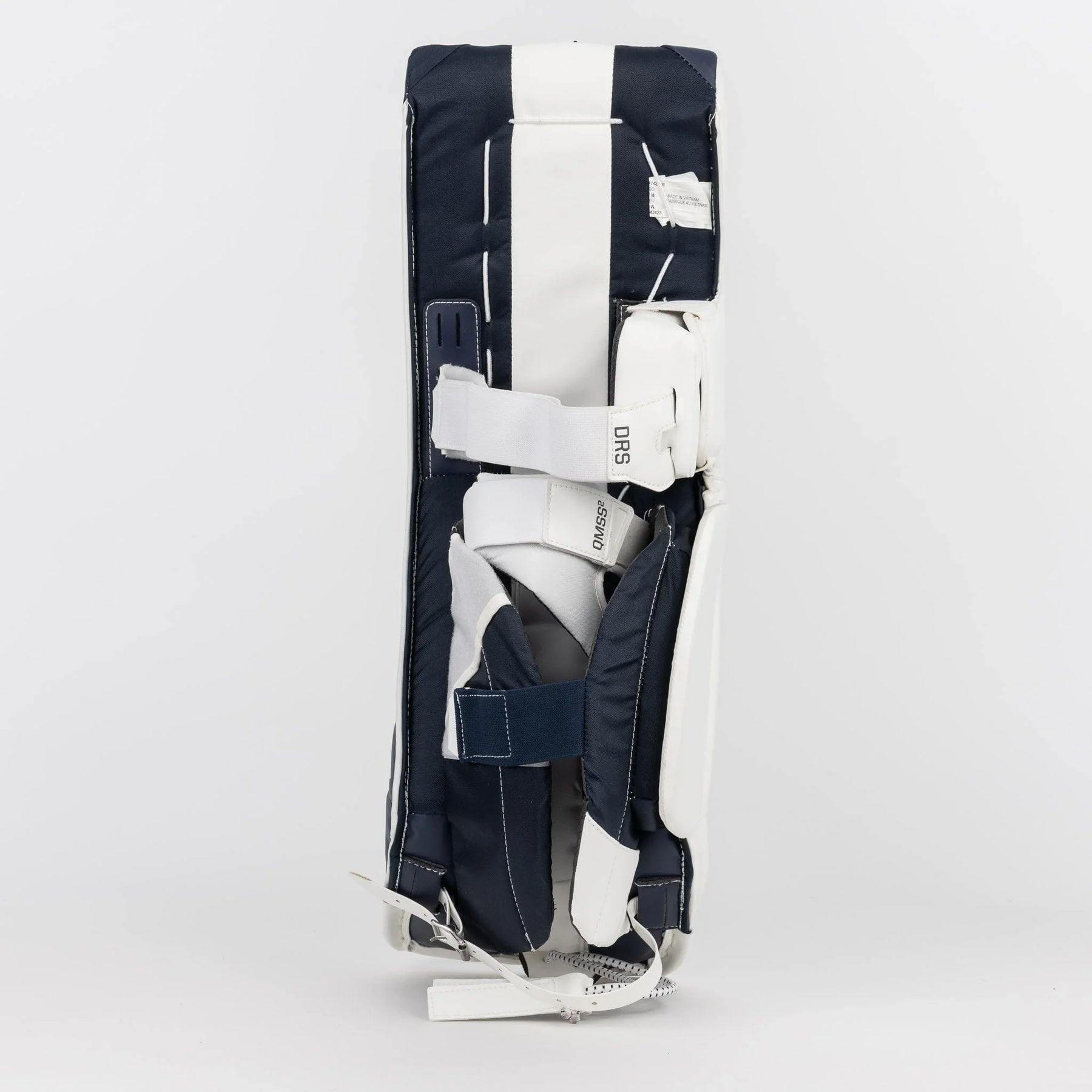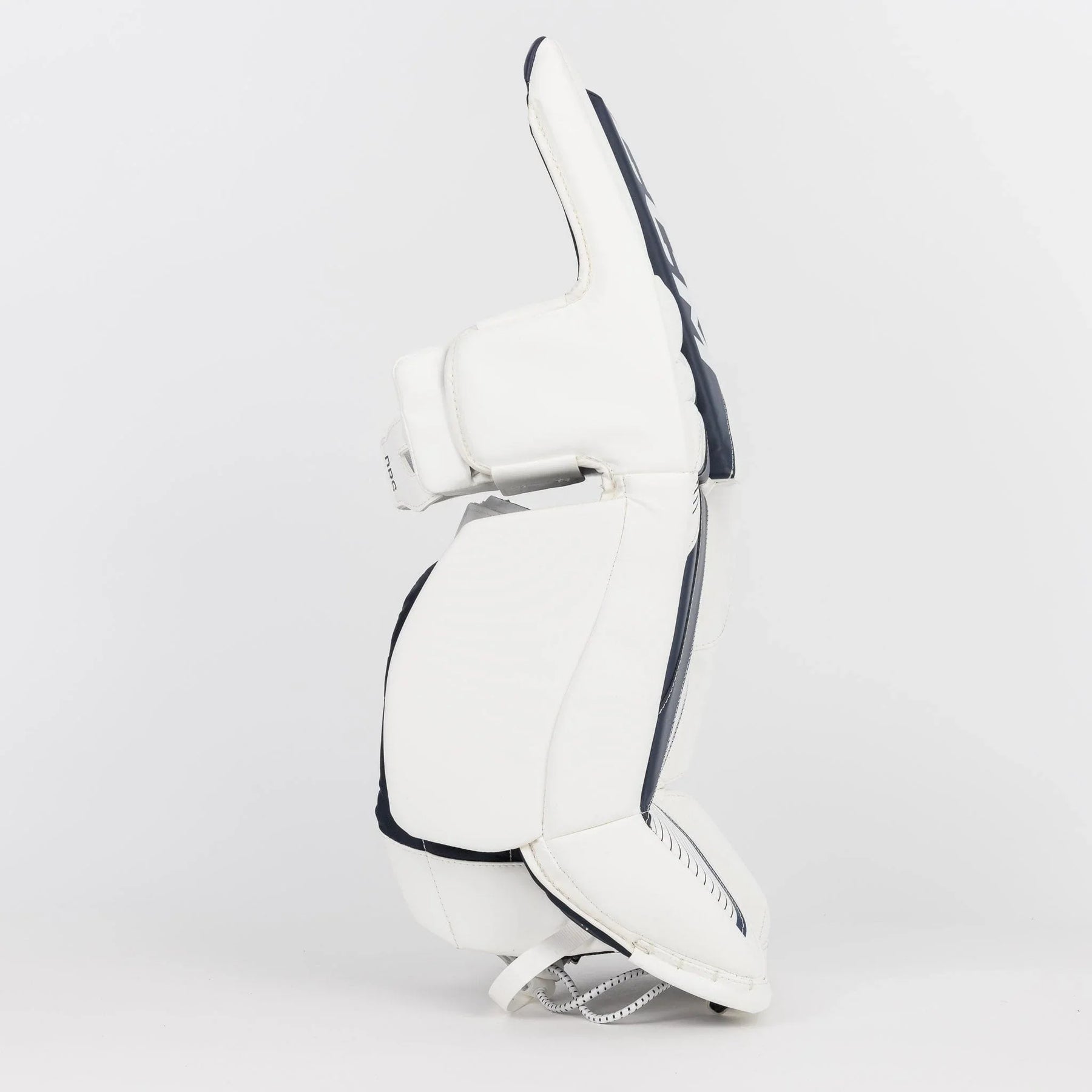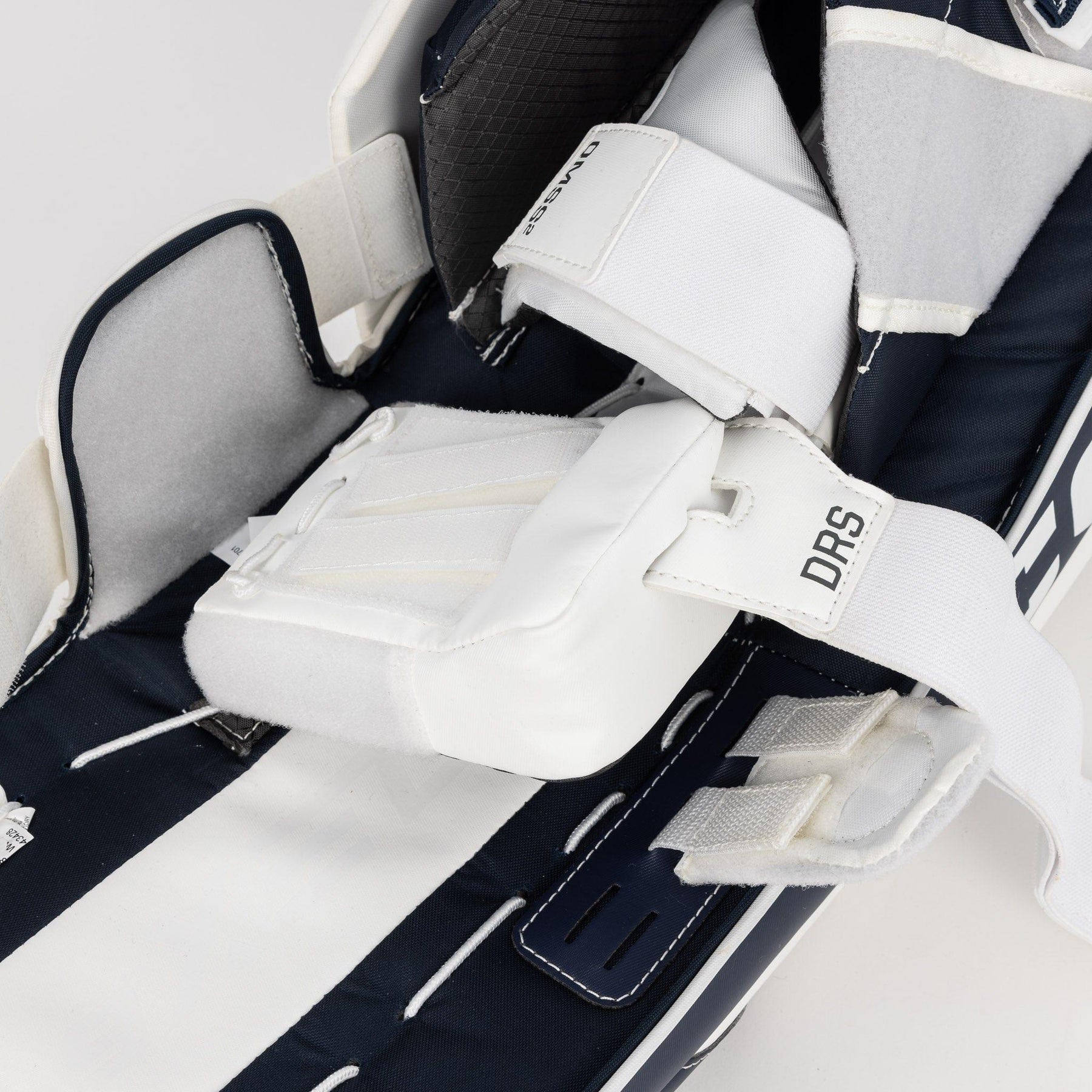 Once you have your new leg pads, you’ll need to make sure they fit you properly. To do so, you’ll need to put the pads on with your skates. There a couple things to do to check size, once you have the pads on: