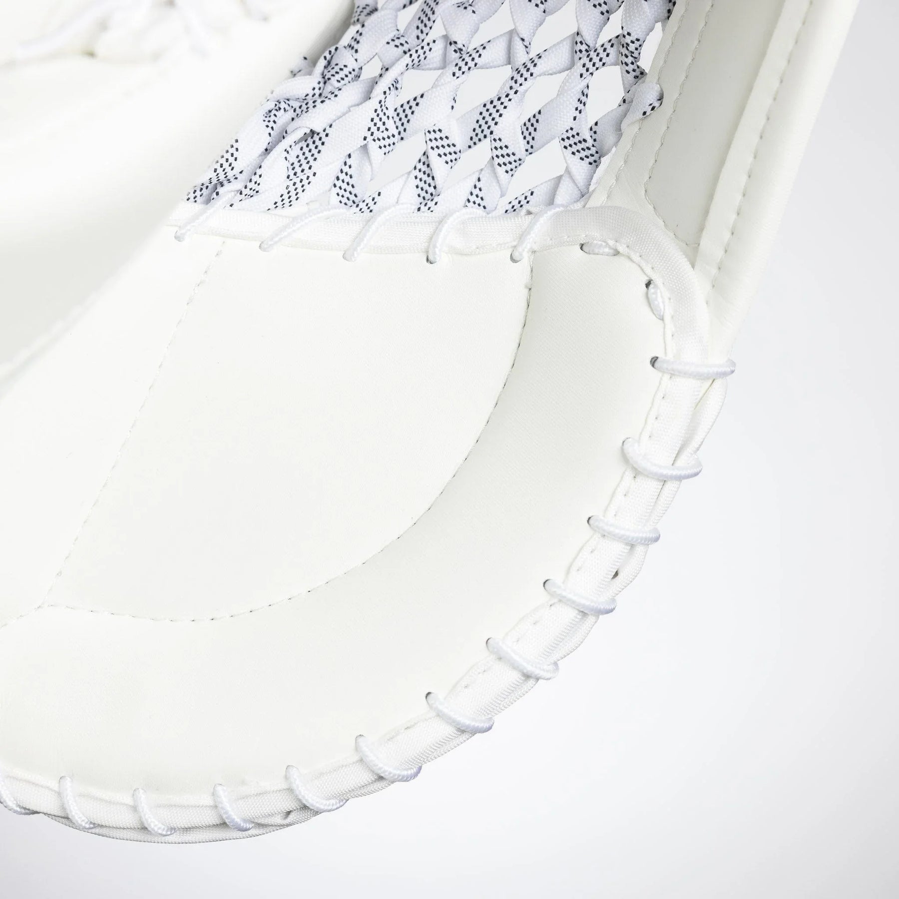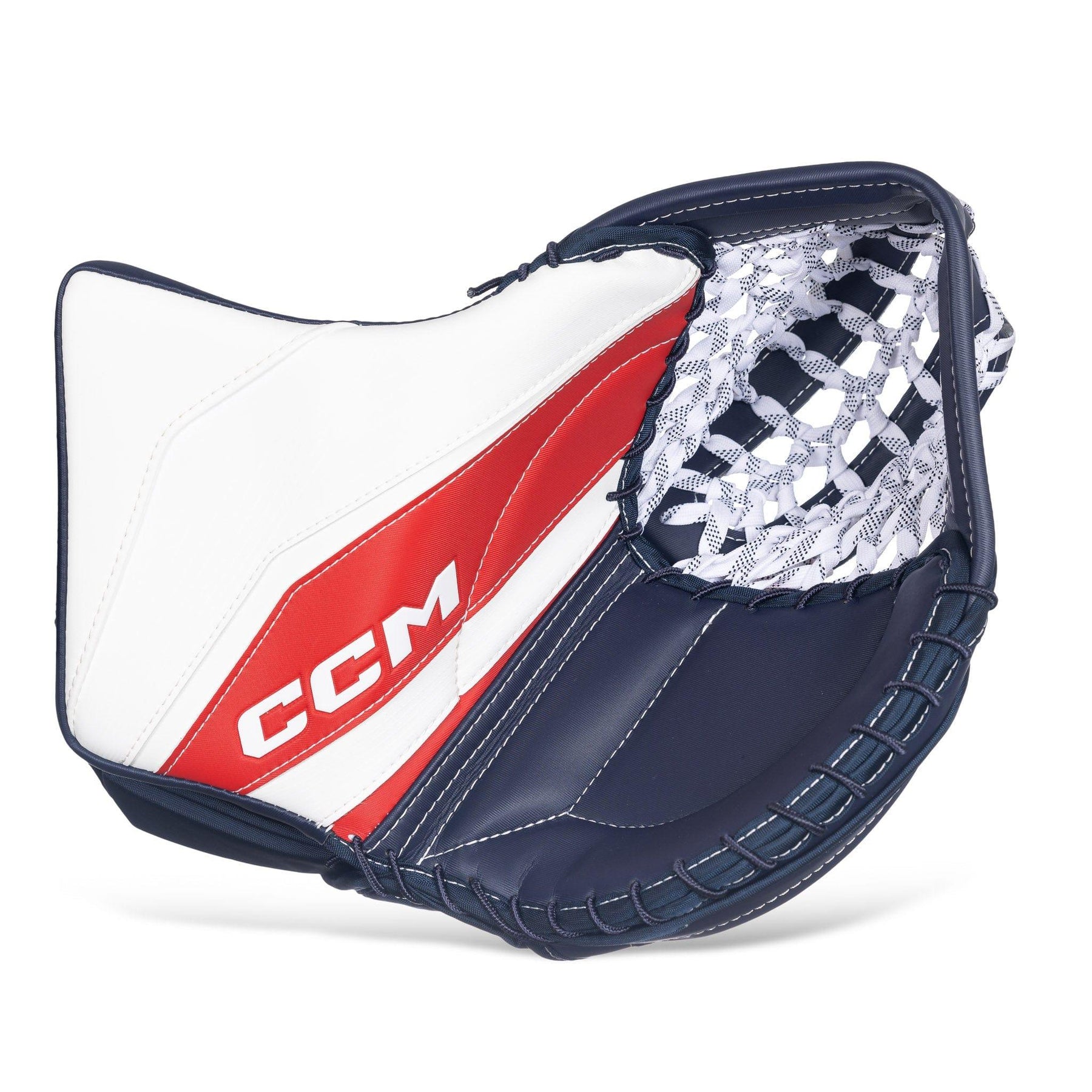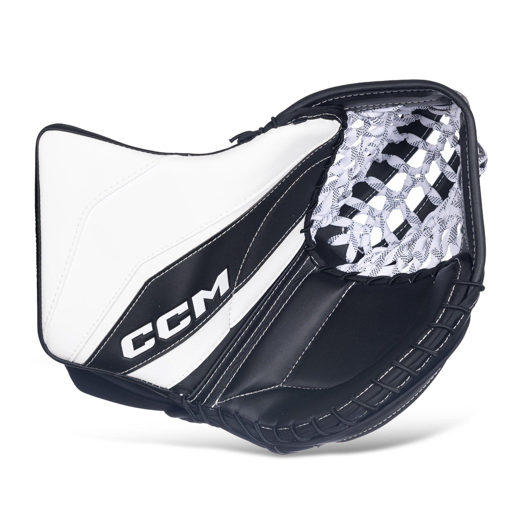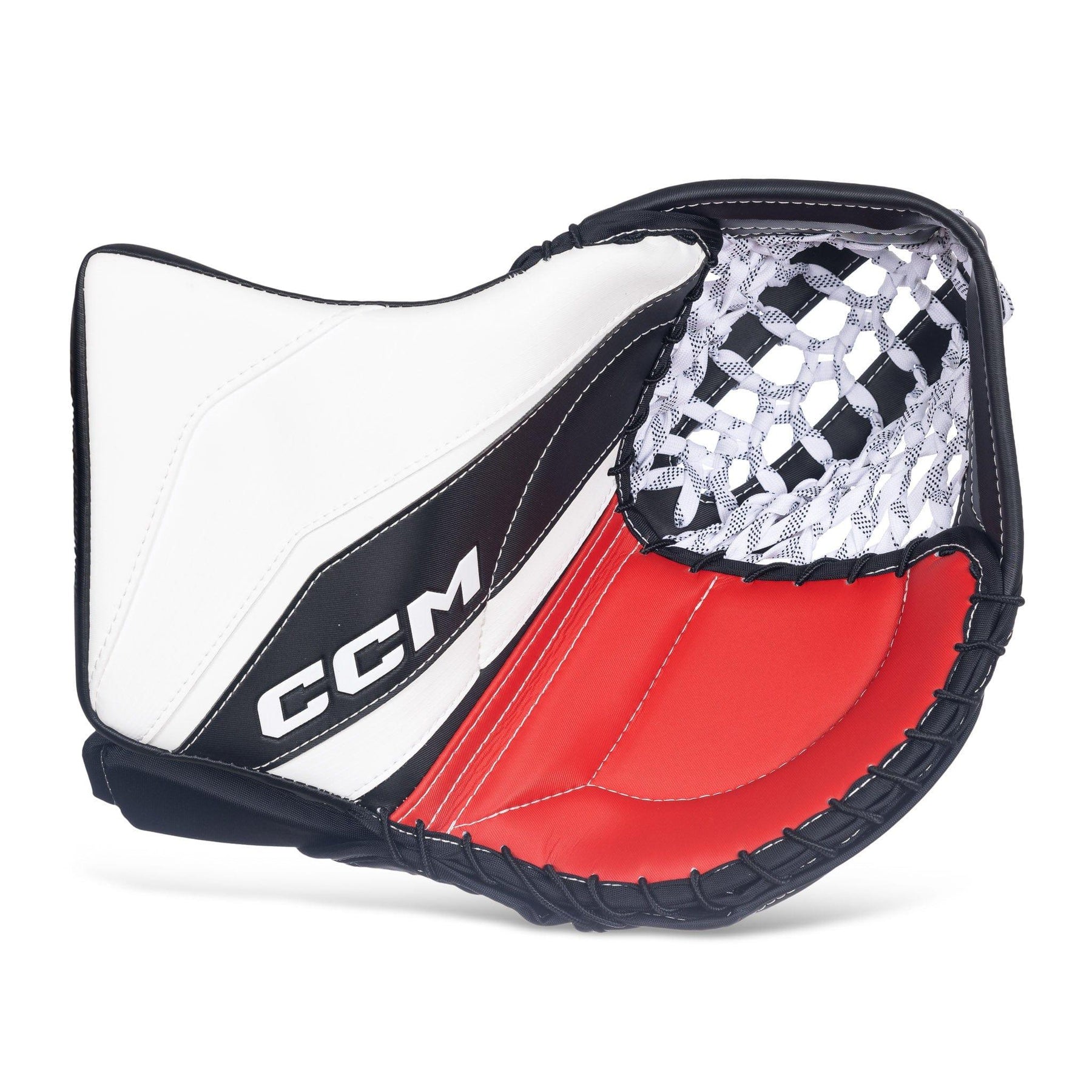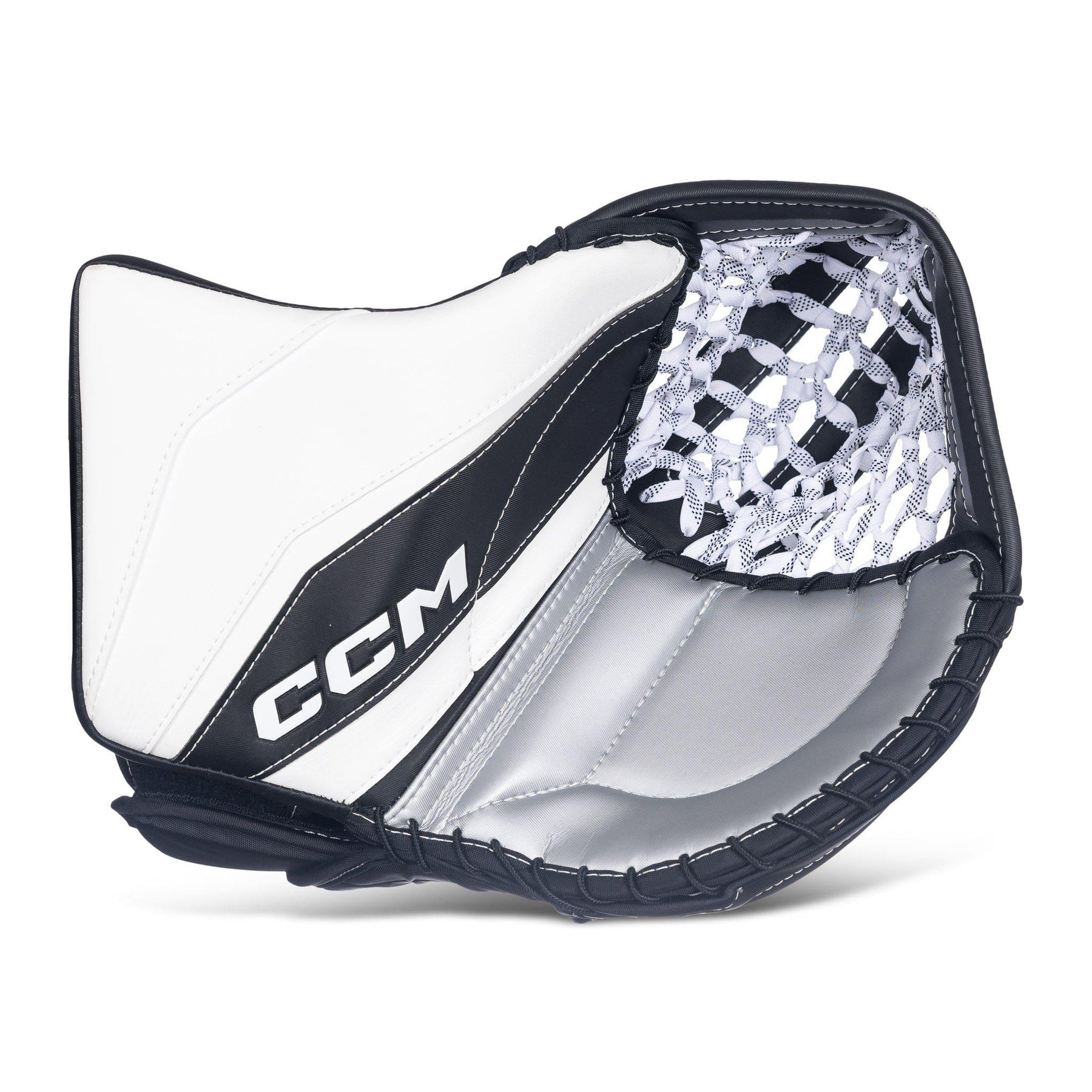 The pocket design features the double straight tee, which is optimal for puck absorption and tracking. Additionally, it features a skate lace webbing system. This design helps keep the puck inside the catcher when closing the glove, and is also very durable.