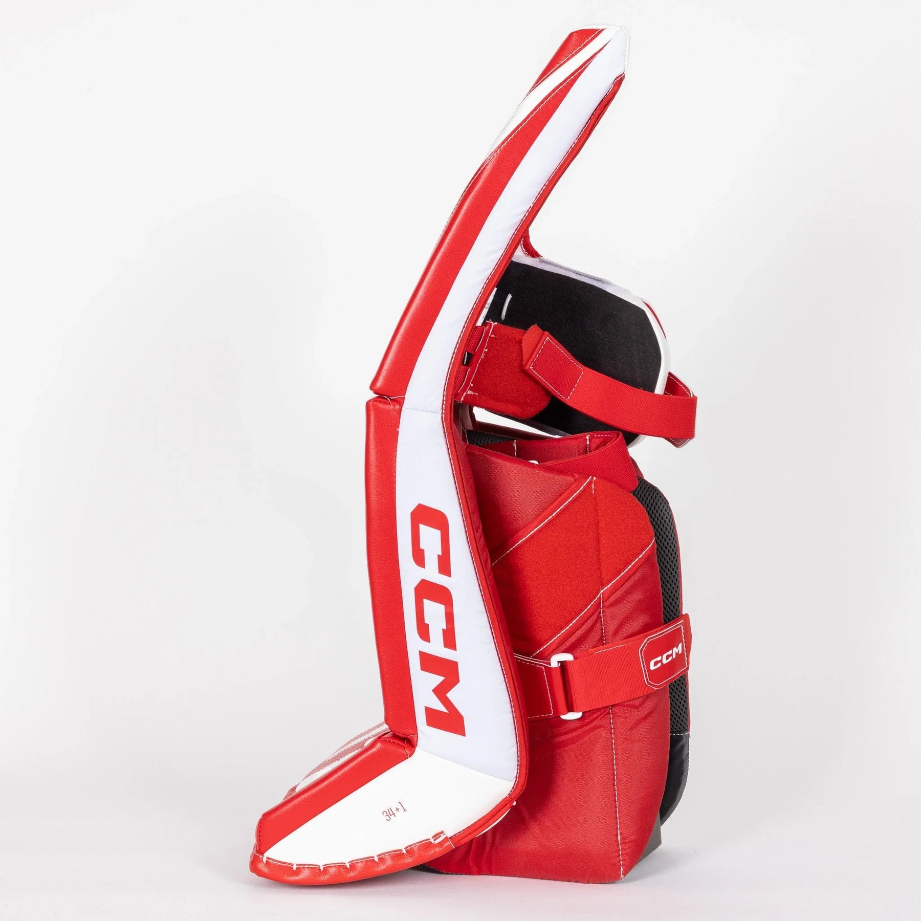 The CCM Extreme Flex E7.5 Senior Goalie Leg Pads are available in sizes 32+1”, 33+1”, and 34+1” as well as colors: Black, Detroit, Toronto, White/Black, and White.